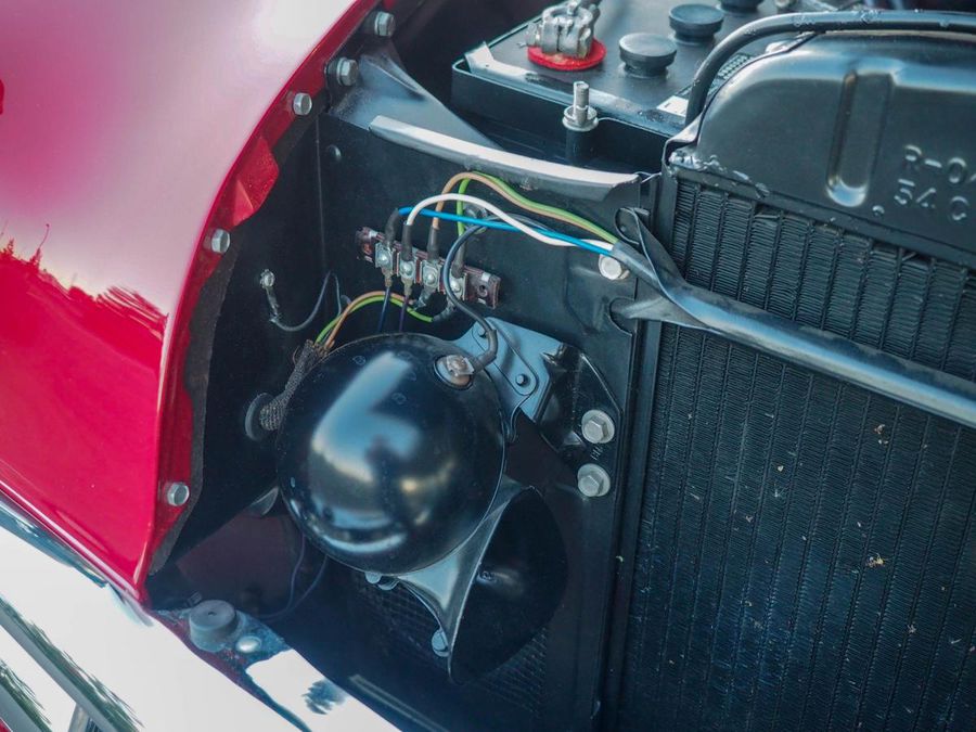 Beautifully restored 1954 Bel Air Convertible: Highly optioned example, Blue Flame 235 inline 6 engine, Powerglide automatic, Power steering, Power brakes, Power front windows, Power bench seat, Power black convertible top, Spotlight, Spare tire and jack, Original style radio, Older whitewall tires.