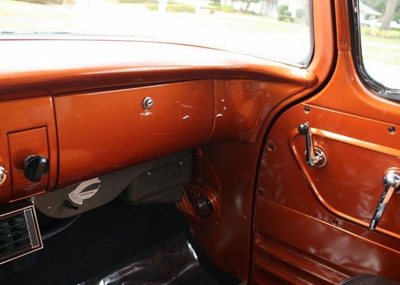 Just arrived, this amazing vehicle was completed to a high standard. Now it is ready for its new owner to love and pamper. Excellent dual stage repaint in Copper Metallic. Beautiful new custom Copper & Black leather bench seat interior. Tilt column, new carpet, & headliner. Restored dash with new gauges. Ice cold vintage air conditioning. All new chrome & stainless trim.