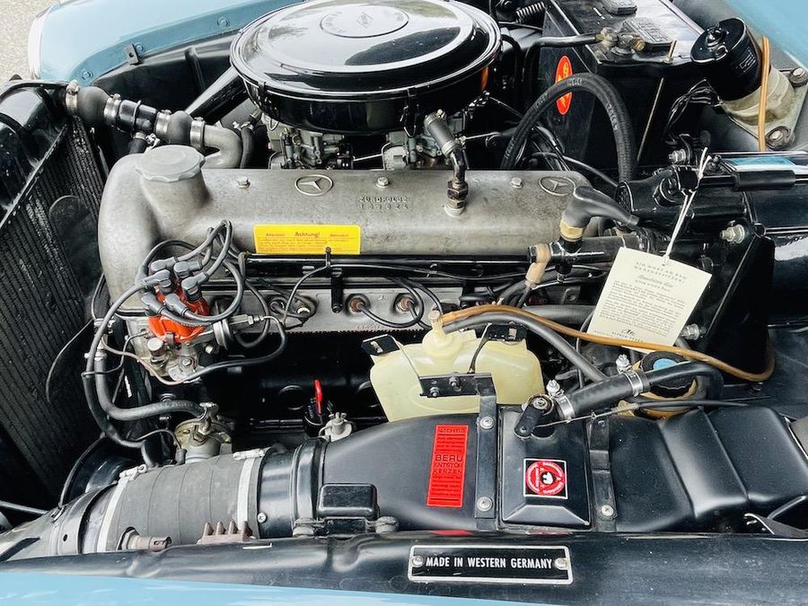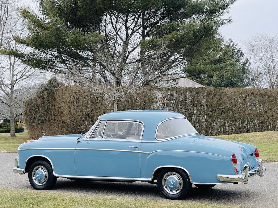 Offered for sale is a 1959 Mercedes Benz 220S Sunroof Coupe. This car retains its original color of Light Blue (DB 334) with natural leather. A remarkable option is the Webasto, sliding sunroof. Included in the sale are meticulous invoices and description of the restoration, original data card, and copious records.