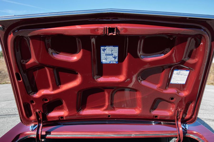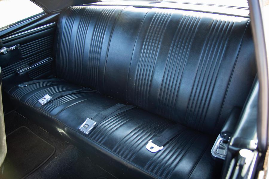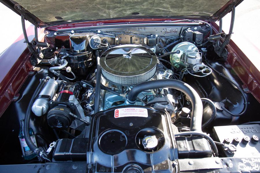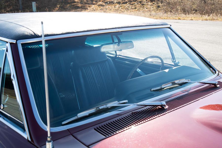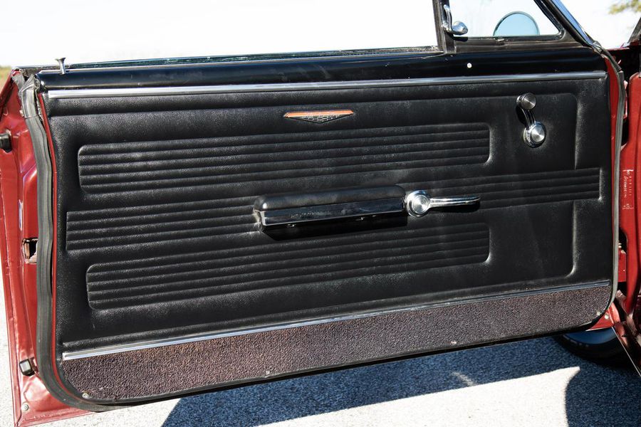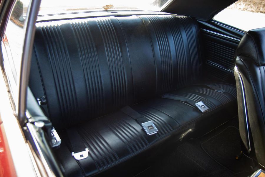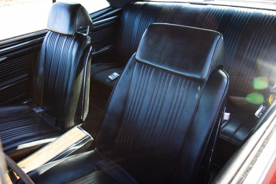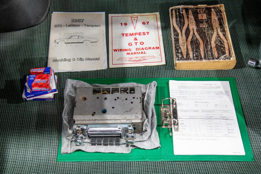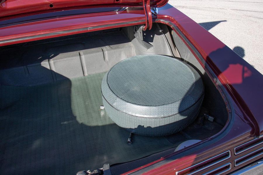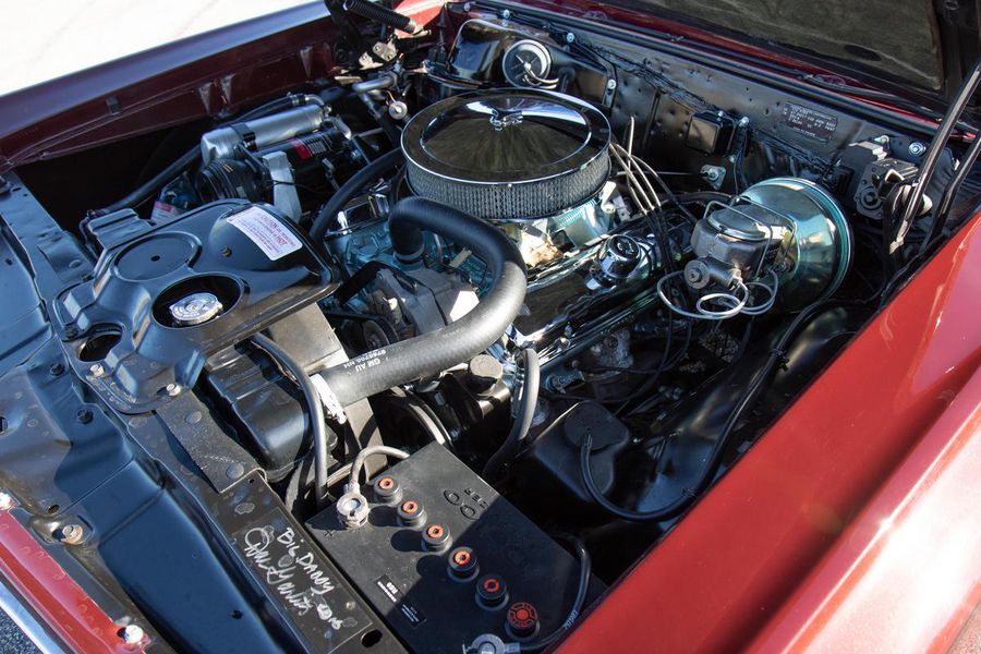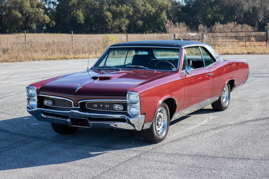 This gorgeous and well optioned example of the breed is a perfect sample of what makes these cars so amazing to own, drive, and collect. Finished in it’s original and rather lovely color of code “N” Burgundy with the black Cordova vinyl top, this GTO has a look that is at once classy and sporty, with a timeless appeal. The body was taken down to bare metal and refinished in modern basecoat/clearcoat paint, while the original vinyl roof was refinished in the correct materials. The paint is around eight years old at this time and shows some flaws, but they do not take away from the presence this car has. All chrome and stainless moldings are in excellent condition, while the “Soft Ray” factory tinted glass is in very good condition with minor scratches on the rear windshield. The front windshield is a newer replacement and crystal clear. The factory date code correct 14x6J 6 hole Pontiac steel wheels with chrome trim rings and caps are wrapped in modern Uniroyal Tiger Paw radial tires that give this GTO a boulevard ride that engineers could only dream of back in the 60’s. The interior of this classic goat is original and in excellent condition. It is unrestored with only the carpets having been replaced. It is a very comfortable place to be with wide bucket seats, simulated walnut wood grain trim and steering wheel, full length center console, full instrumentation, seat belts, AM/FM Bluetooth sound system from RetroSound with “Verba-Phonic” rear speaker, and that most important and desirable muscle car option, factory A/C! The factory original AM radio is included with purchase. Under the hood is where the magic happens, and under this hood beats the heart of a tiger! This heavy duty performance engine features flat top pistons with valve reliefs, high performance cam with hydraulic lifters and HD valve springs, 2.11″ intake and 1.77″ exhaust valves in high flow cast iron heads, with a low restriction air cleaner and dual exhausts to get the air in and out as quickly and efficiently as possible. This engine was recently completely rebuilt, align honed, balanced and blue printed, and has only approximately 1000 road miles since it was completed. It fires at a simple twist of the key and idles with a turbine like smoothness. This powerhouse is mated to a sweet shifting, fully synchronized “W” code wide ratio 4-speed manual transmission and hands power back to a retro-fitted 12-bolt GM axle with 3.23 gears and Posi-traction. Optional front disc brakes work in conjunction with the rear drum brakes to help bring you back to normal speeds when things get a little out of hand, while the smooth ride of a full frame car with power steering make this GTO an absolute joy to drive mile after mile.