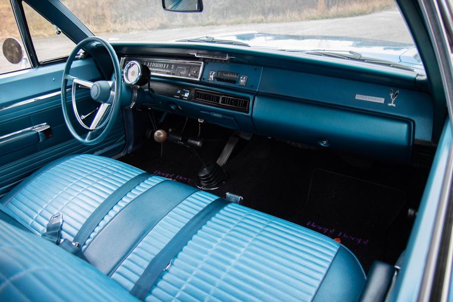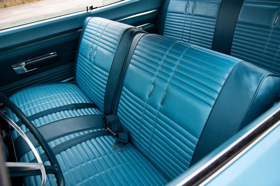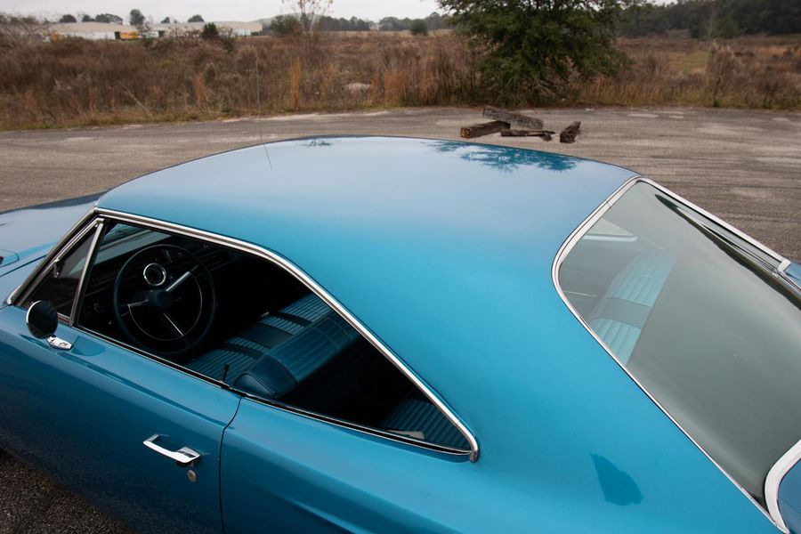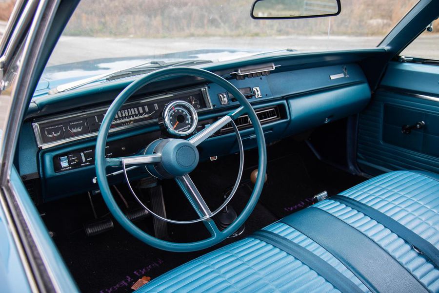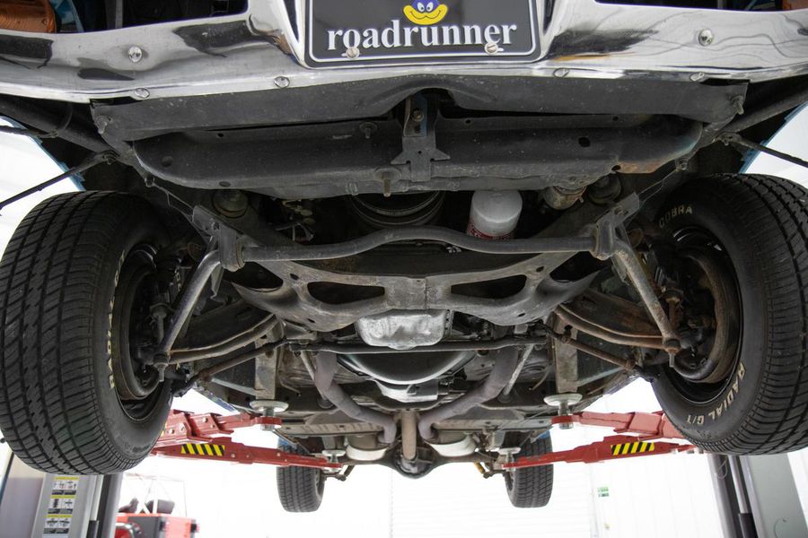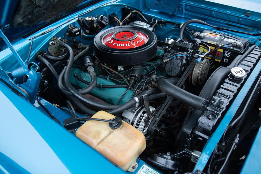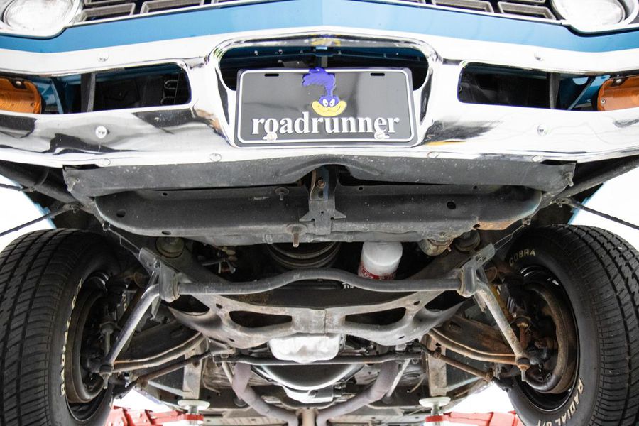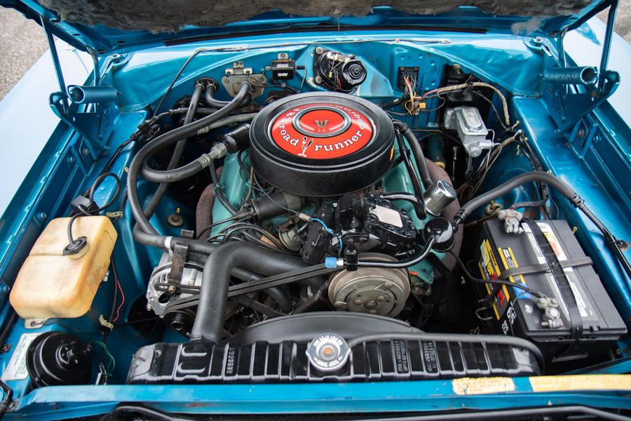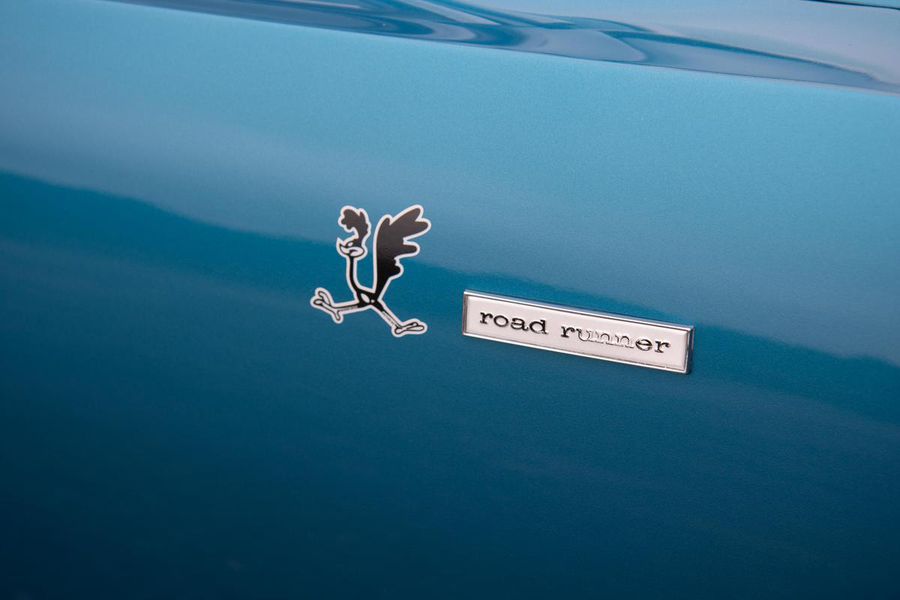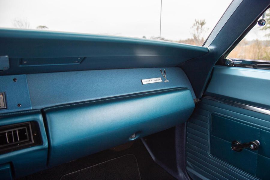 The year 1968 saw the emergence of the “New Mid Size 5” from Plymouth with the complete redesign of the mid size B-body platform. With the newly restyled GTX as the top tier model, Plymouth saw an opportunity at the other end of the spectrum to reach the entry level performance minded buyer with their new for 68′ Road Runner. The Road Runner was to compete with the GTO’s, Fairlane 500’s, and other hot mid size pavement burners but without costing so much as to alienate the younger buyers who craved the performance but weren’t quite well off enough for a GTX. As such, many of these early Road Runners were ordered as a bare bones, no options, street brawlers. The particular Road Runner you see pictured here differs slightly from this recipe as it features factory air conditioning, a rare and expensive optional extra in 1968. The numbers on the odometer are believed to be original and judging from the fact that this car still has it’s original floors and trunk pans, this must have been a southern states ordered car from the beginning, hence the A/C!!! While it sports a fresh repaint of the factory correct and original QQ1 code Frost Blue Metallic paint, the car is otherwise original and unrestored. The patina inside, under hood, and in the chassis is indicative of it’s fifty four years of road use. The engine is the original numbers matching 383CI V-8 with single four barrel carburetor producing 335 horsepower and 425 pound feet of tire shredding torque. All that power flows through a four speed manual transmission with Hurst shifter and on to a Chrysler 8 3/4 rear axle with 3.23 gear ratio and Sure Grip limited slip. Factory heavy duty suspension means this Road Runner corners like its on rail while the baritone track from the dual exhaust is all the sweet sound your heart could desire.