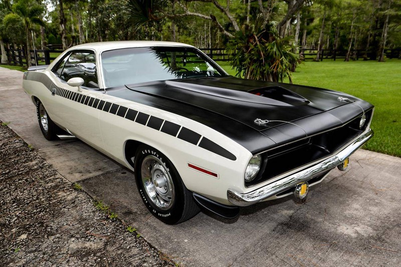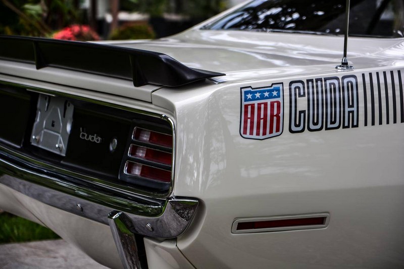 Offered for sale is this incredible 1970 Plymouth AAR ‘Cuda. This is an iconic American Muscle Car finished in a fantastic color combination. The car has just completed a two year restoration. As the photos will clearly show, the car is an outstanding example. The quality of the finish and level of detail is of the highest level. Every mechanical component was completely rebuilt. The car was inspected and verified by Galen Govier prior to restoration and is a true AAR ‘Cuda. Panel fitment is excellent. The engine compartment is perfectly detailed. The car is finished in original colors and trim. The car is equipped with Power Brakes, 4 Speed, and Bucket Seats. The brightwork on the car is excellent. The interior is excellent. The car runs and drives very well. The motor is a correct 3577130.TA.340.7 block, however it is not the original engine to the car.