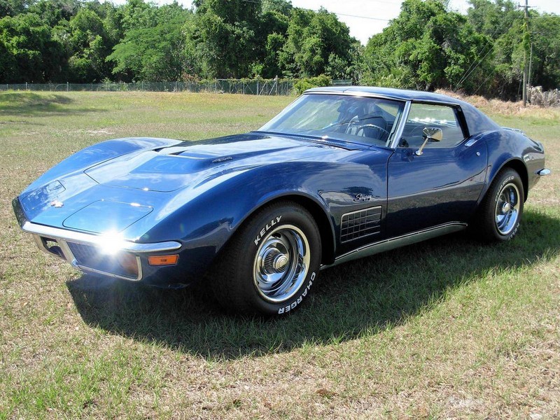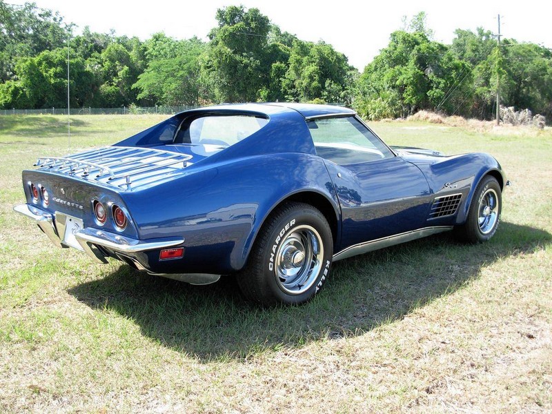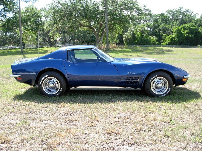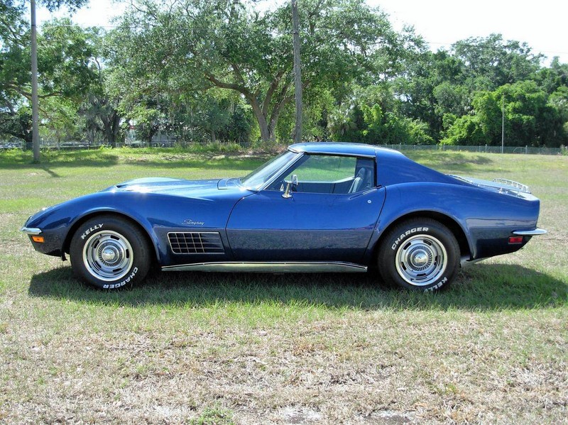 1972 Chevrolet Corvette 454 #’s Matching Numbers Big Block Coupe. 7,769 miles. This Corvette is finished in gorgeous, correct Code 979 Targa Blue Metallic paint accented by a clean, also correct Code 404 black vinyl interior. Under the hood lies the massive LS5 454CI Big Block V8 engine rated at 270HP from the factory and enough torque to keep you pinned back in your seat. Best of all the engine and transmission are both numbers matching!