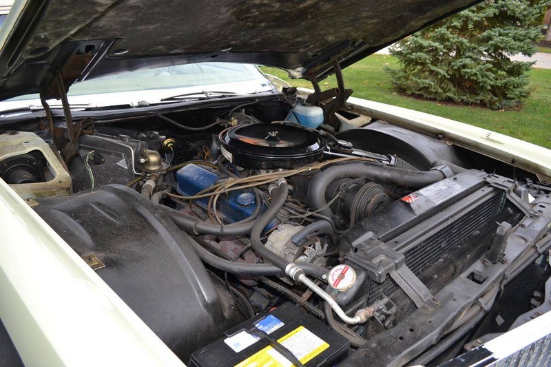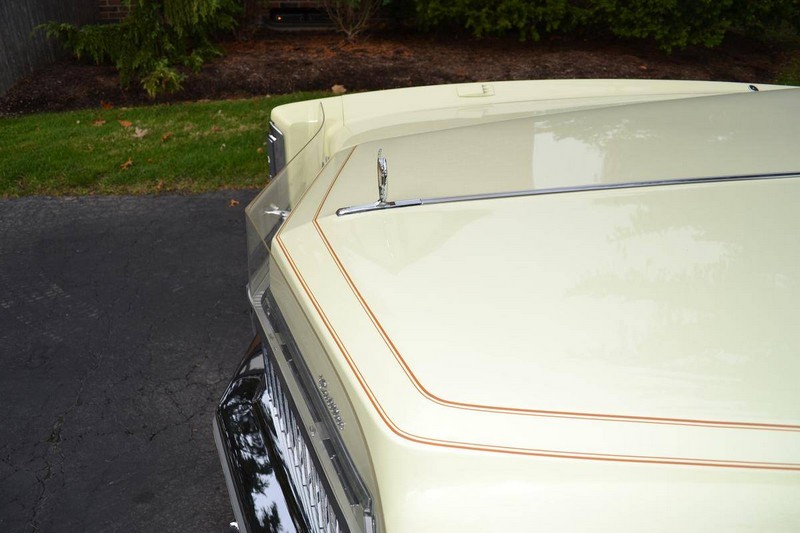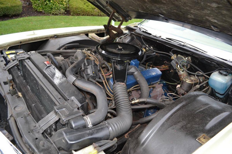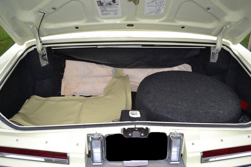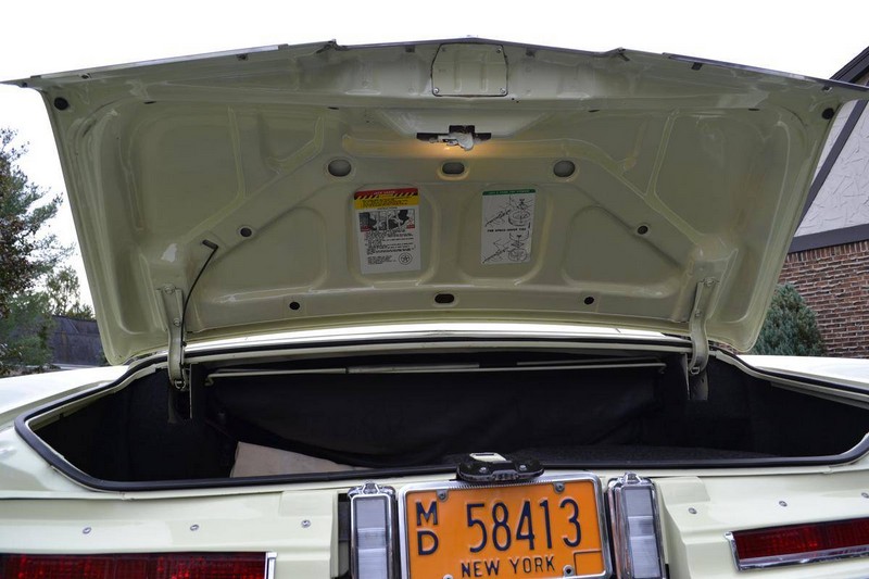 The phoenician ivory paint (code 52) is completely original and the car has never been in an accident. The white top (code A) is original and has never been down. The leather upholstery (trim 532 light ivory-gold) is in as new condition. The original carpeted front full piece floor mat has always been covered. The backseat has rarely been used. The tires are the original replacement Uniroyal tires which were replaced by the manufacturer in the late 1970s as the Uniroyal original equiptment tires all suffered from problems with the steel belts. The trunk is unused. The convertible top boot is original and has never been put on the car. The spare is a new American classic tire with the correct 1.6 inch whitewall.