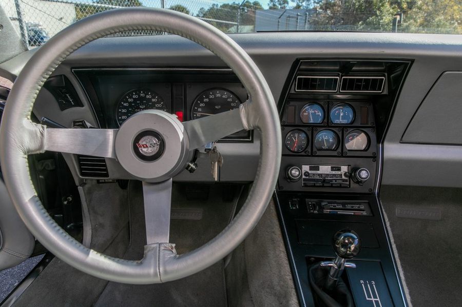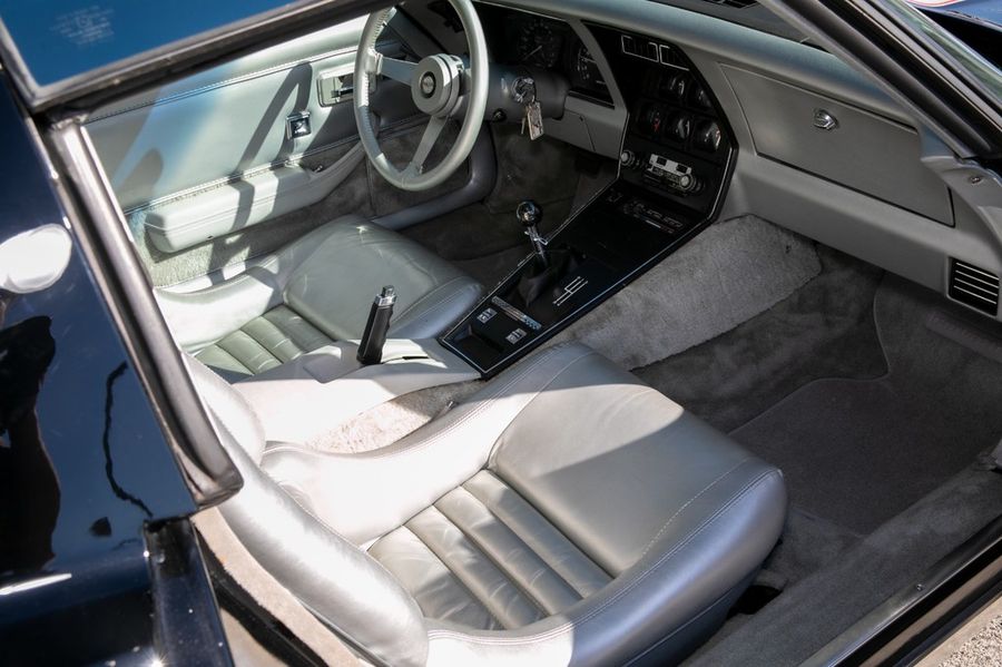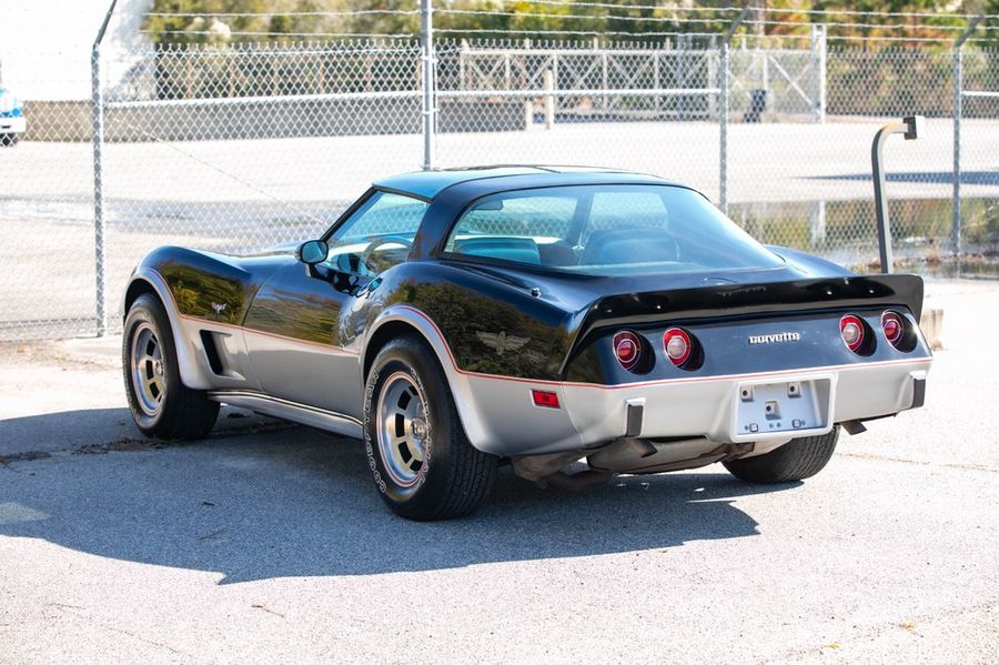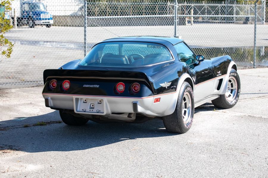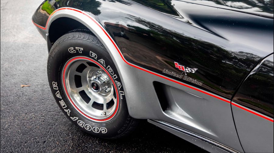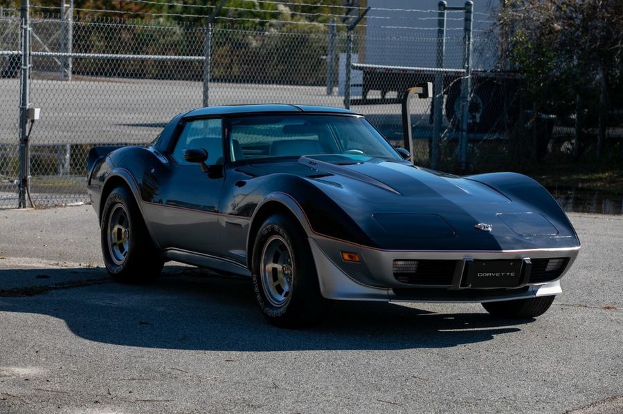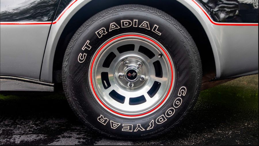 Rare L82 Pace Car Edition with M21 4-speed manual transmission. Silver leather interior. Mirrored glass T-Tops and covers. Factory optioned Delco CB radio and microphone. Air conditioning. Original 15×8 inch aluminum wheels. Goodyear GT radial tires. Original decals never applied, still in tube.