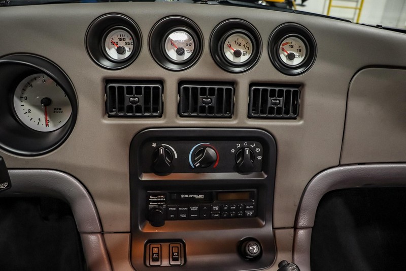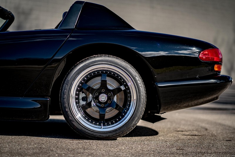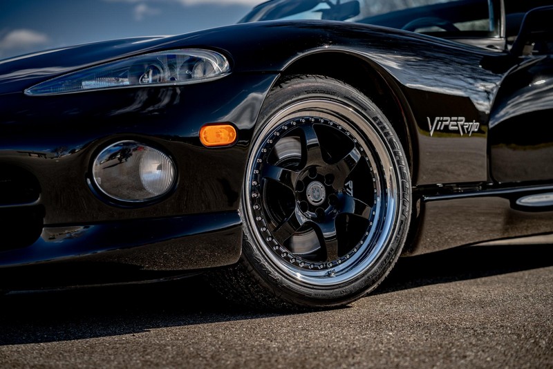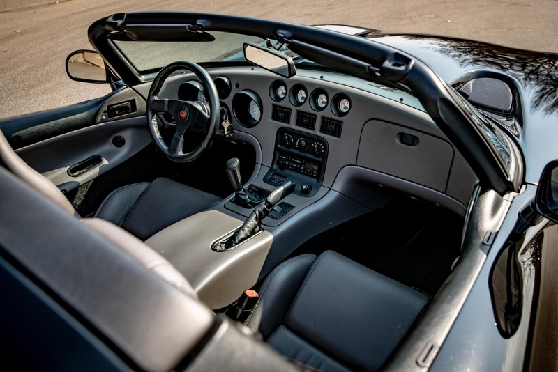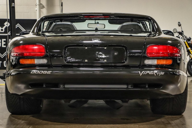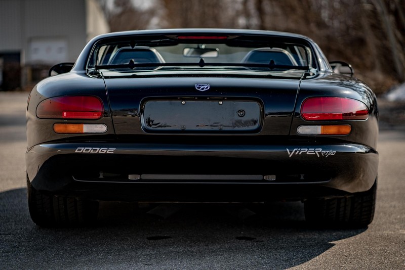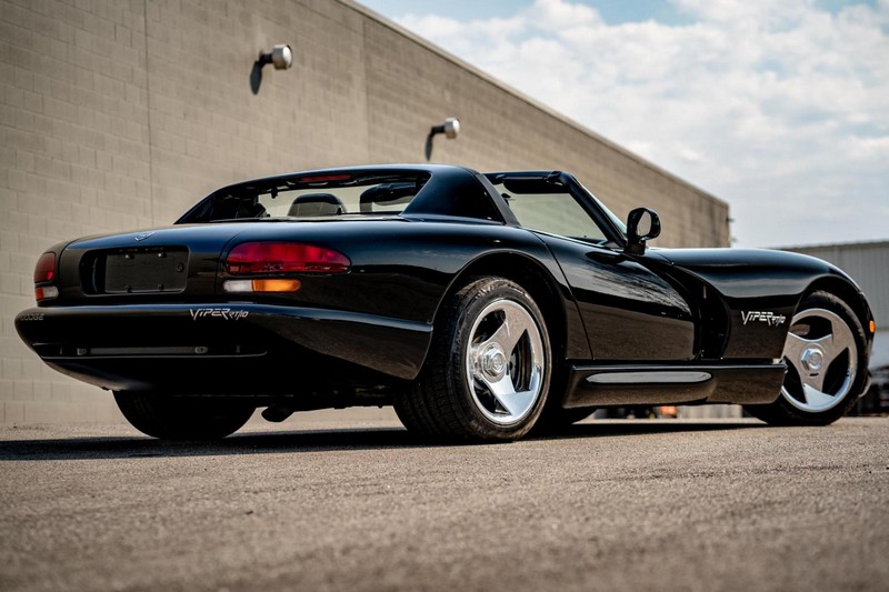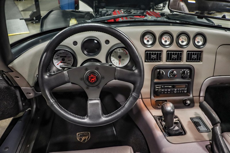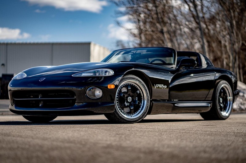 Make:Dodge Model:Viper Mileage:9,700 Engine:8.0L V10 Drivetrain:Rear-wheel drive Transmission:Manual (6-Speed) Body Style:Convertible Exterior Color:Viper Black Interior Color:Black/Grey THIS… is a 1994 Dodge Viper RT/10, finished in Viper Black with a black and grey interior. The attached Carfax vehicle history report shows no accidents in this Viper’s past. Factory equipment includes a limited-slip differential, a removable fabric top and side windows, leather seats with manual adjustment, and an AM/FM/cassette stereo. Power comes from an 8.0-liter V10 engine, rated at 400 horsepower and 465 lb-ft of torque. Output is sent to the rear wheels via a 6-speed manual transmission. Equipment -Limited-slip differential -Removable fabric top -Removable side windows -Leather seats -AM/FM/cassette radio Modifications Modifications reported by the seller include: -18-inch HRE wheels -Aftermarket side skirts -Aftermarket rear-exit exhaust system Known Flaws -Scuff on bottom passenger-side corner of front bumper -Some scuffs and scratches on interior plastics Recent Service History Service documentation in the photo gallery indicates that the following maintenance has been performed: -June 2021 (9,416 miles): Multi-point inspection performed, crankcase cleaning procedure performed, engine oil and filter changed, air filters replaced, power steering fluid changed, brake fluid changed, coolant flushed, rear differential fluid changed, battery replaced, front wiper blades replaced, fuel tank cleaned, 4 tires replaced The selling dealer reports that this Viper received an engine oil and filter change in the Fall of 2021. Other Items Included in Sale -1 set of keys -Owner’s manuals -Factory 17-inch wheels -Tonneau interior cover -Car cover -Parts shown in gallery