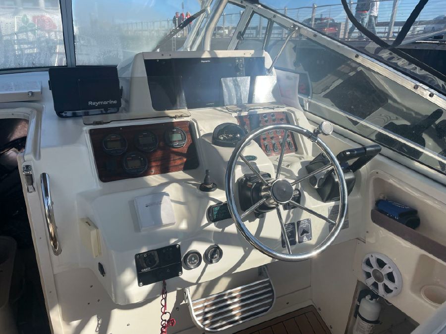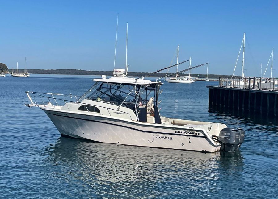 2000 Grady-White Marlin 300 Powered by a pair of 2006 Yamaha F250 Four Stroke outboard engines with new warrantied lower ends. This Sport Fishing boat is equipped with all standard features including the following: hard top with new Eisenglass enclosure, updated upholstery, cockpit seat, Rupp out-riggers, dockside power, battery charger, numerous upgrades including a bow thruster and Trailer.