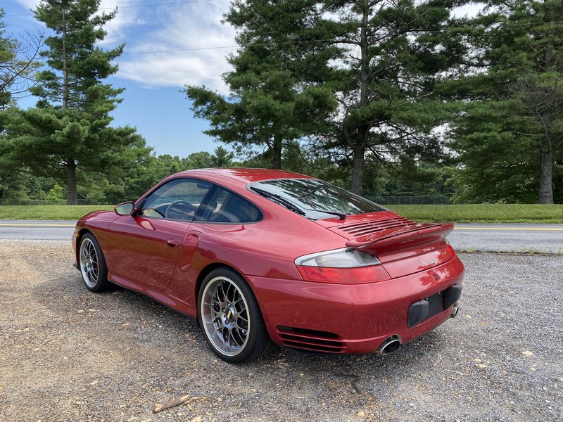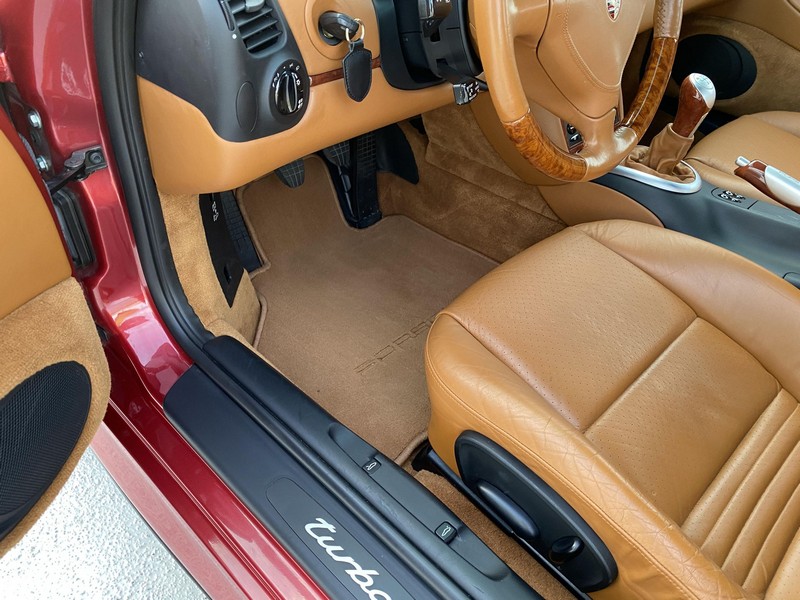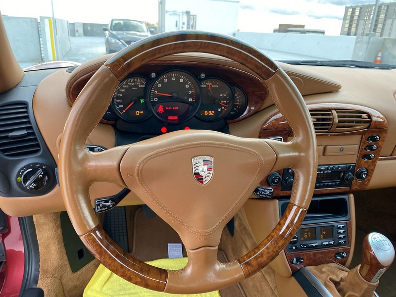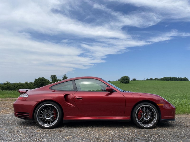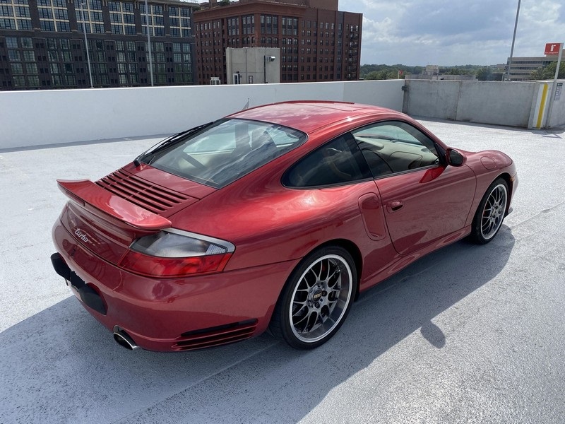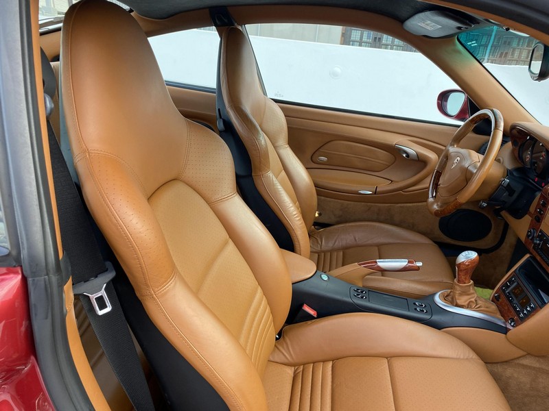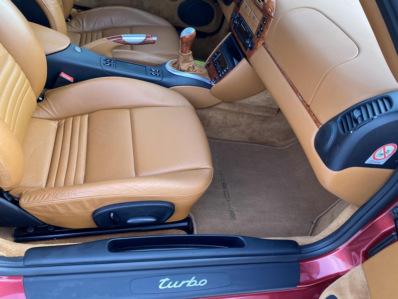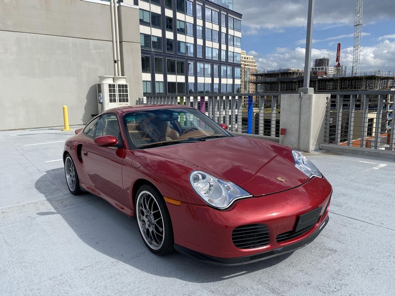 THIS… is a 2001 Porsche 911 Turbo, finished in Orient Red Metallic with a Brown interior. This Porsche is equipped with the desirable 6-speed manual transmission, and its odometer indicates approximately 29,300 miles. The attached Carfax history report lists no accidents or odometer discrepancies in this car’s past. Factory equipment includes bi-xenon headlights, front bumperettes deleted, a Turbo-specific body kit, a sunroof, a rear wiper, a rear spoiler, leather upholstery, heated and power-adjustable front sport seats, automatic climate control, and a CD player, among others listed below. Power for this 911 comes from a twin-turbocharged “Mezger” 3.6-liter flat-6, rated at 415 horsepower and 415 lb-ft of torque. Output is sent to all four wheels via a 6-speed manual transmission.