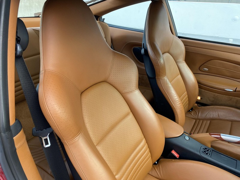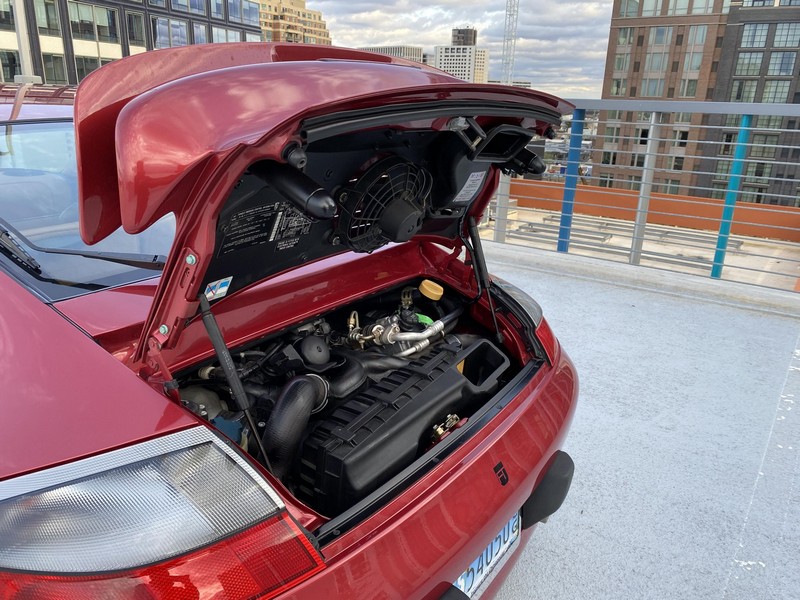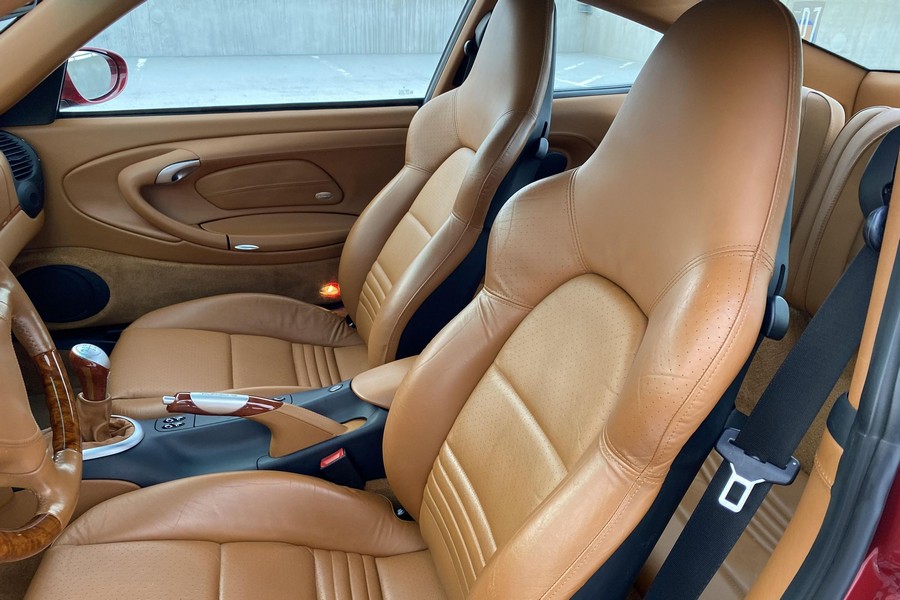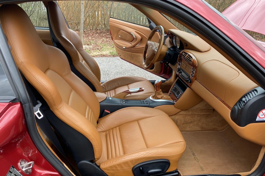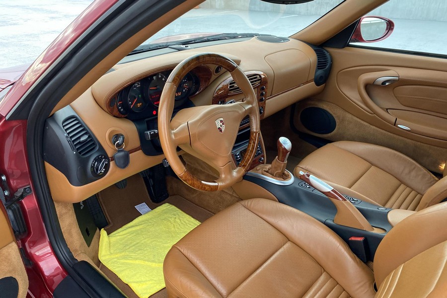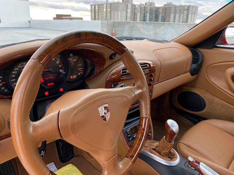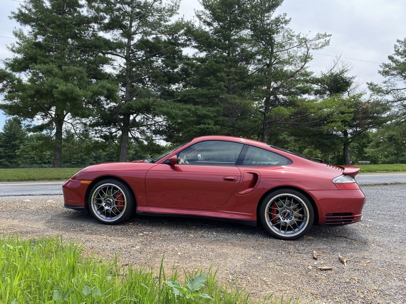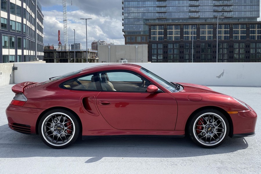 THIS… is a 2001 Porsche 911 Turbo, finished in Orient Red Metallic with a Brown interior. This Porsche is equipped with the desirable 6-speed manual transmission, and its odometer indicates approximately 29,300 miles. The attached Carfax history report lists no accidents or odometer discrepancies in this car’s past. Factory equipment includes bi-xenon headlights, front bumperettes deleted, a Turbo-specific body kit, a sunroof, a rear wiper, a rear spoiler, leather upholstery, heated and power-adjustable front sport seats, automatic climate control, and a CD player, among others listed below. Power for this 911 comes from a twin-turbocharged “Mezger” 3.6-liter flat-6, rated at 415 horsepower and 415 lb-ft of torque. Output is sent to all four wheels via a 6-speed manual transmission.