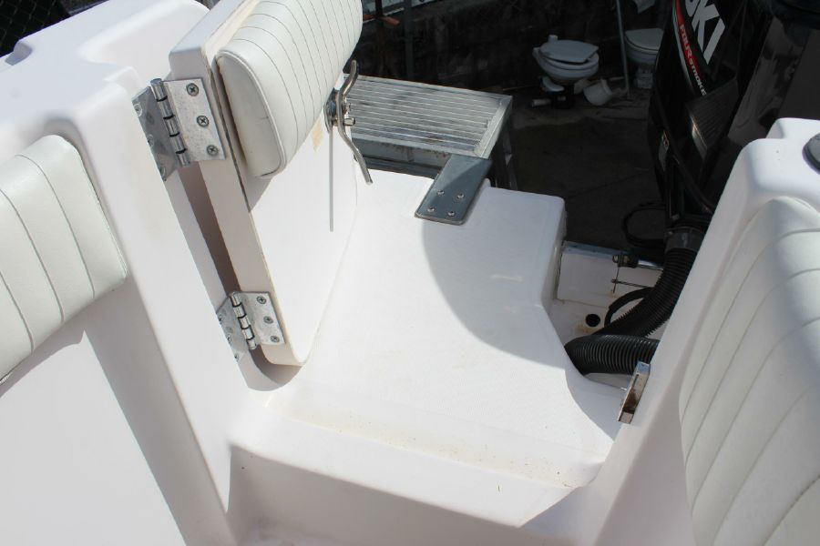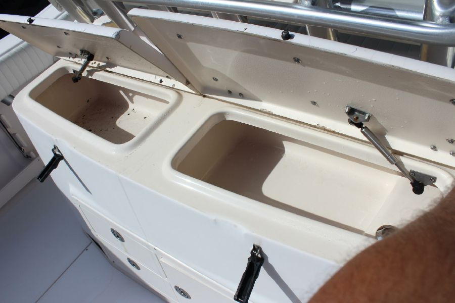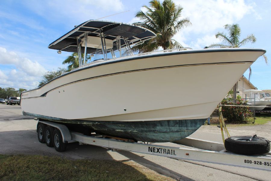 The Grady-White Bimini 306 features an electro-mechanical electronics enclosure that adjusts both to varying viewing conditions and to the helmsman’s height at the push of a button. and includes a 12inch Raymarine Hybrid Touch GPS / Sounder. Also include trim tabs, VHF Radio, Fusion Stereo. Large bow area has a full set of cushions. The enclosed head is very roomy and has a flushing toilet, sink, and storage. Lots of cockpit space for rods and gear. There is a transom livewell and a tuna door. Factory T-top. All Upholstery in nice shape. This rugged offshore fisherman is in excellent shape and runs great. Does not have a trailer.
