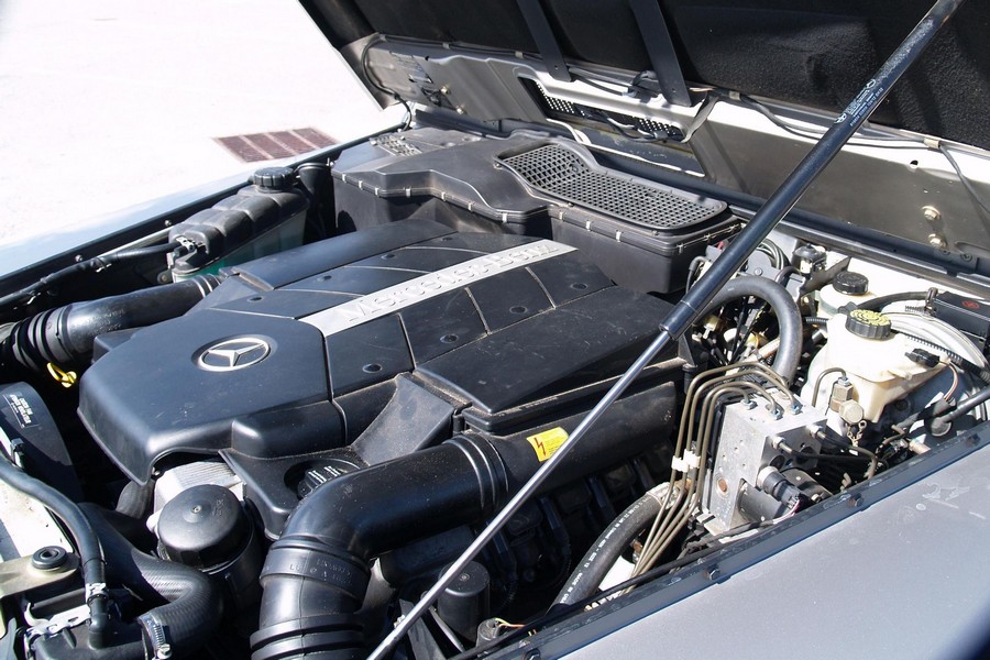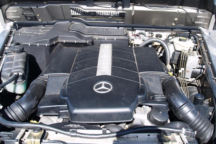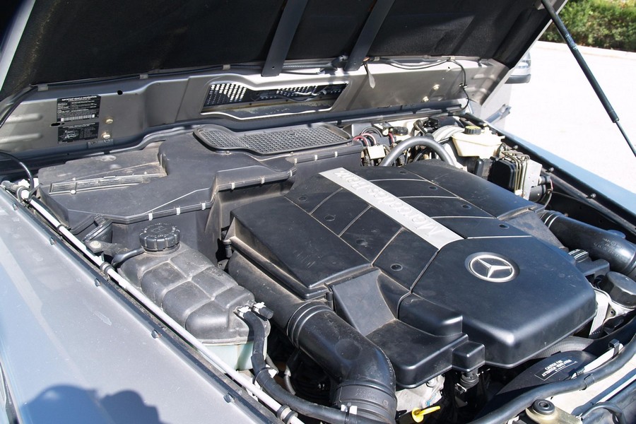 THIS… is a 2003 Mercedes-Benz G500, finished in Cubanite Silver Metallic with a gray interior. Equipment includes solid front and rear axles, full-time four-wheel drive, a 2-speed transfer case, three locking differentials, a sunroof, leather upholstery, wood trim, power-adjustable and heated front seats, heated second-row seats, and more as detailed below. Power comes from an “M113” 5.0-liter V8 engine, rated at 292 horsepower and 336 lb-ft of torque. Output is sent to all four wheels via a 5-speed automatic transmission and a 2-speed transfer case.