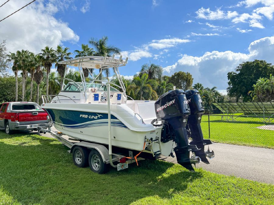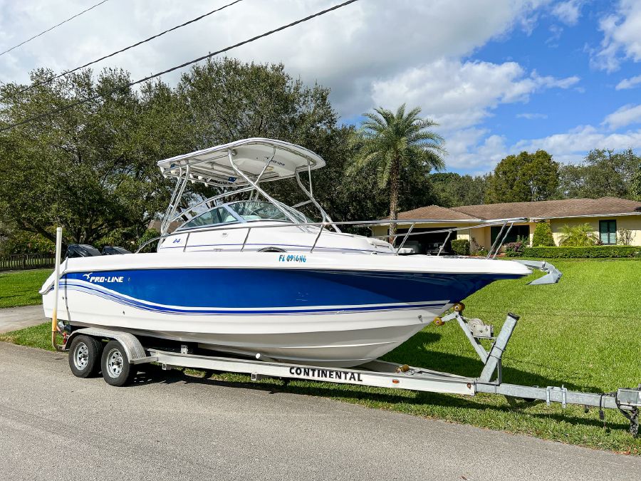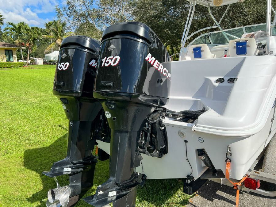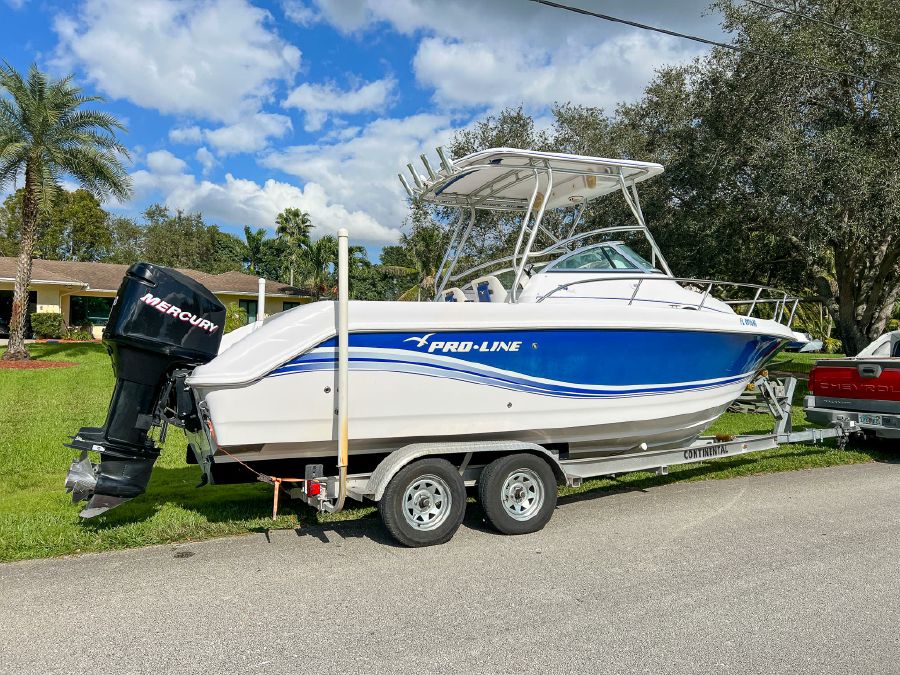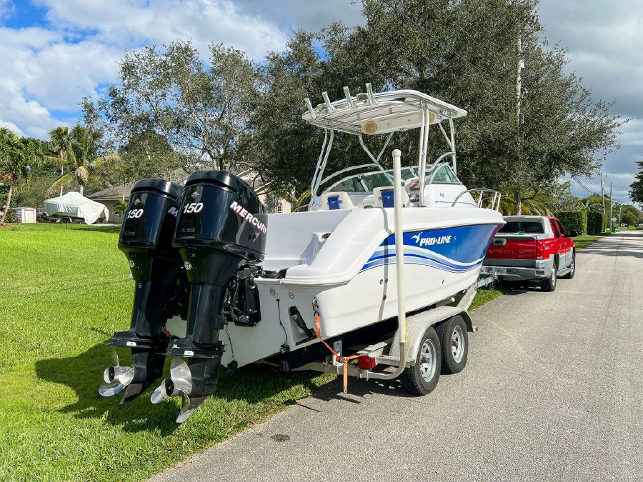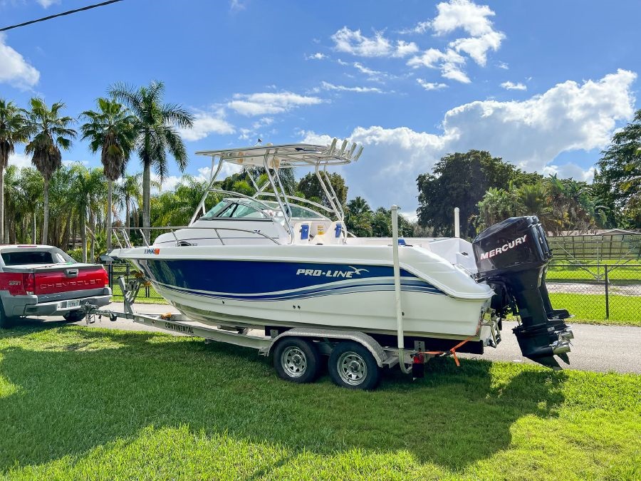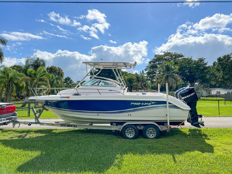 2006 Proline 24’ Walkaround powered by twin Mercury 150 Optimax’s w/ 530hrs – stored with full boat cover on trailer.