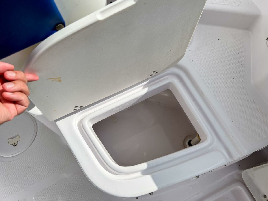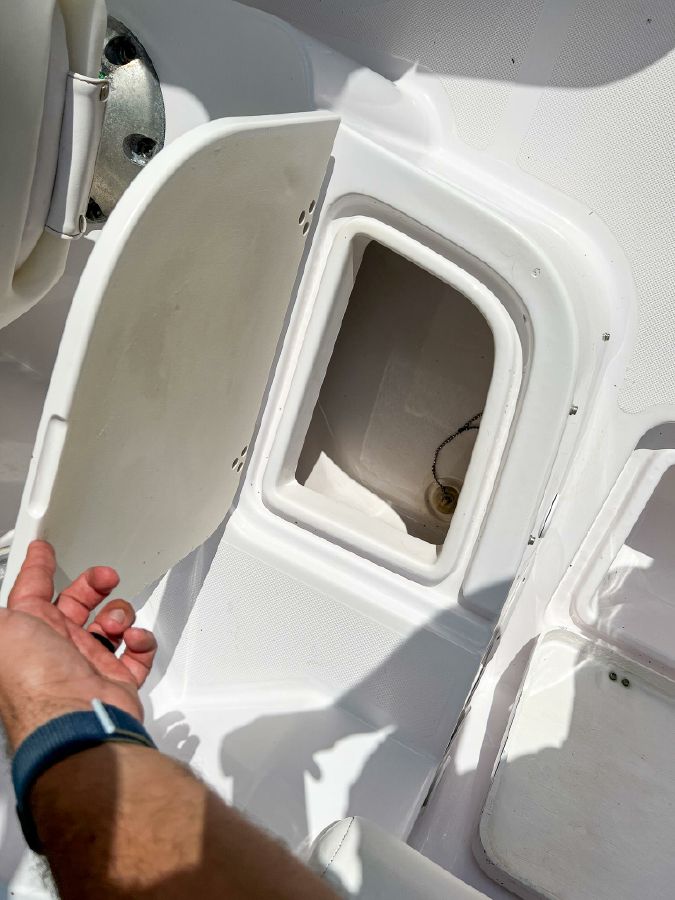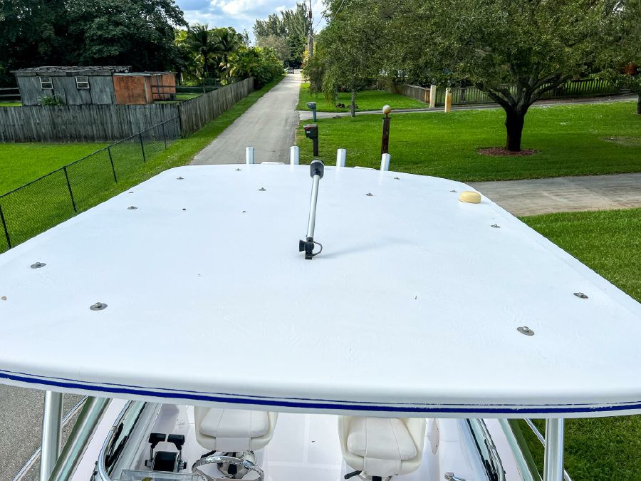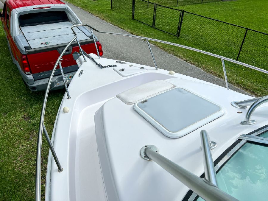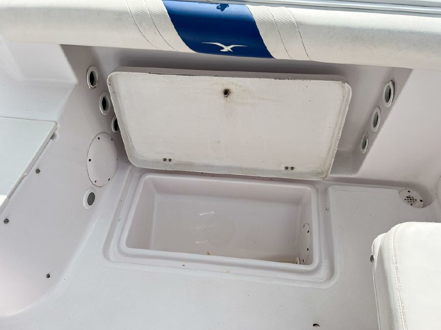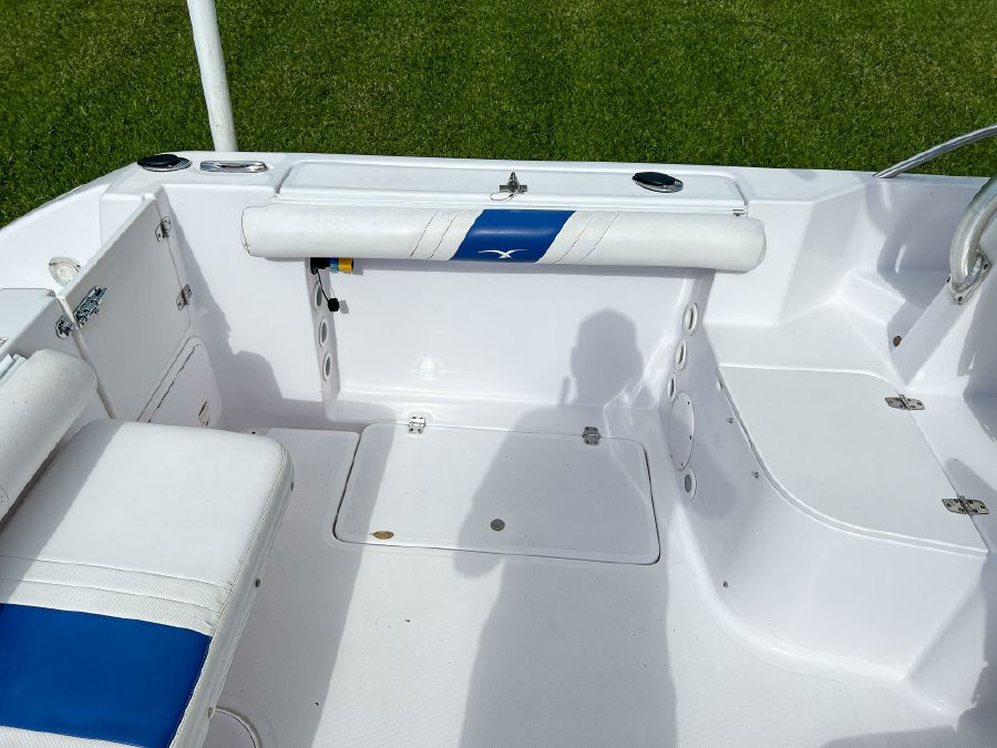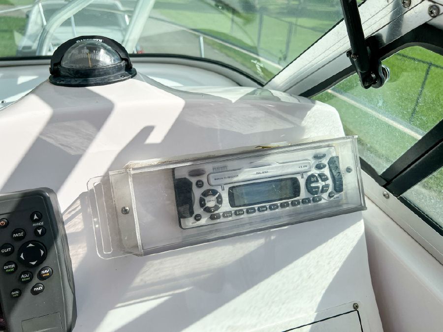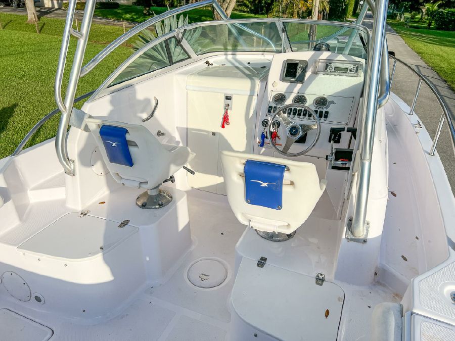 Garmin GPS, Fusion Audio sound system, updated Mercury SmartCraft gauges, Lenco trim tabs, cockpit lights, cabin lights, spreader lights, windlass, swim ladder, baitwell, full boat cover, and Continental tandem axle aluminum trailer included.