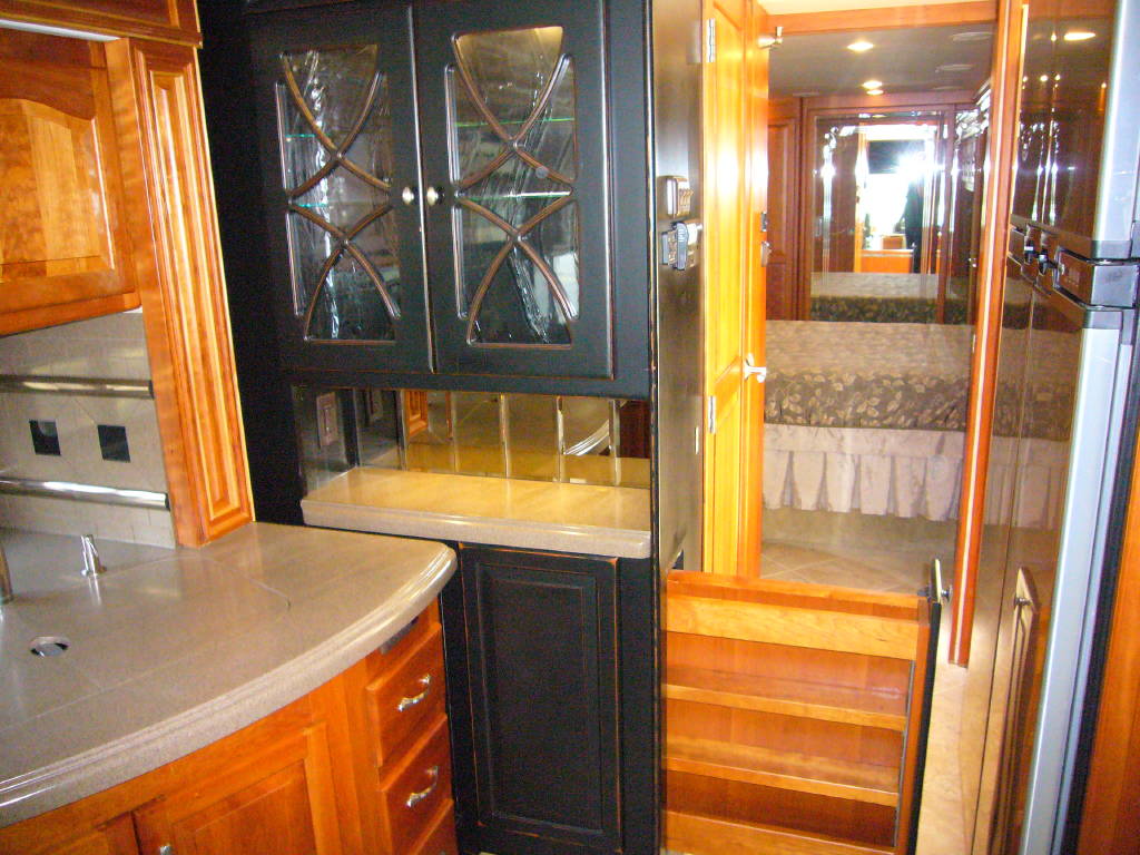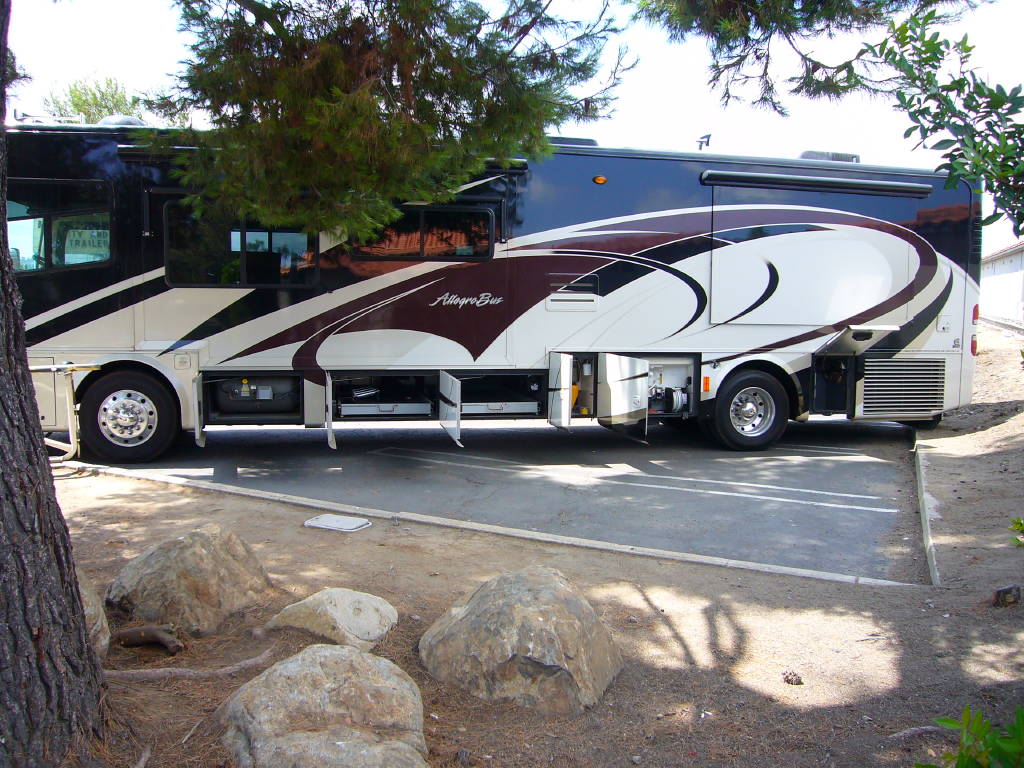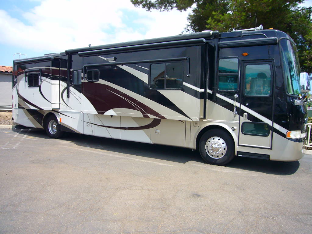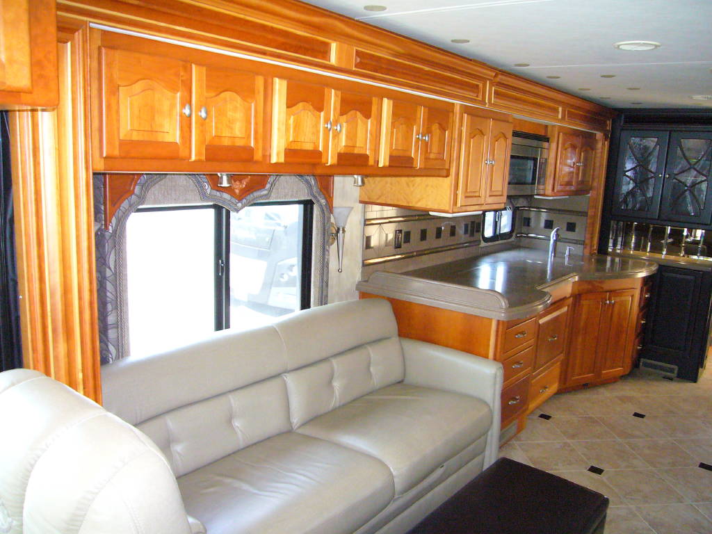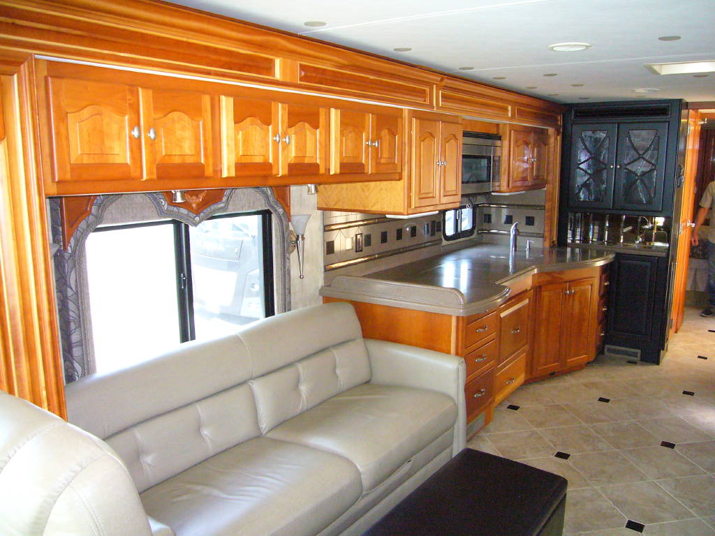 2008 Tiffin Allegro Bus (40QSP) with 4 slides and 64,793 miles and in excellent condition. Solid cherry cabinets with beautiful matching earth tone fabrics. This is the most desired and hardest to find floor plan for this model. The RV is approximately 40′ in length and has a 400 HP ISL Cummins Diesel with side drafted hydraulic cooling with an Allison 3000 6 speed MH transmission on a Spartan chassis with Tutthill Independent Front Suspension with VIP soft touch and smart wheel, 7.5 KW Onan diesel engine on slide just serviced by Cummins, power patio and door awnings, slide-out room toppers, Hydra Unlimited Heat, 50 Amp power cord reel, pass-thru storage, full length slide-out cargo trays, power water hose reel, 10K lb. hitch, automatic hydraulic leveling system, back-up camera with side cameras, Xantrax inverter, ceramic tile floors, solid surface, dual ducted roof A/Cs with heat pumps, kitchen dishwasher and 2 HD TVs and satellite, central vacuum system, stackable washer and dryer, residential Samsung refrigerator freezer with ice maker, upgraded main cabin led bulbs. Front outside screen and wheel covers.. Well maintained and cared for. Chassis and house batteries are one year old. This coach is stunningly beautiful and is an amazing luxury motorhome.