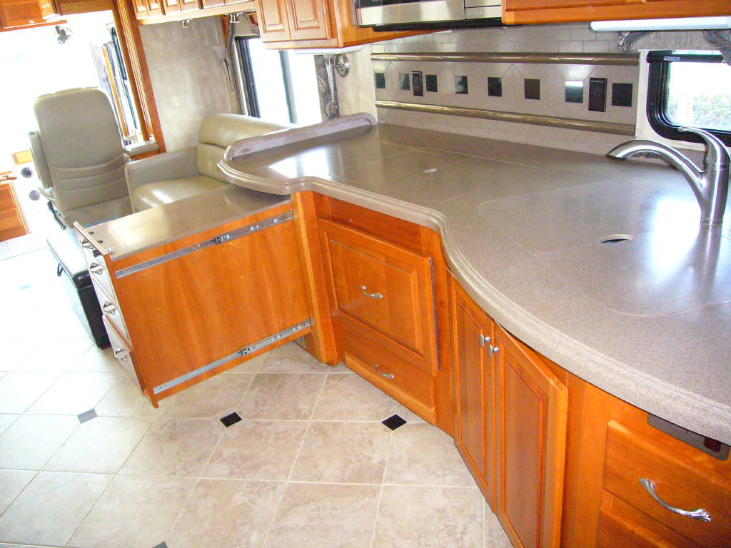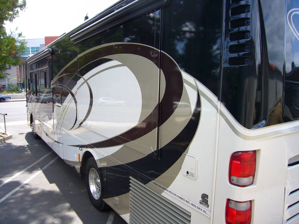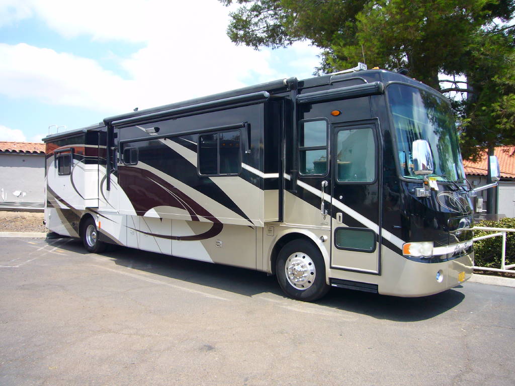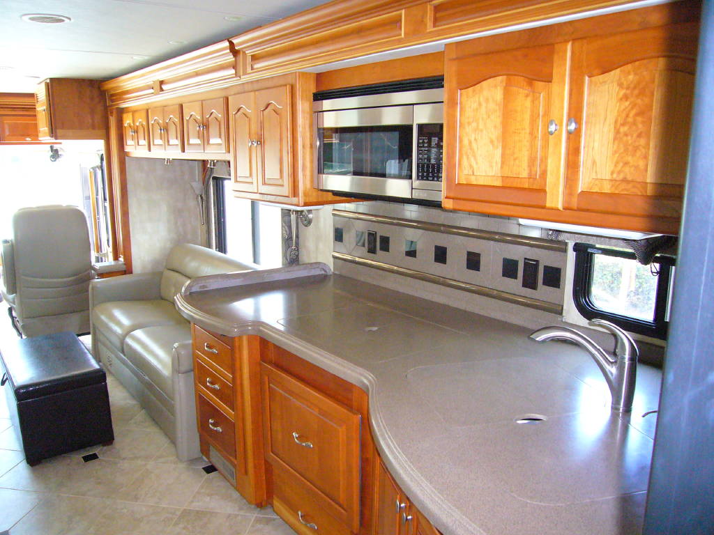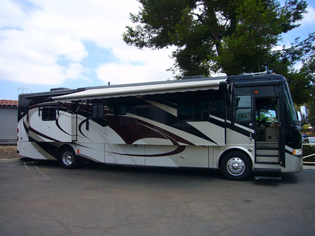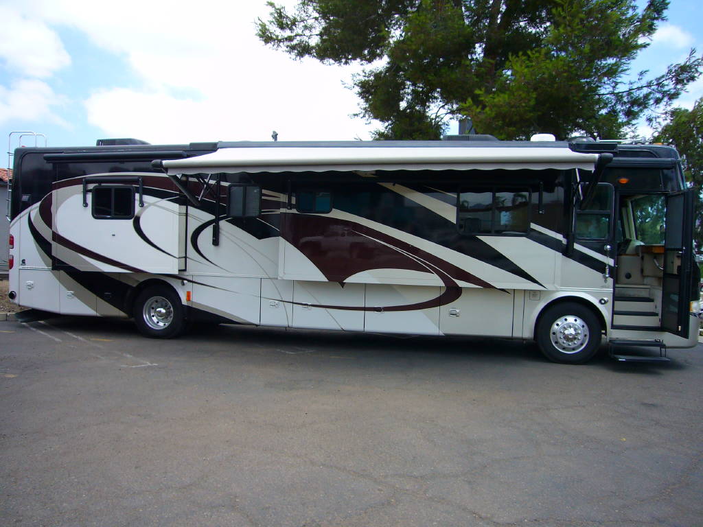 2008 Tiffin Allegro Bus (40QSP) with 4 slides and 64,793 miles and in excellent condition. Solid cherry cabinets with beautiful matching earth tone fabrics. This is the most desired and hardest to find floor plan for this model. The RV is approximately 40′ in length and has a 400 HP ISL Cummins Diesel with side drafted hydraulic cooling with an Allison 3000 6 speed MH transmission on a Spartan chassis with Tutthill Independent Front Suspension with VIP soft touch and smart wheel, 7.5 KW Onan diesel engine on slide just serviced by Cummins, power patio and door awnings, slide-out room toppers, Hydra Unlimited Heat, 50 Amp power cord reel, pass-thru storage, full length slide-out cargo trays, power water hose reel, 10K lb. hitch, automatic hydraulic leveling system, back-up camera with side cameras, Xantrax inverter, ceramic tile floors, solid surface, dual ducted roof A/Cs with heat pumps, kitchen dishwasher and 2 HD TVs and satellite, central vacuum system, stackable washer and dryer, residential Samsung refrigerator freezer with ice maker, upgraded main cabin led bulbs. Front outside screen and wheel covers.. Well maintained and cared for. Chassis and house batteries are one year old. This coach is stunningly beautiful and is an amazing luxury motorhome.