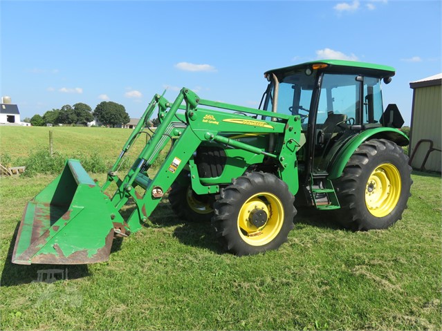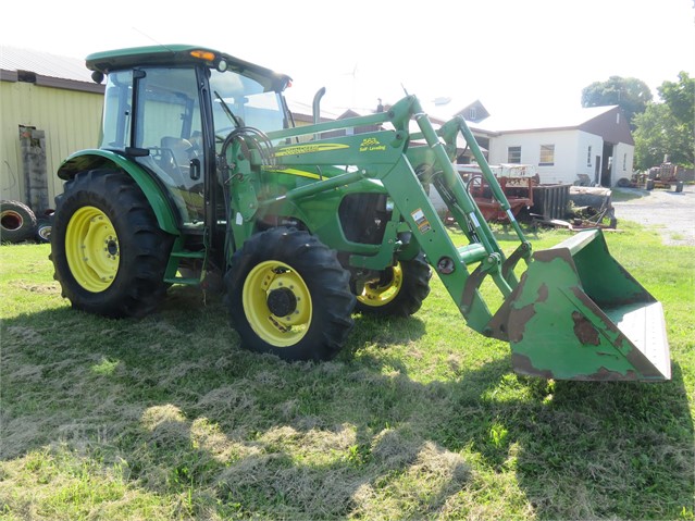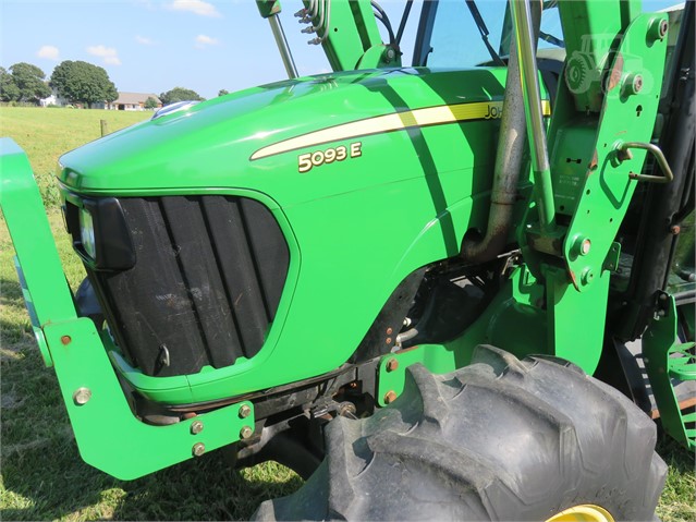 2009 John Deere 5093E with John Deere 563 Self Leveling Loader, 12 Speed Synchro Transmission with Power Reverser, Quick Attach Loader with Quick Attach Bucket, 4WD., 3pt. Hitch with Top Link, 540 / 540E PTO, 1 Set HYD. Outlets, Differential Lock, Tilt Steering, Power Steering, Cab Heat Cold Air, Front Wiper, 2 Entry Doors, AM / FM Stereo with AUX. Port, Sun Visor, Rear View Mirror, 2 Cup Holders This is a very nice 3022 hour tractor, the loader does not appear to ever have been used hard but does show some weathering.
