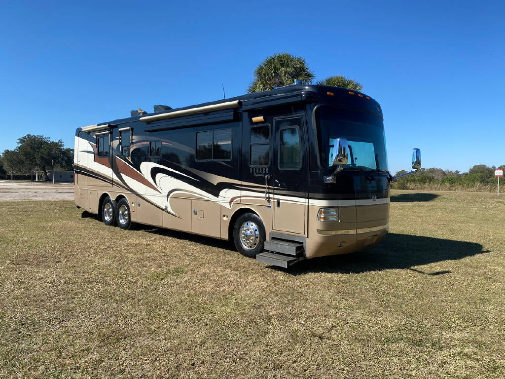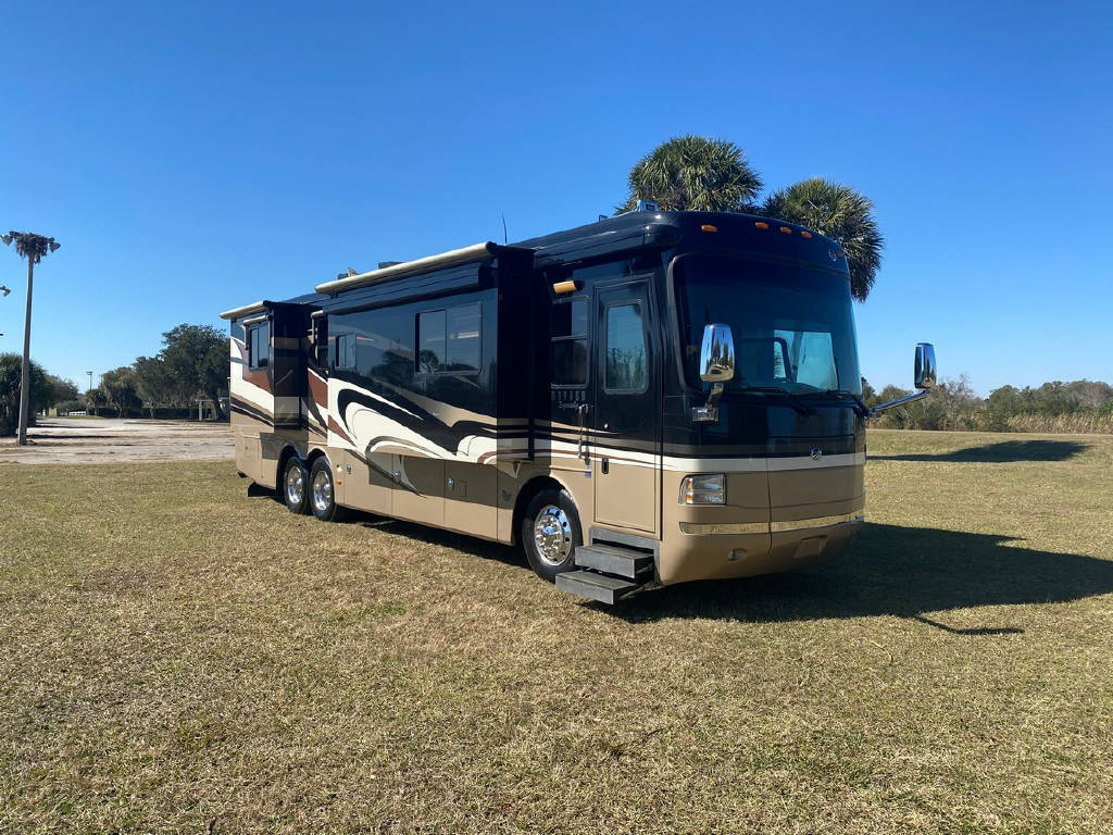 2009 Monaco Dynasty Bishop IV 4 slide motorhome with 62876 miles. This coach is on a Roadmaster Chassis powered by a 500HP Cummins Diesel Engine with Allison Transmission. This coach has everything including Aquahot, HD TVs, Stacked Washer/Dryer, Residential Fridge, New Tires & more !!!!