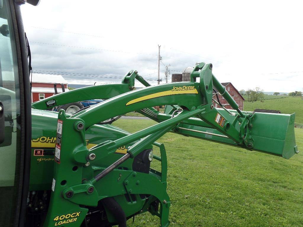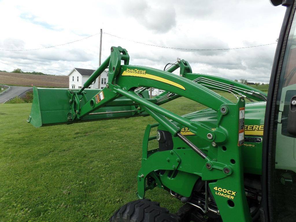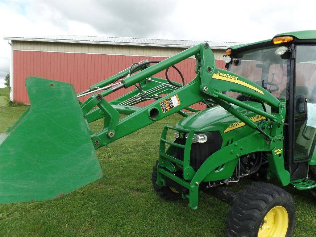 2011 JOHN DEERE, 4320 Tractors – 40 HP to 99 HP, Hydro R4 tires John Deere 400cx loader 6 bucket with John Deere quick attach.