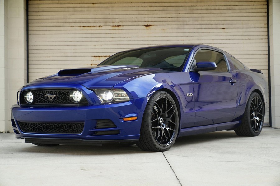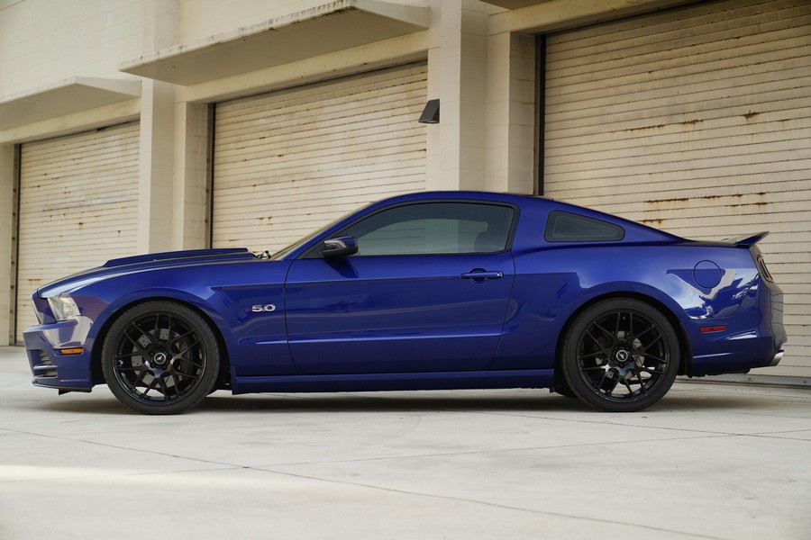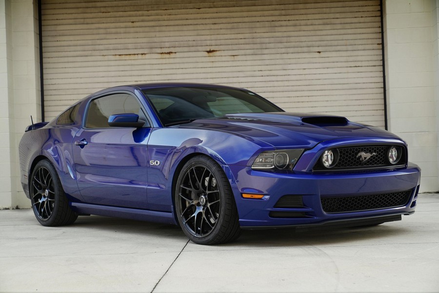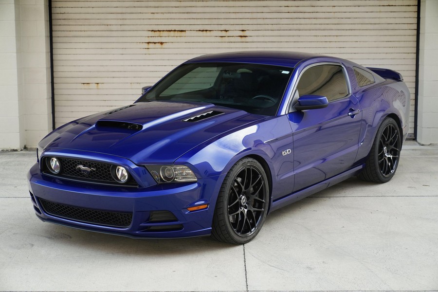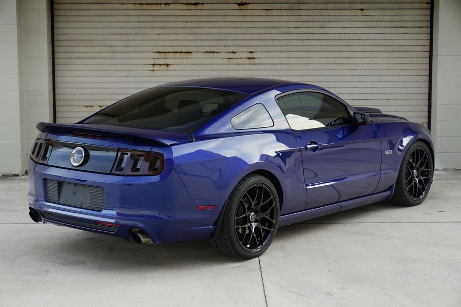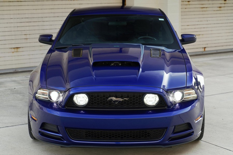 THIS… is a 2013 Ford Mustang GT Coupe, finished in Deep Impact Blue with a Charcoal Black interior. This Mustang features a desirable 6-speed manual transmission. The attached Carfax vehicle history report shows no accidents in this Mustang’s past. Factory equipment includes the GT Track Package, which features Brembo front brakes, a 3.73 limited-slip Torsen differential, a Boss 302 radiator, and an engine oil cooler. Other notable equipment includes HID headlights, LED taillights with sequential turn signals, sport front seats, air conditioning, cruise control, and an AM/FM/CD radio. Power comes from a “Coyote” 5.0-liter V8 engine, rated at 420 horsepower and 390 lb-ft of torque in stock form. Due to the modifications performed to this Mustang, it may produce more power, but a dyno sheet was not provided to confirm. Output is sent to the rear wheels via a 6-speed manual transmission.