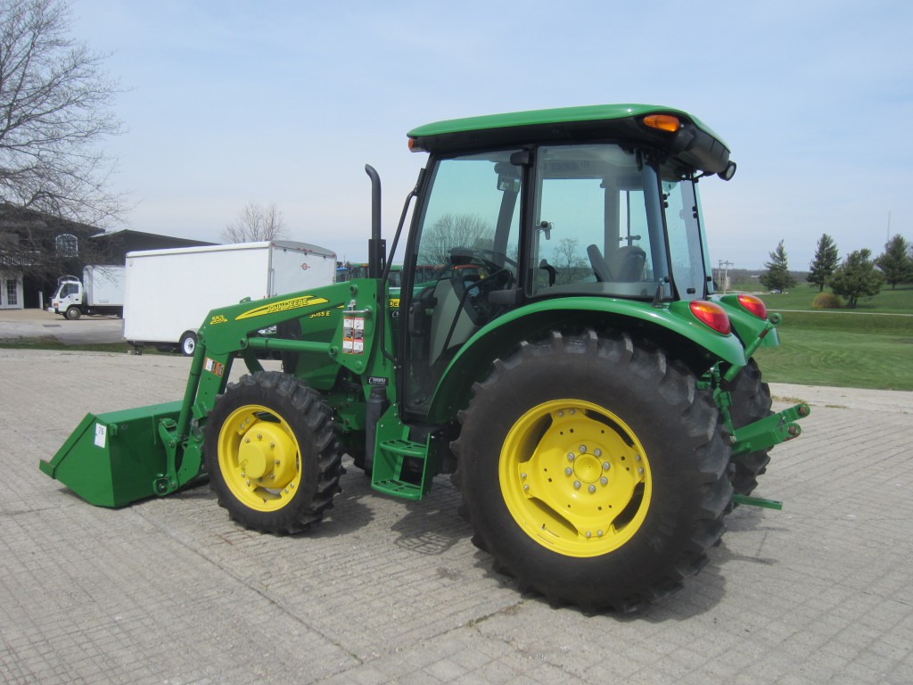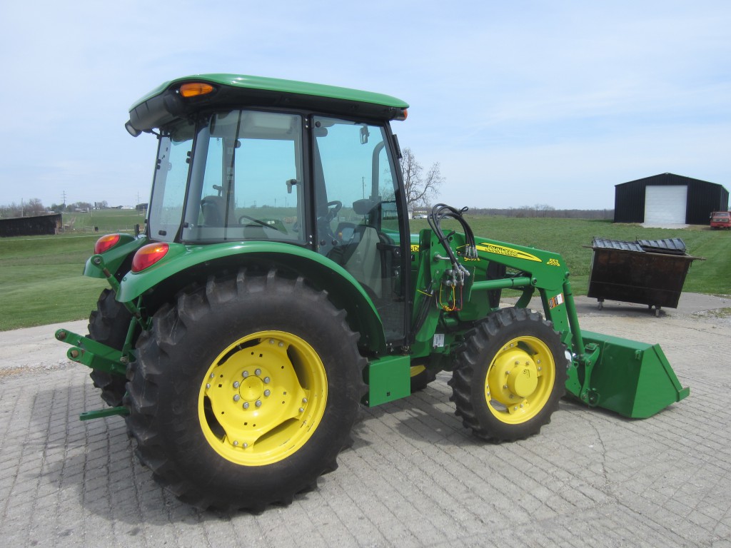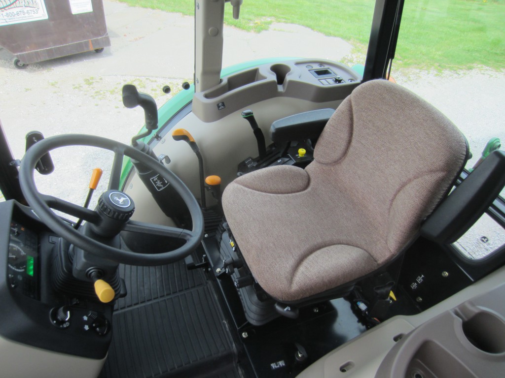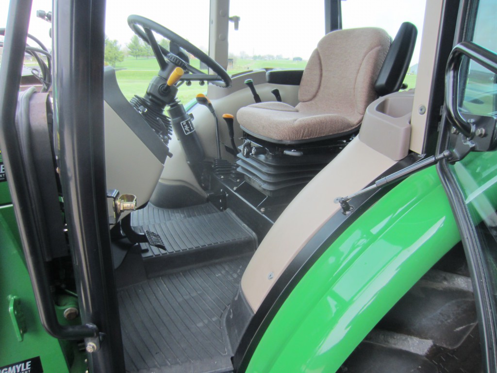 C/H/A, MFWD, John Deere 553 Loader, 500 Series 80″ QT Bucket, Joystick Control, 12 x 12 Trans, Left Hand Reverser, 53 Hours, 55 Engine/45 PTO HP, AM/FM/CD, Grill Guard, 1 Remote, Toplink, 16.9-28 98%, 9.5-24 98%