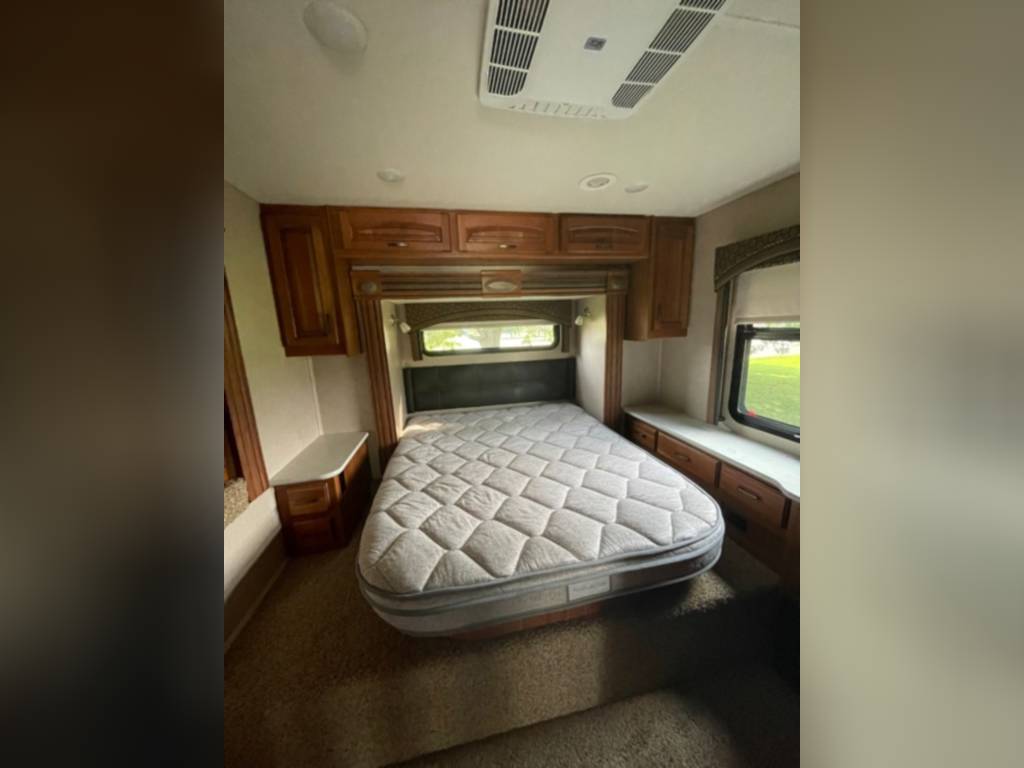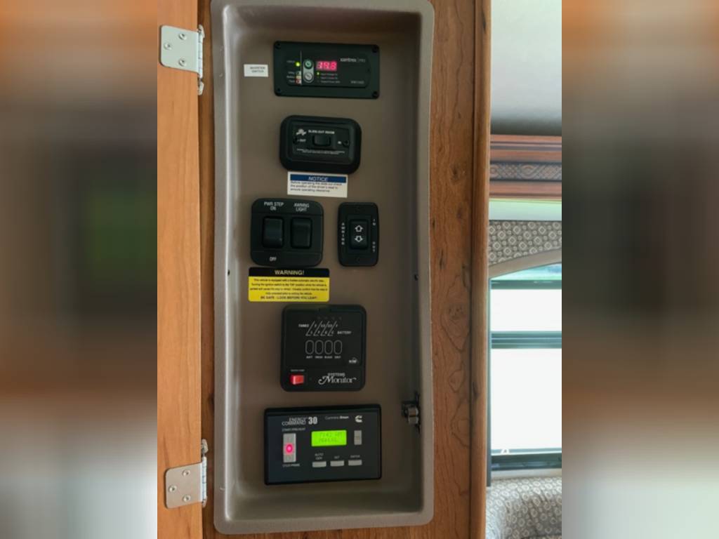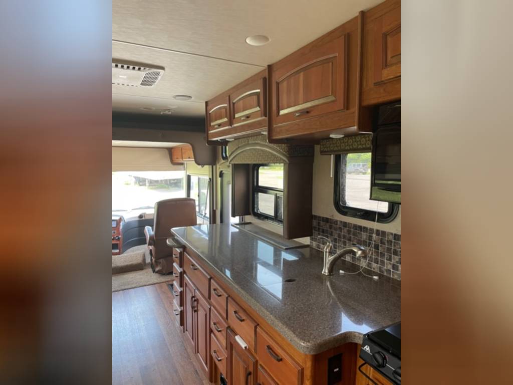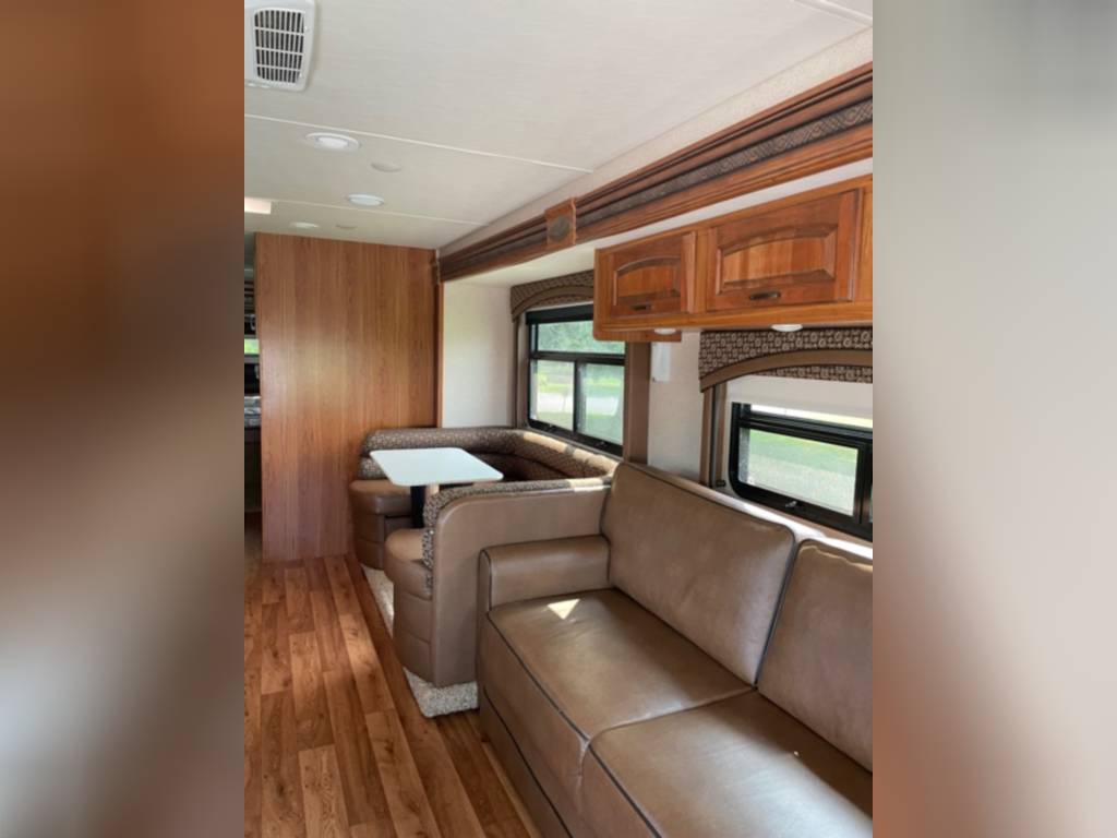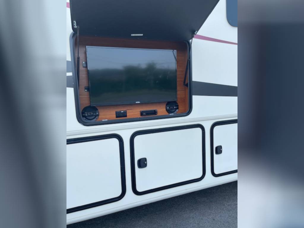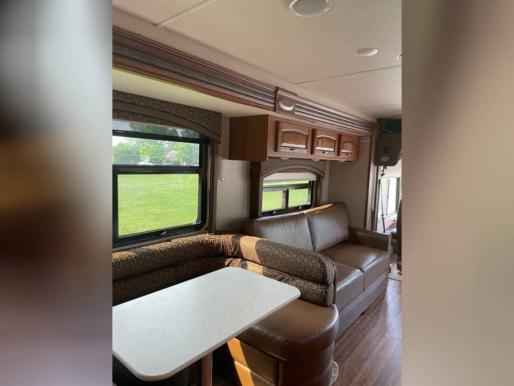 Very clean. Sleep 7 adults or 6 with 2 kids very comfortably. 2 AC units. TV antenna. Power awning. Outdoor shower. Upgraded V-Max power cells. Upgraded Kenwood driver entertainment center with Apple Car Play. Precept quiet drive ceiling really cuts down on the road noise. Brand new tankless hot water heater. Couch and dinette with lots of seatbelts. Low miles and low hours on the huge Cummins 5500 generator. TONS of storage space. Comes with RV cover for winter storage.