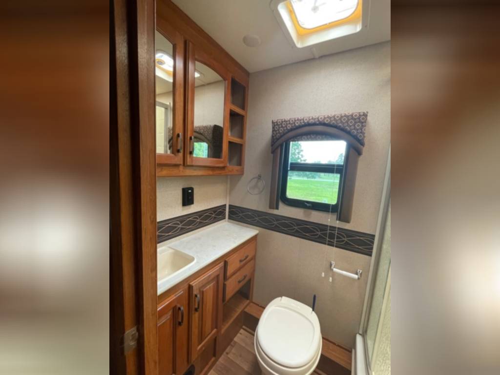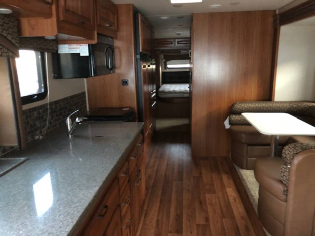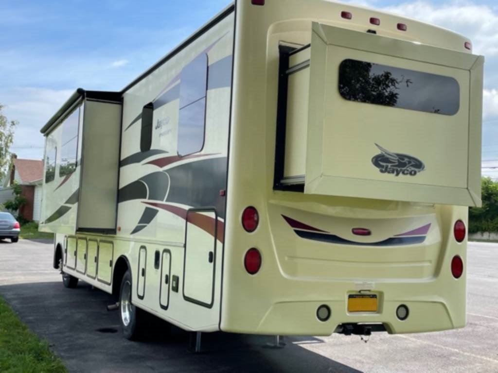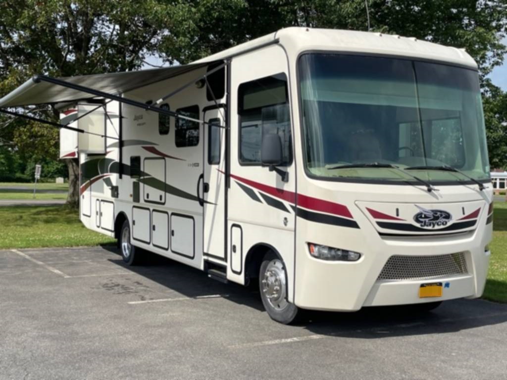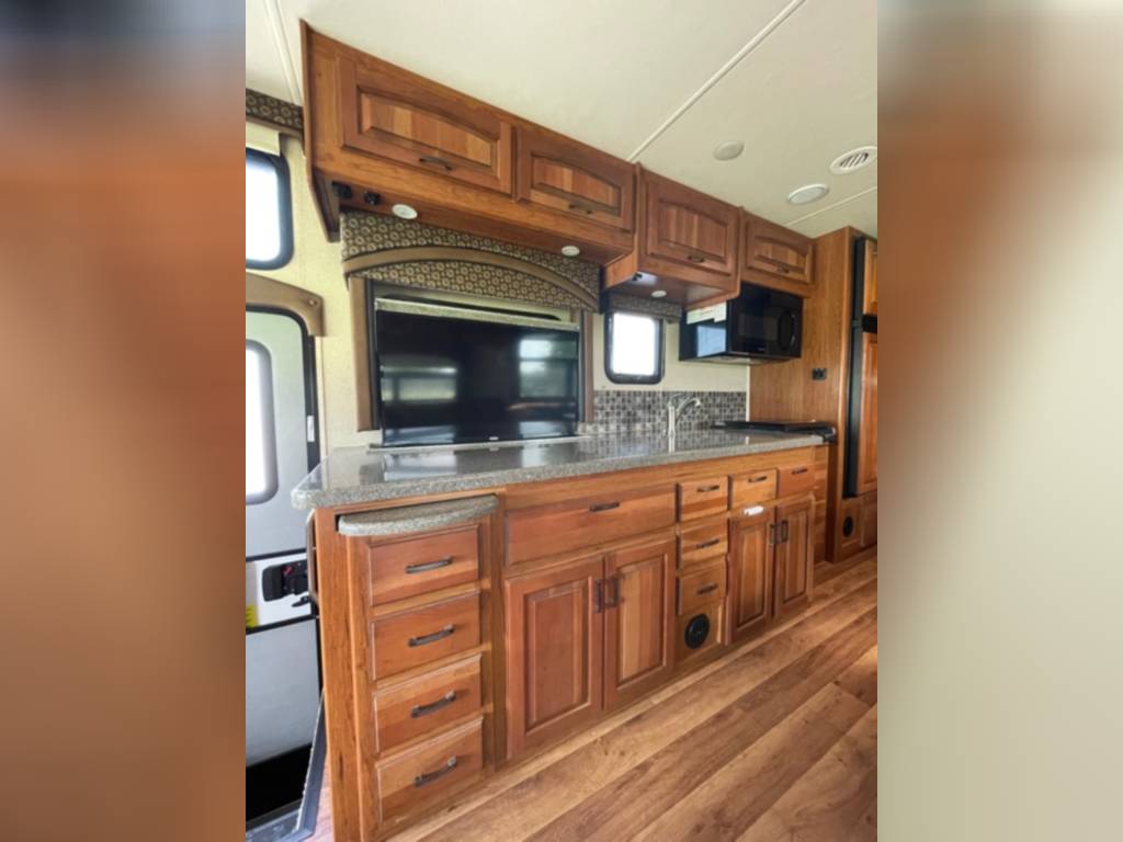 Very clean. Sleep 7 adults or 6 with 2 kids very comfortably. 2 AC units. TV antenna. Power awning. Outdoor shower. Upgraded V-Max power cells. Upgraded Kenwood driver entertainment center with Apple Car Play. Precept quiet drive ceiling really cuts down on the road noise. Brand new tankless hot water heater. Couch and dinette with lots of seatbelts. Low miles and low hours on the huge Cummins 5500 generator. TONS of storage space. Comes with RV cover for winter storage.