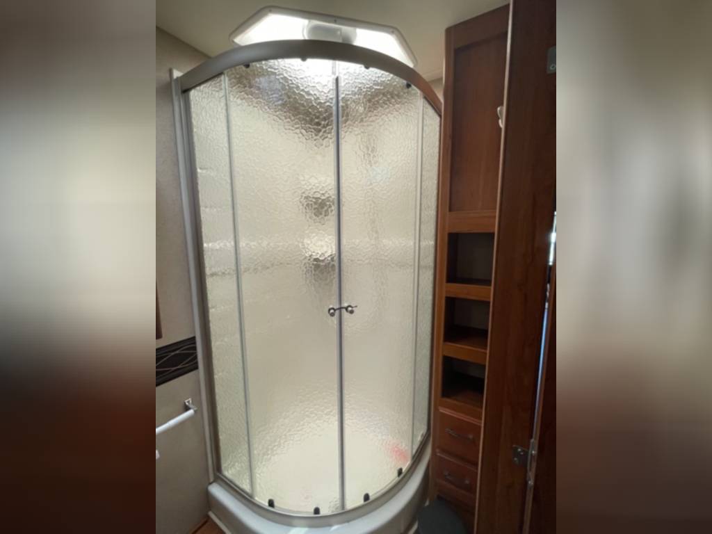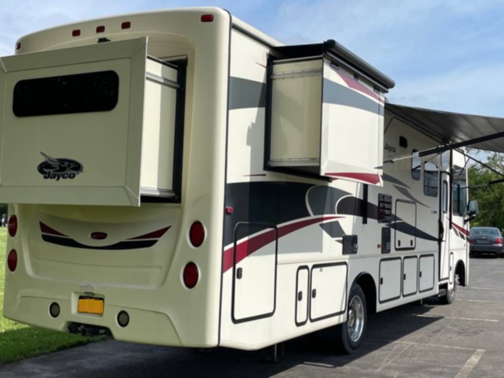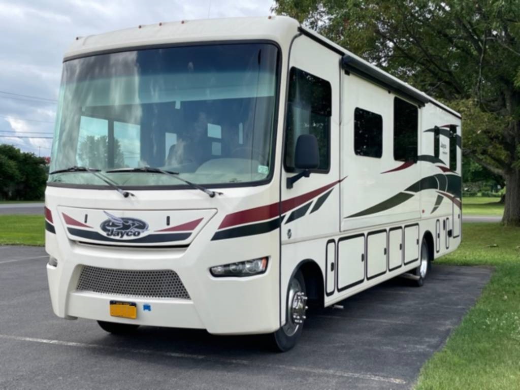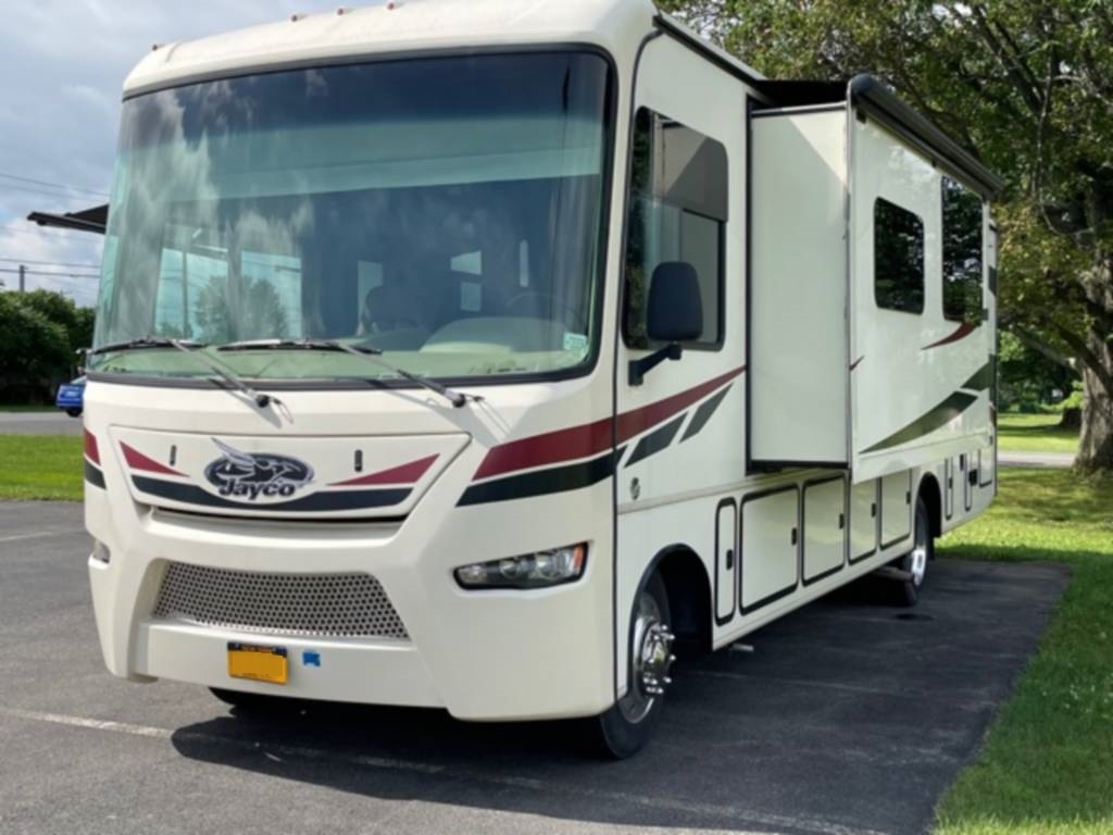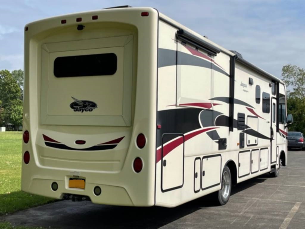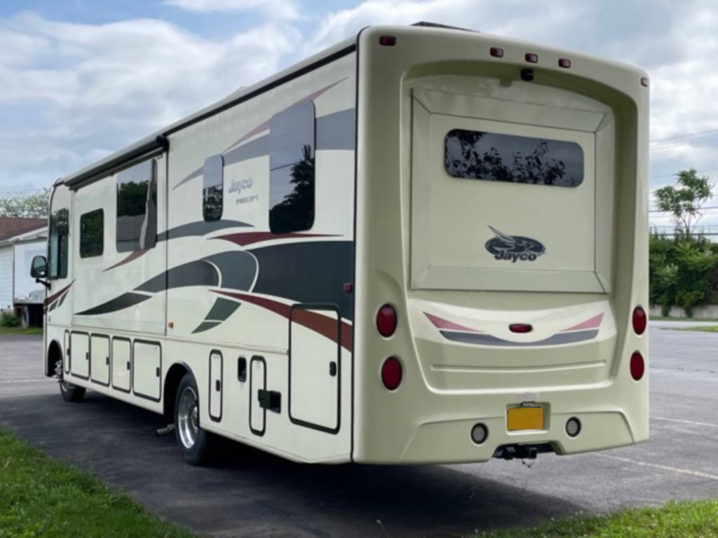 Very clean. Sleep 7 adults or 6 with 2 kids very comfortably. 2 AC units. TV antenna. Power awning. Outdoor shower. Upgraded V-Max power cells. Upgraded Kenwood driver entertainment center with Apple Car Play. Precept quiet drive ceiling really cuts down on the road noise. Brand new tankless hot water heater. Couch and dinette with lots of seatbelts. Low miles and low hours on the huge Cummins 5500 generator. TONS of storage space. Comes with RV cover for winter storage.