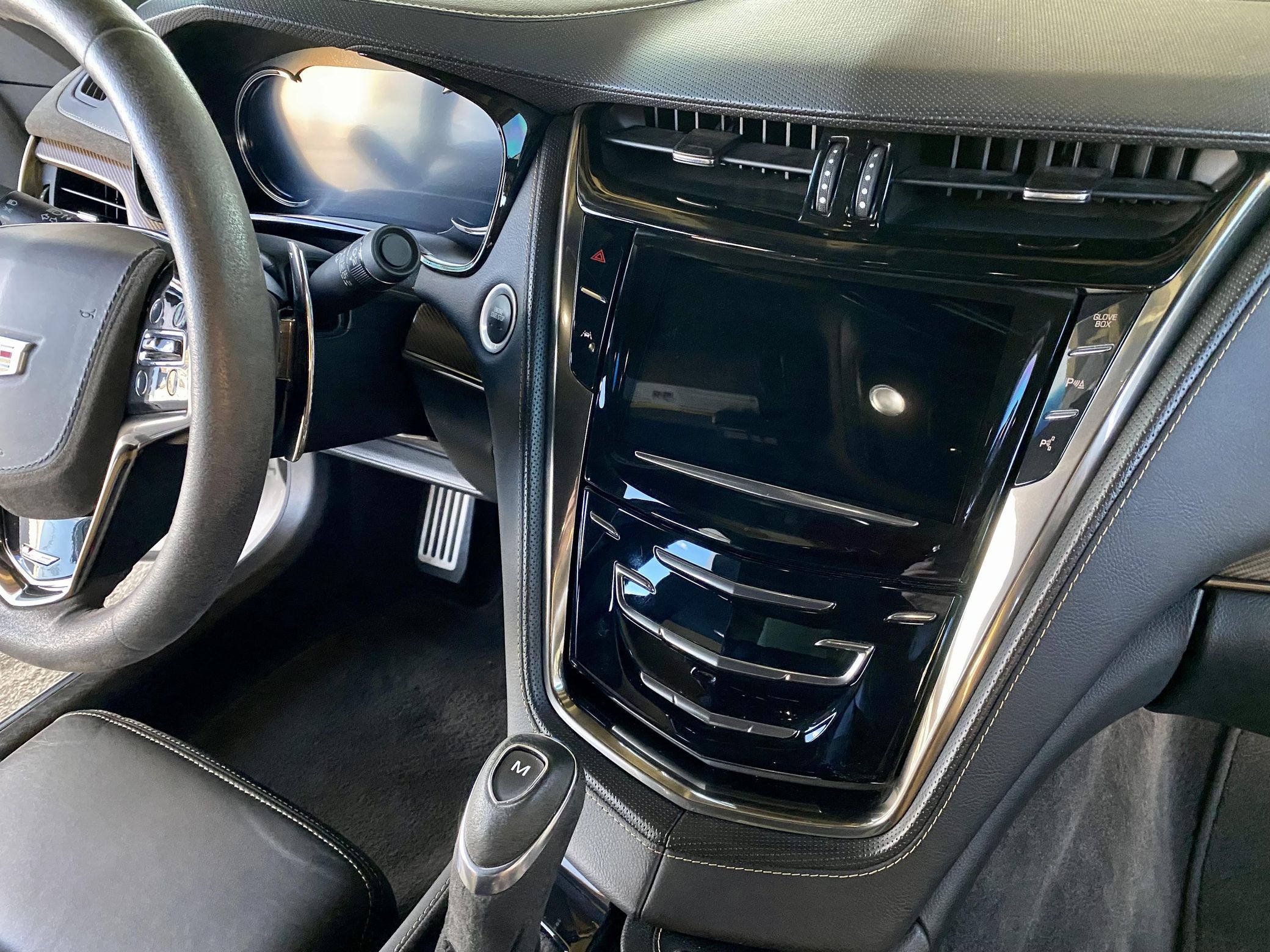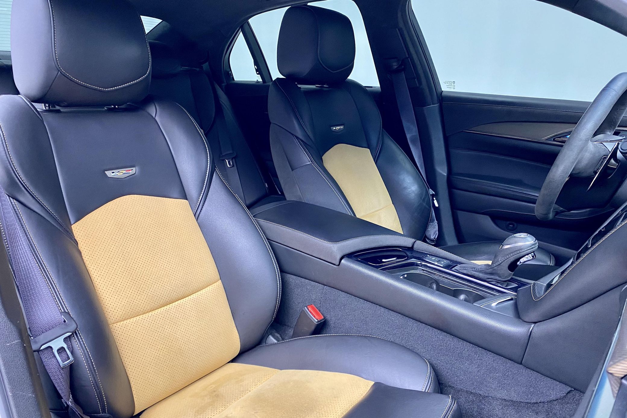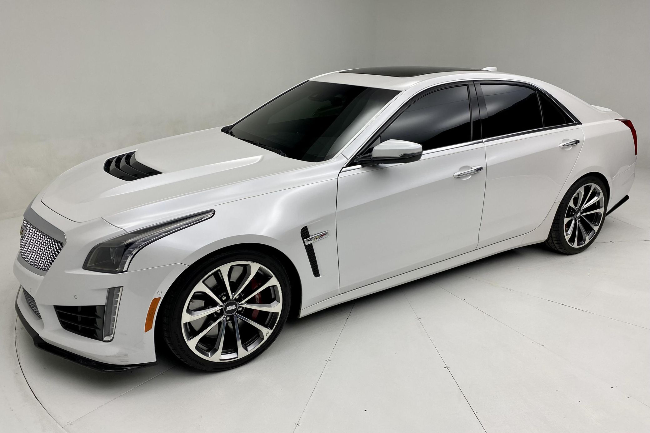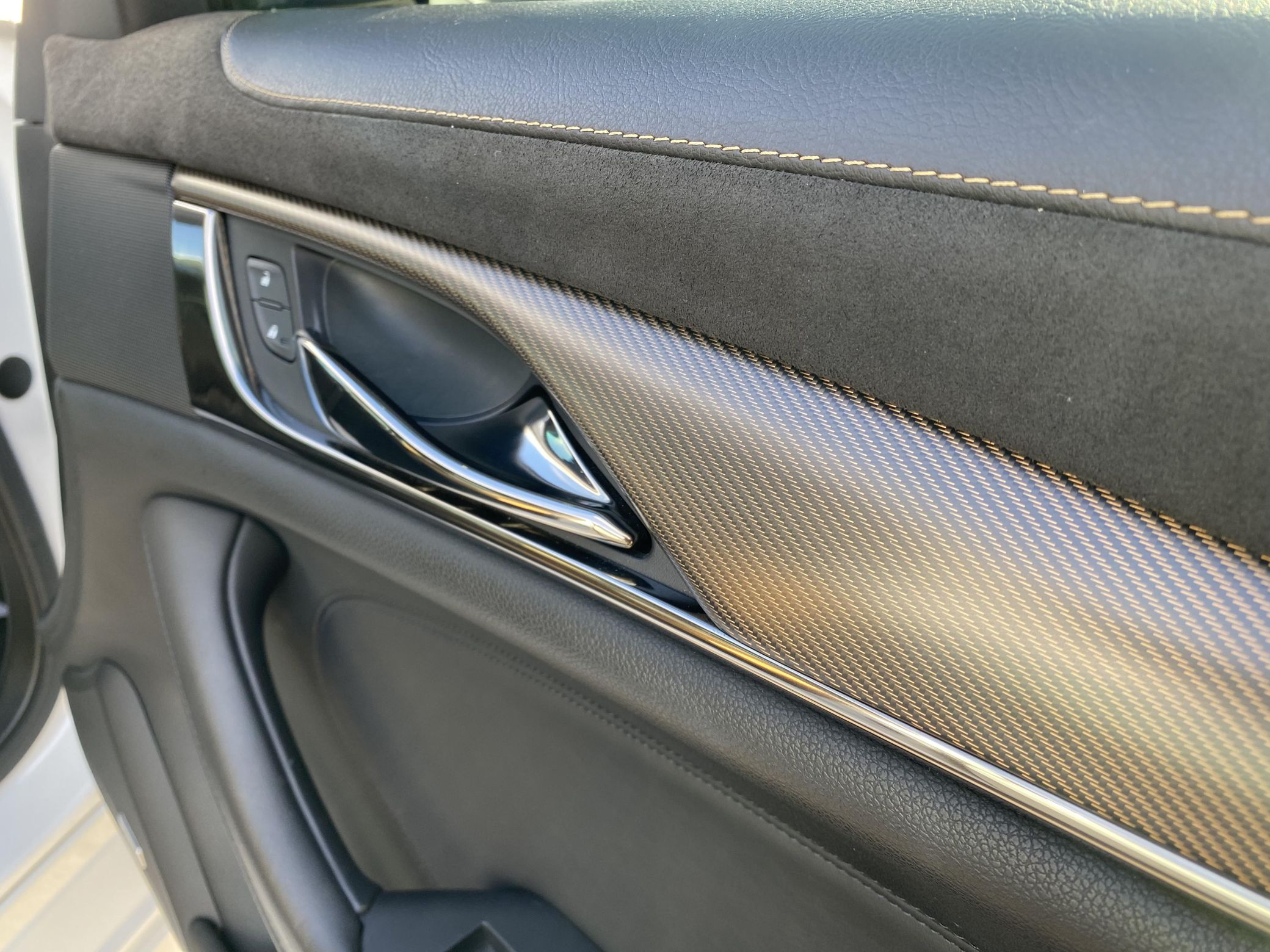 The odometer displays about 26,900 miles. No mileage inconsistencies in this sedan’s past. Factory equipment includes 19-inch wheels, the Magnetic Ride Control suspension system, a Brembo braking system, a carbon fiber hood, carbon fiber interior trim, leather and suede upholstery, heated and ventilated front sport seats, a heated steering wheel, a 12.3-inch digital instrument cluster, a Bose sound system, a wireless device charger, a head-up display, plus front and rear parking sensors. Modifications reported by the seller are limited to black paint on the hood vent, a ceramic tint on the windshield and on the windows, and a hard-wired Escort Passport 9500ci radar detector. The third-generation CTS-V arrived for 2016 as the most powerful series-produced Cadillac ever released. It earned the nickname “four-door Corvette” because it was powered by an “LT4” V8 engine shared with the Corvette Z06, among other models. This decidedly American take on the concept of a high-power sport sedan was praised by enthusiasts and journalists alike for offering excellent performance, surprisingly sharp handling, and an interior that represented a big step forward over the second-generation model. Production ended in 2019, when the CTS was replaced by the CT5. Power comes from a 6.2-liter supercharged V8, rated at 640 horsepower and 630 lb-ft of torque. It spins the rear wheels via an 8-speed automatic transmission linked to a pair of shift paddles.
