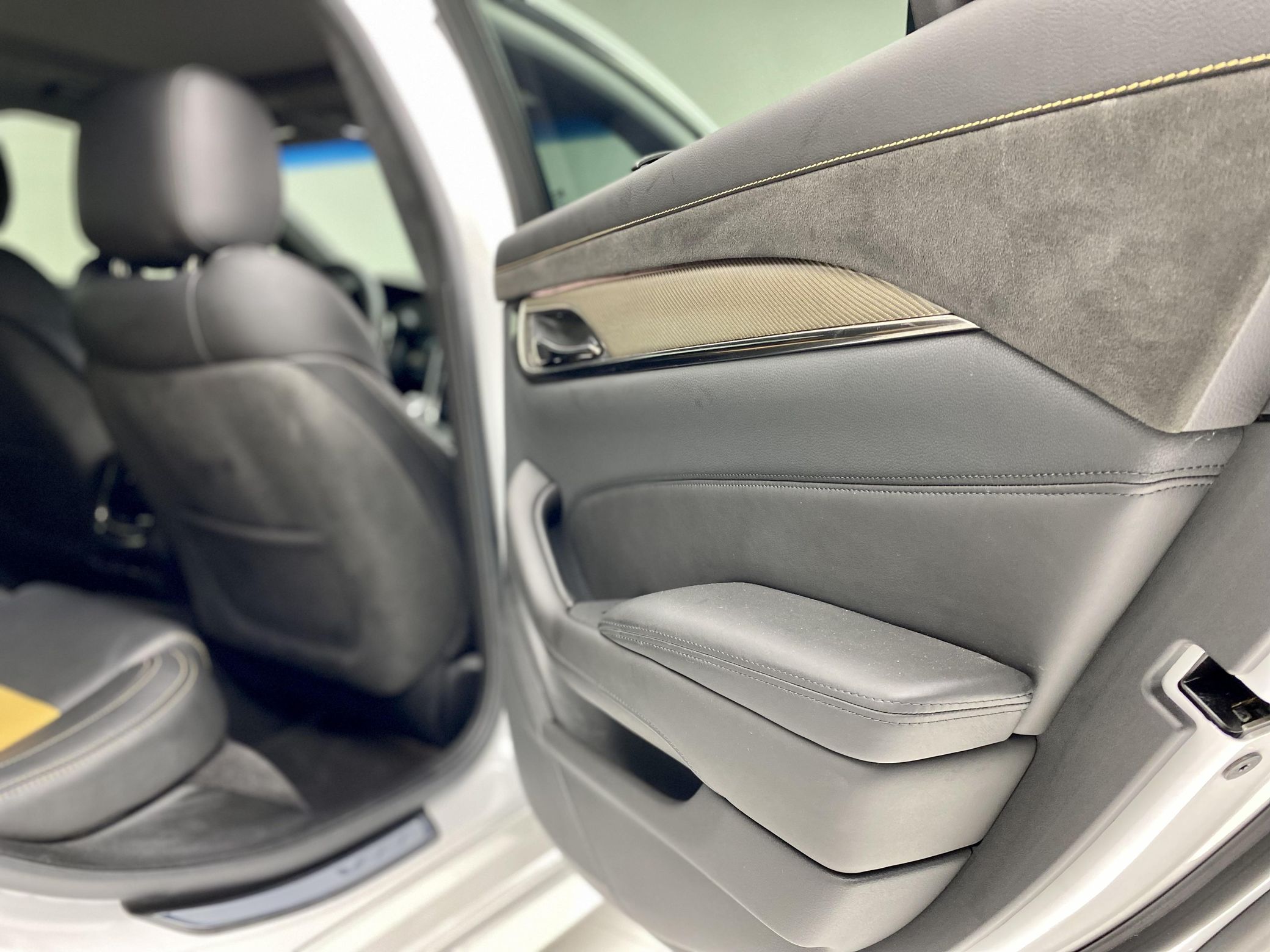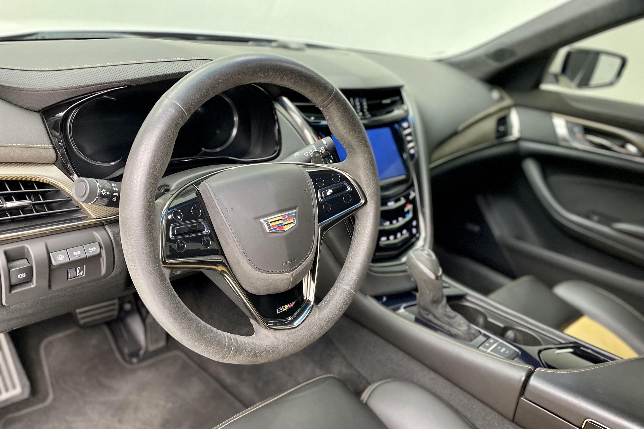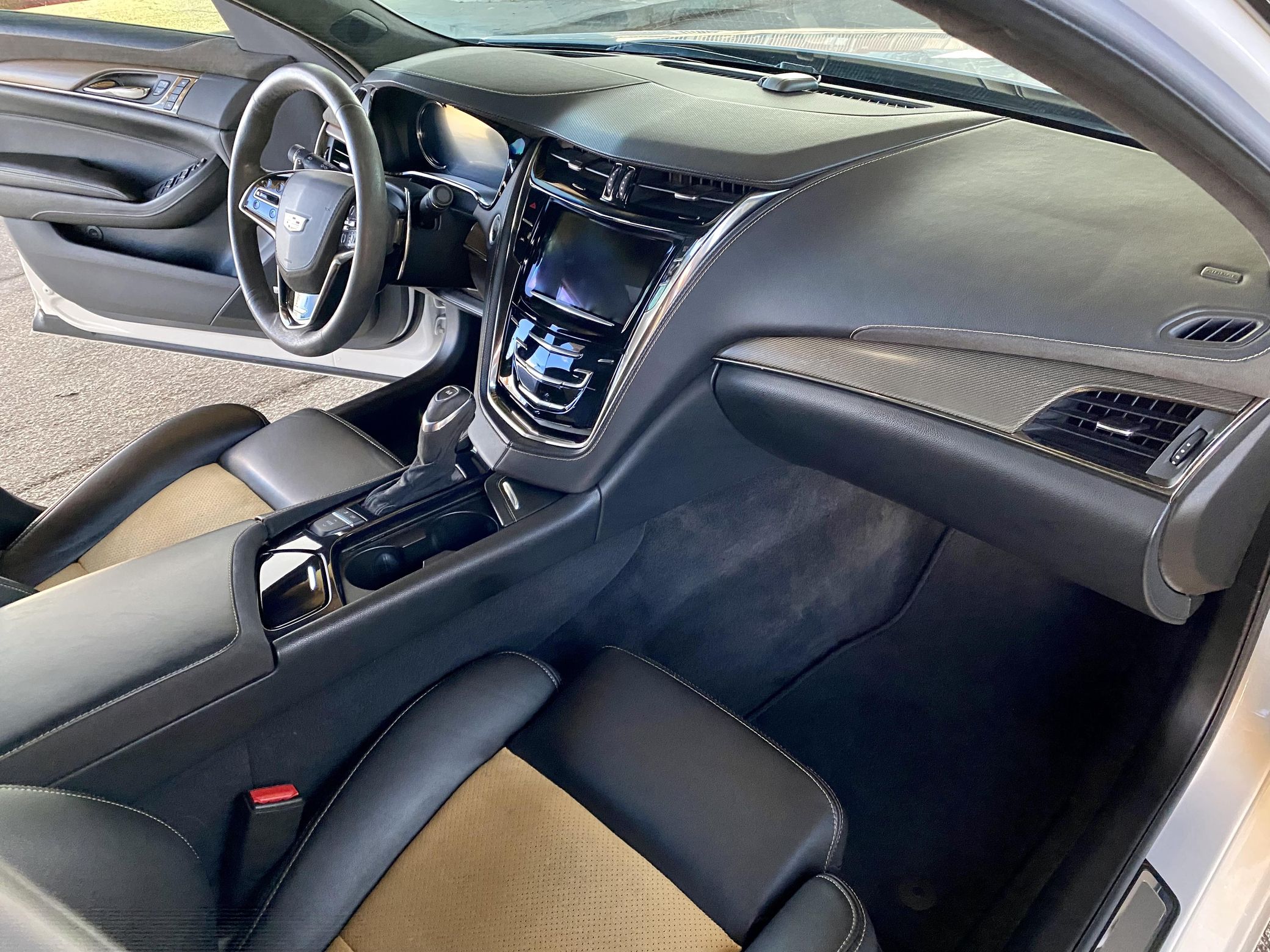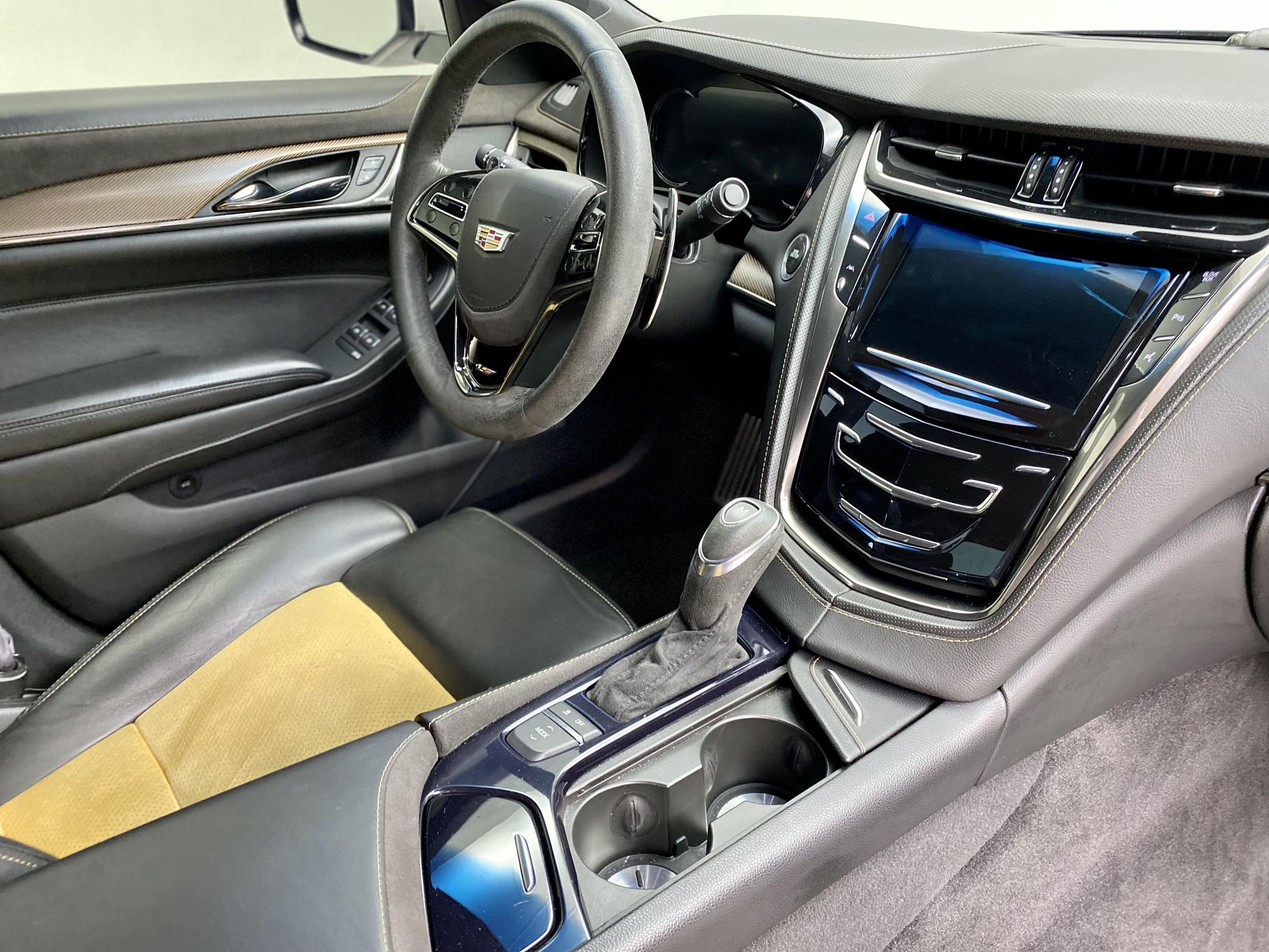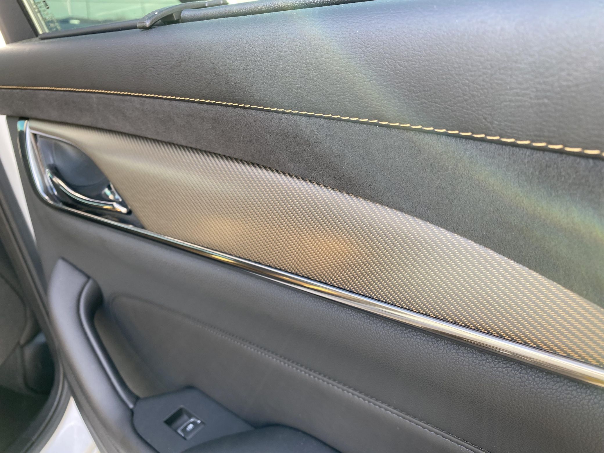 The odometer displays about 26,900 miles. No mileage inconsistencies in this sedan’s past. Factory equipment includes 19-inch wheels, the Magnetic Ride Control suspension system, a Brembo braking system, a carbon fiber hood, carbon fiber interior trim, leather and suede upholstery, heated and ventilated front sport seats, a heated steering wheel, a 12.3-inch digital instrument cluster, a Bose sound system, a wireless device charger, a head-up display, plus front and rear parking sensors. Modifications reported by the seller are limited to black paint on the hood vent, a ceramic tint on the windshield and on the windows, and a hard-wired Escort Passport 9500ci radar detector. The third-generation CTS-V arrived for 2016 as the most powerful series-produced Cadillac ever released. It earned the nickname “four-door Corvette” because it was powered by an “LT4” V8 engine shared with the Corvette Z06, among other models. This decidedly American take on the concept of a high-power sport sedan was praised by enthusiasts and journalists alike for offering excellent performance, surprisingly sharp handling, and an interior that represented a big step forward over the second-generation model. Production ended in 2019, when the CTS was replaced by the CT5. Power comes from a 6.2-liter supercharged V8, rated at 640 horsepower and 630 lb-ft of torque. It spins the rear wheels via an 8-speed automatic transmission linked to a pair of shift paddles.