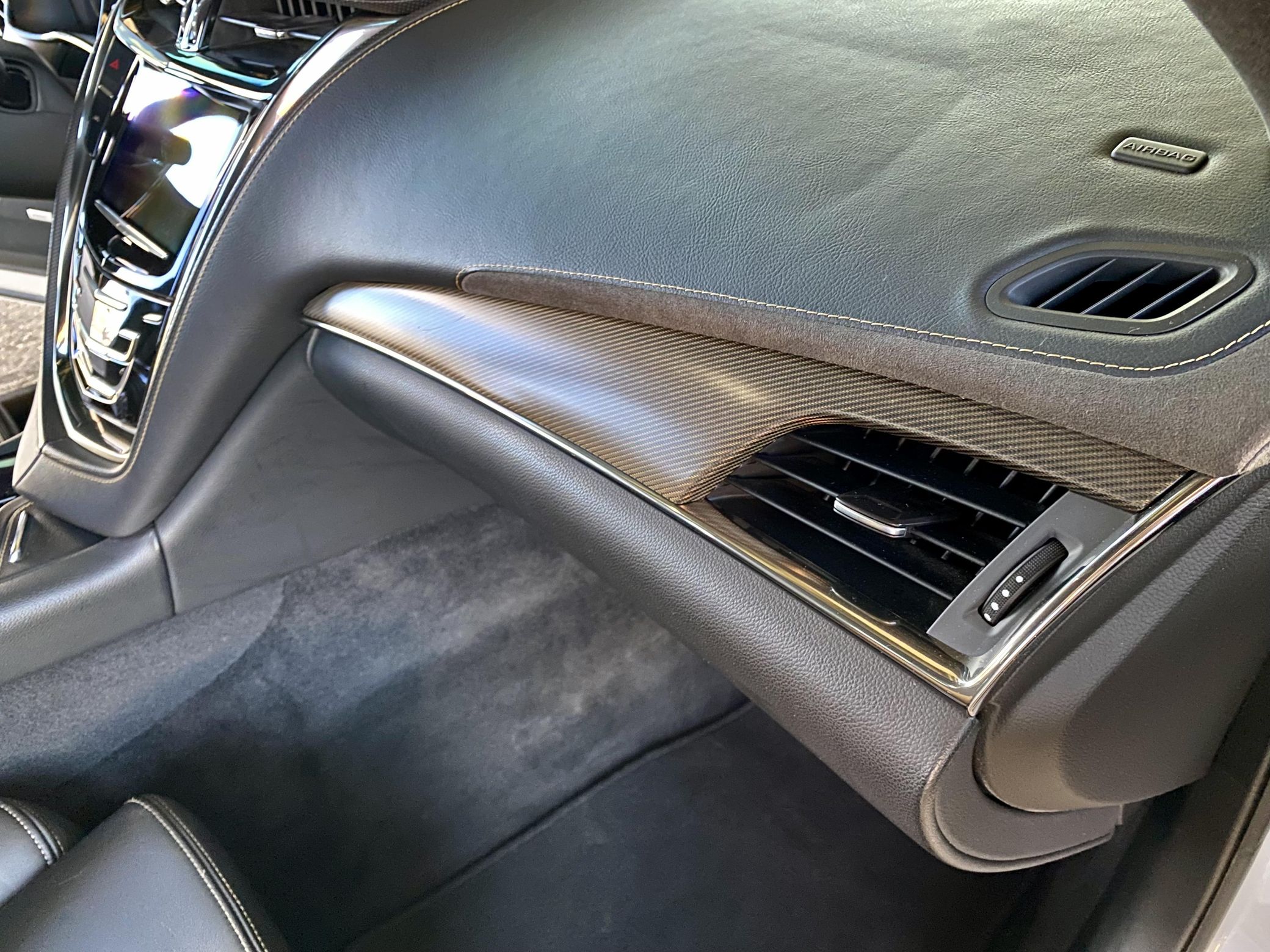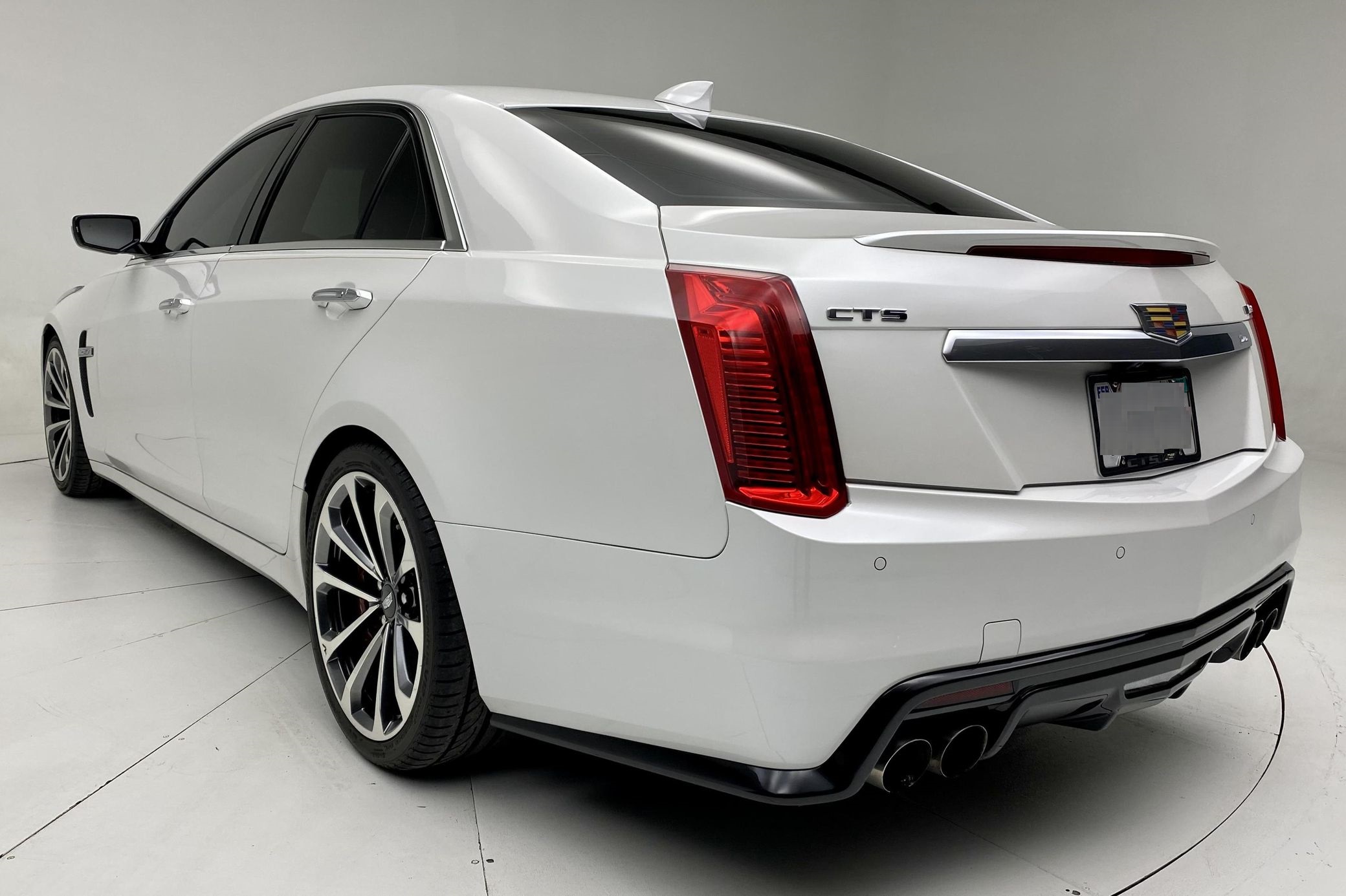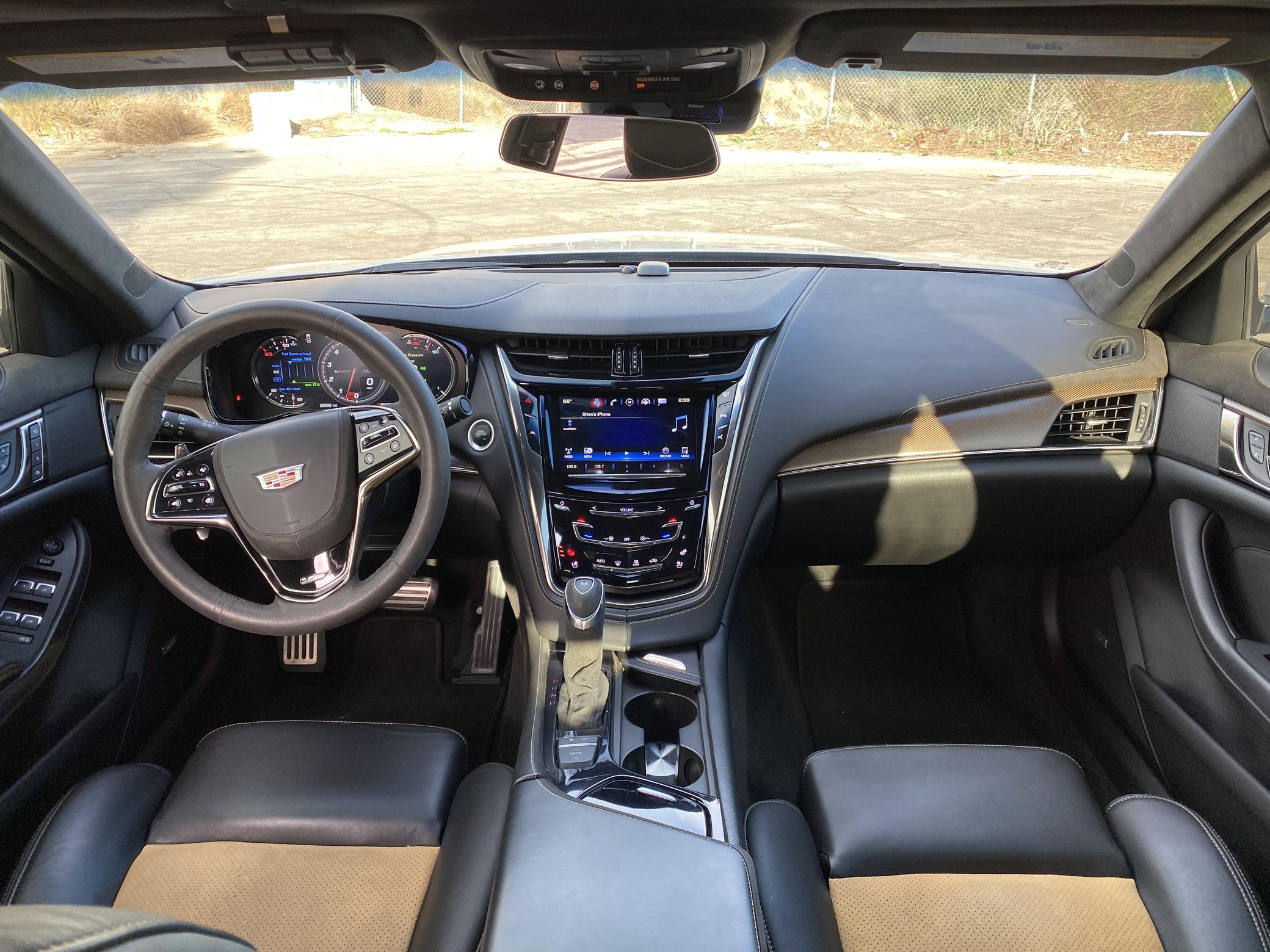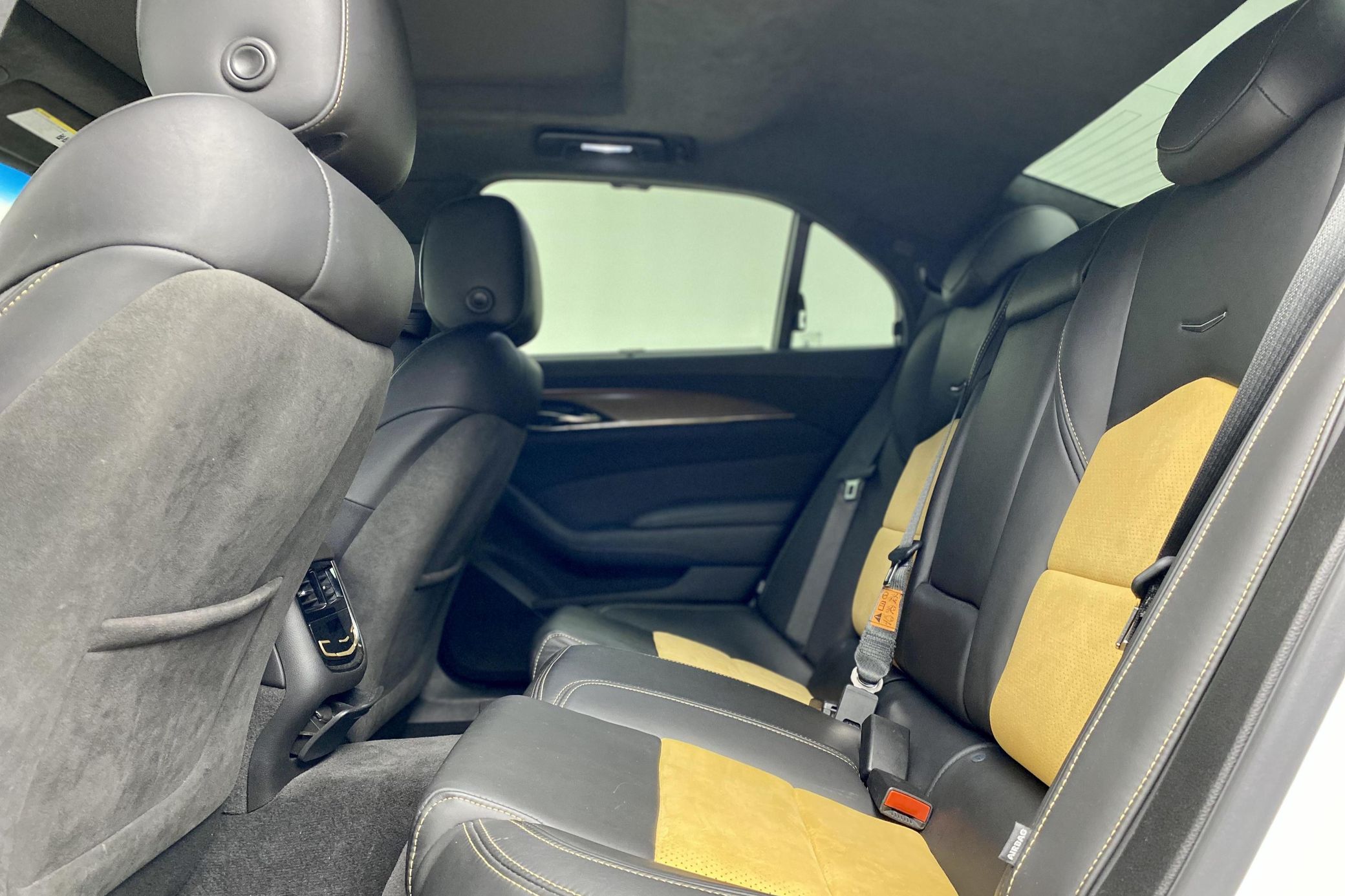 The odometer displays about 26,900 miles. No mileage inconsistencies in this sedan’s past. Factory equipment includes 19-inch wheels, the Magnetic Ride Control suspension system, a Brembo braking system, a carbon fiber hood, carbon fiber interior trim, leather and suede upholstery, heated and ventilated front sport seats, a heated steering wheel, a 12.3-inch digital instrument cluster, a Bose sound system, a wireless device charger, a head-up display, plus front and rear parking sensors. Modifications reported by the seller are limited to black paint on the hood vent, a ceramic tint on the windshield and on the windows, and a hard-wired Escort Passport 9500ci radar detector. The third-generation CTS-V arrived for 2016 as the most powerful series-produced Cadillac ever released. It earned the nickname “four-door Corvette” because it was powered by an “LT4” V8 engine shared with the Corvette Z06, among other models. This decidedly American take on the concept of a high-power sport sedan was praised by enthusiasts and journalists alike for offering excellent performance, surprisingly sharp handling, and an interior that represented a big step forward over the second-generation model. Production ended in 2019, when the CTS was replaced by the CT5. Power comes from a 6.2-liter supercharged V8, rated at 640 horsepower and 630 lb-ft of torque. It spins the rear wheels via an 8-speed automatic transmission linked to a pair of shift paddles.
