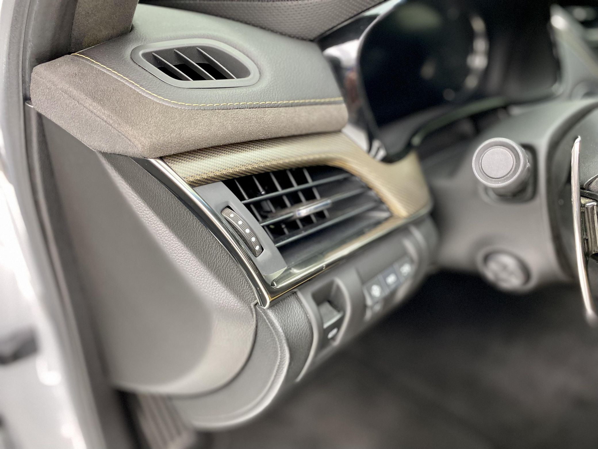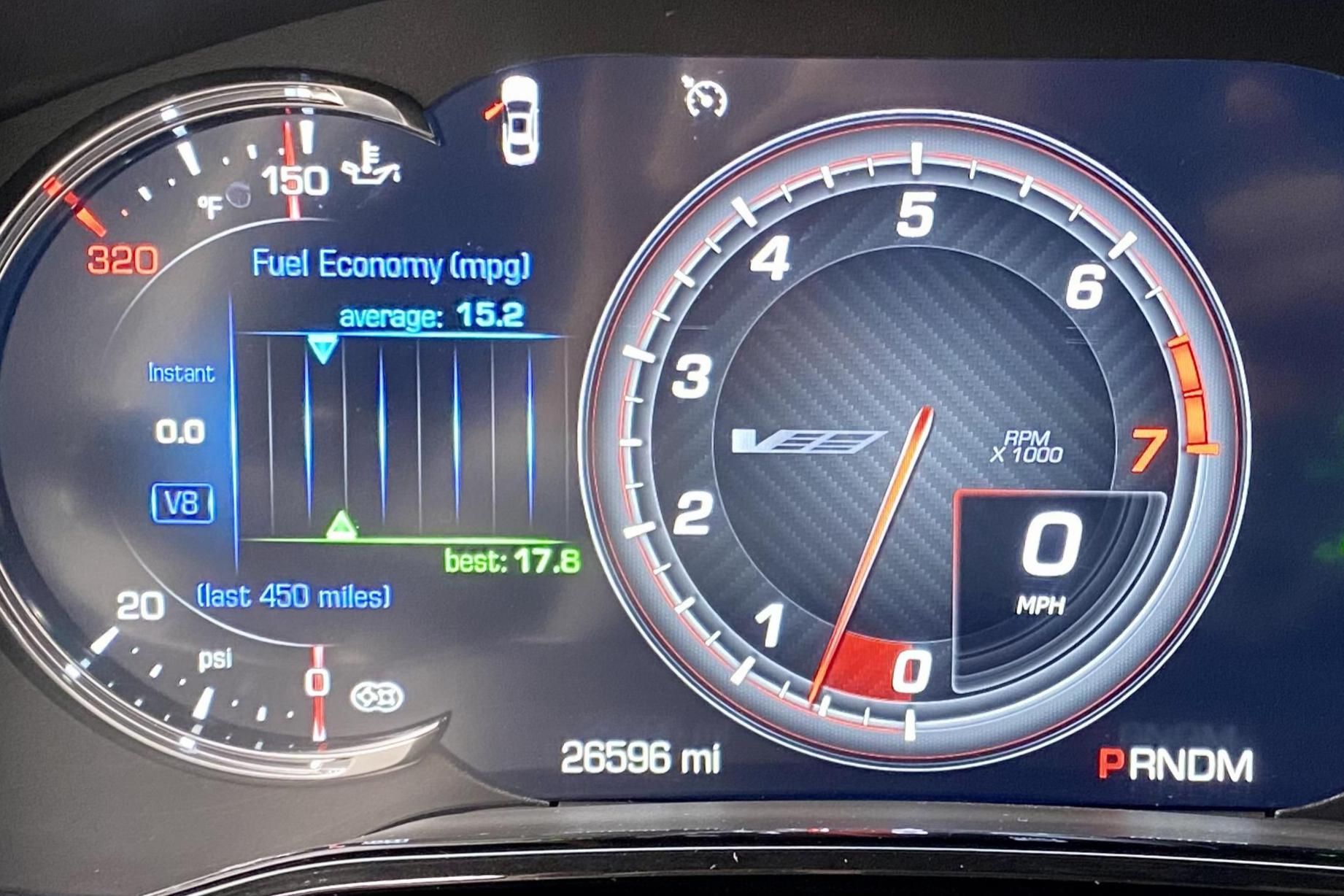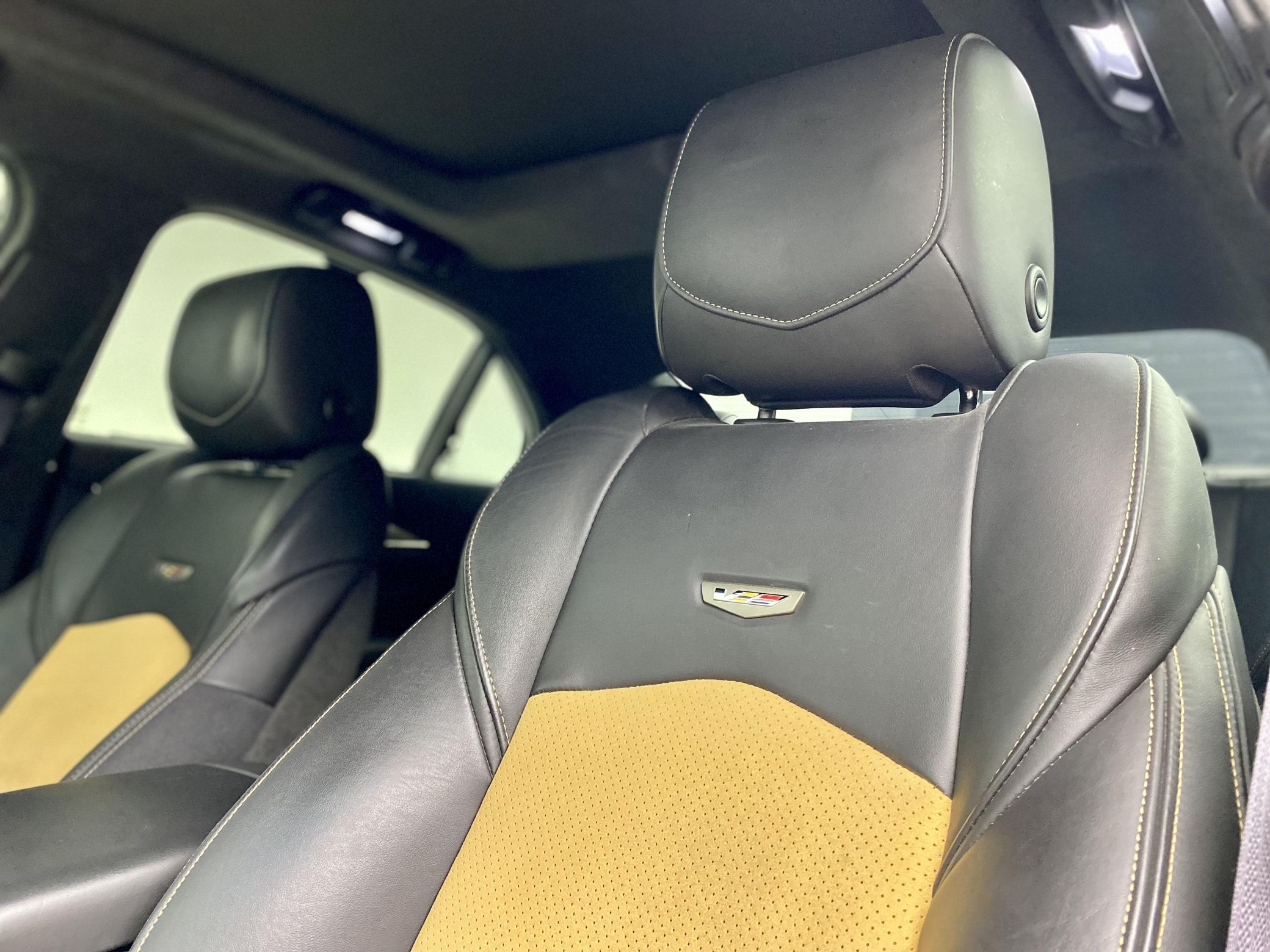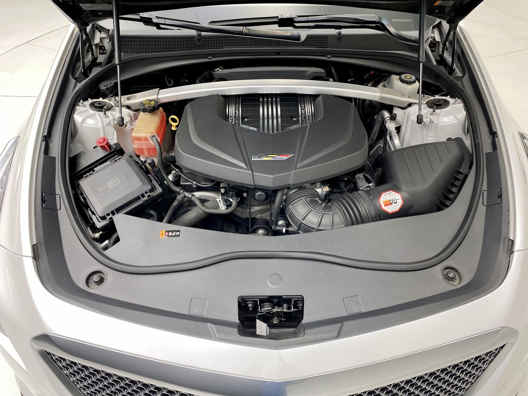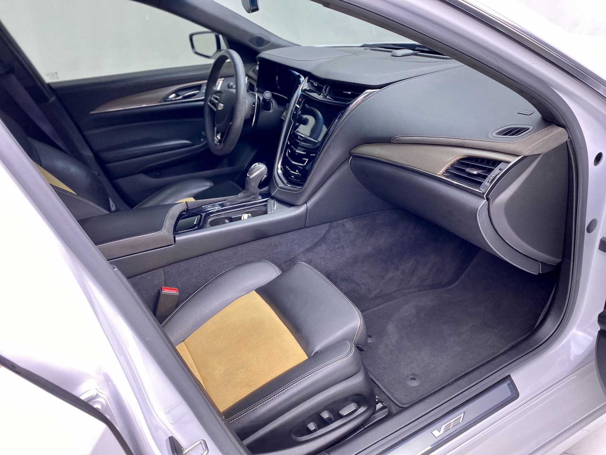 The odometer displays about 26,900 miles. No mileage inconsistencies in this sedan’s past. Factory equipment includes 19-inch wheels, the Magnetic Ride Control suspension system, a Brembo braking system, a carbon fiber hood, carbon fiber interior trim, leather and suede upholstery, heated and ventilated front sport seats, a heated steering wheel, a 12.3-inch digital instrument cluster, a Bose sound system, a wireless device charger, a head-up display, plus front and rear parking sensors. Modifications reported by the seller are limited to black paint on the hood vent, a ceramic tint on the windshield and on the windows, and a hard-wired Escort Passport 9500ci radar detector. The third-generation CTS-V arrived for 2016 as the most powerful series-produced Cadillac ever released. It earned the nickname “four-door Corvette” because it was powered by an “LT4” V8 engine shared with the Corvette Z06, among other models. This decidedly American take on the concept of a high-power sport sedan was praised by enthusiasts and journalists alike for offering excellent performance, surprisingly sharp handling, and an interior that represented a big step forward over the second-generation model. Production ended in 2019, when the CTS was replaced by the CT5. Power comes from a 6.2-liter supercharged V8, rated at 640 horsepower and 630 lb-ft of torque. It spins the rear wheels via an 8-speed automatic transmission linked to a pair of shift paddles.