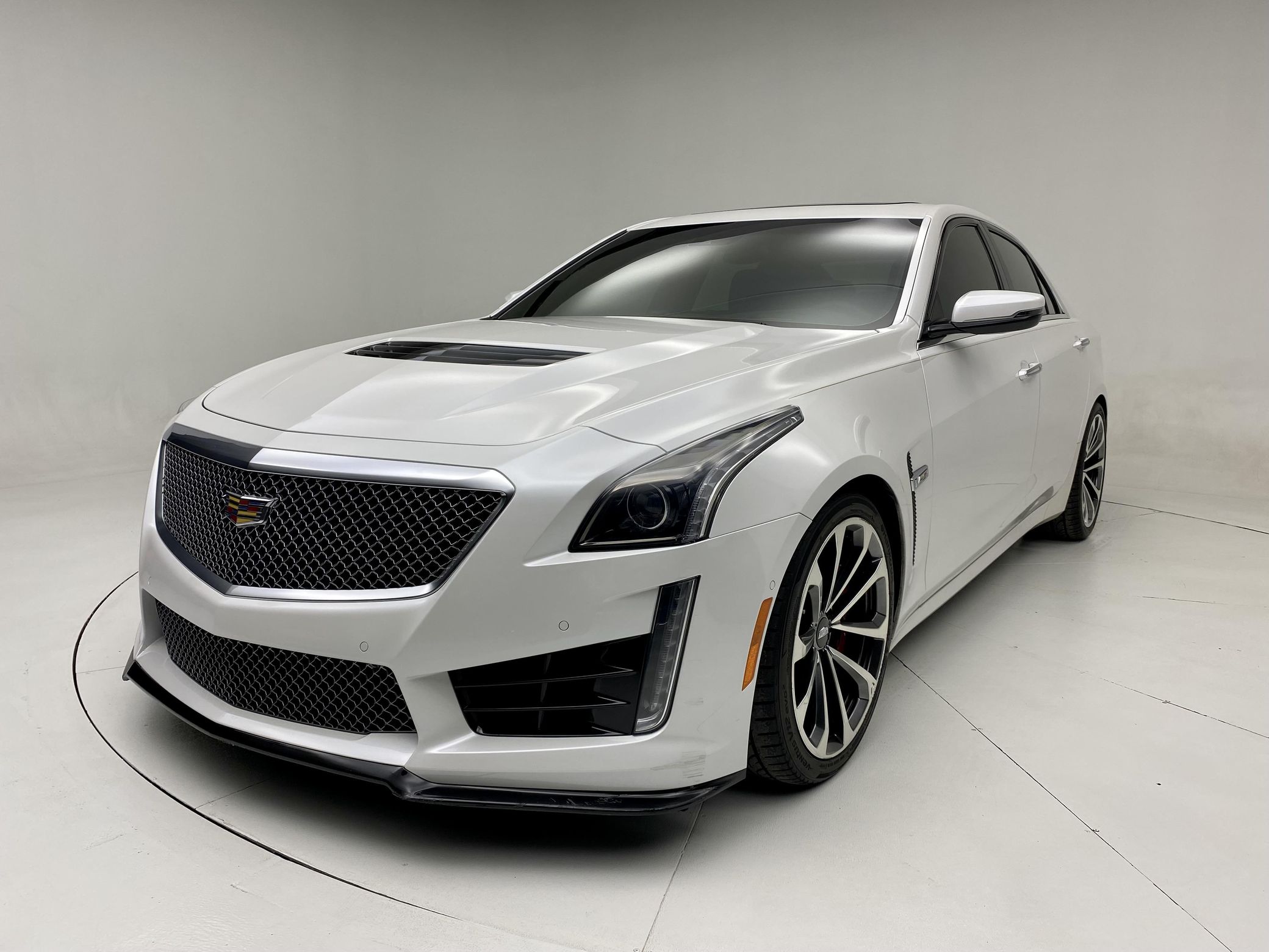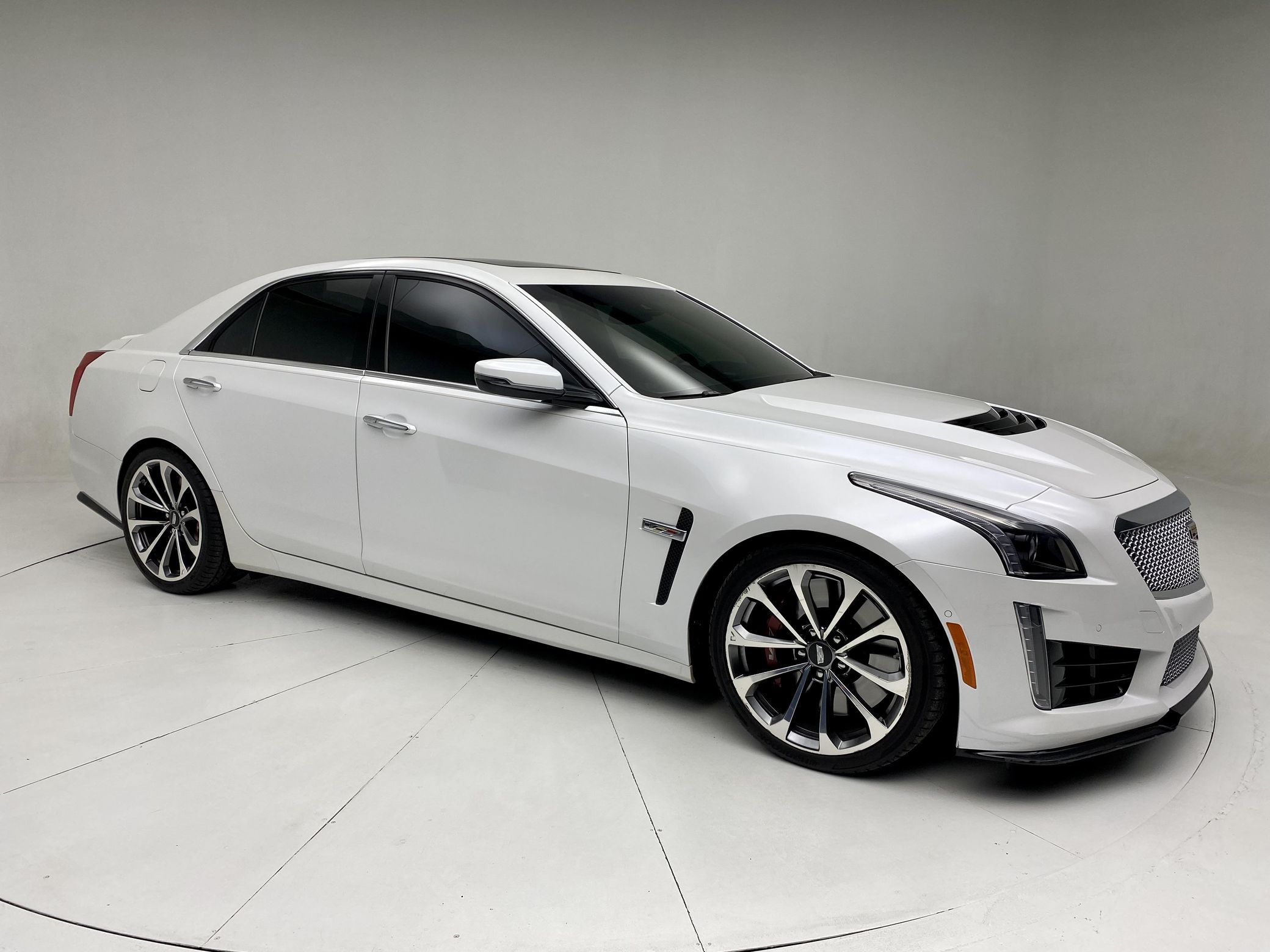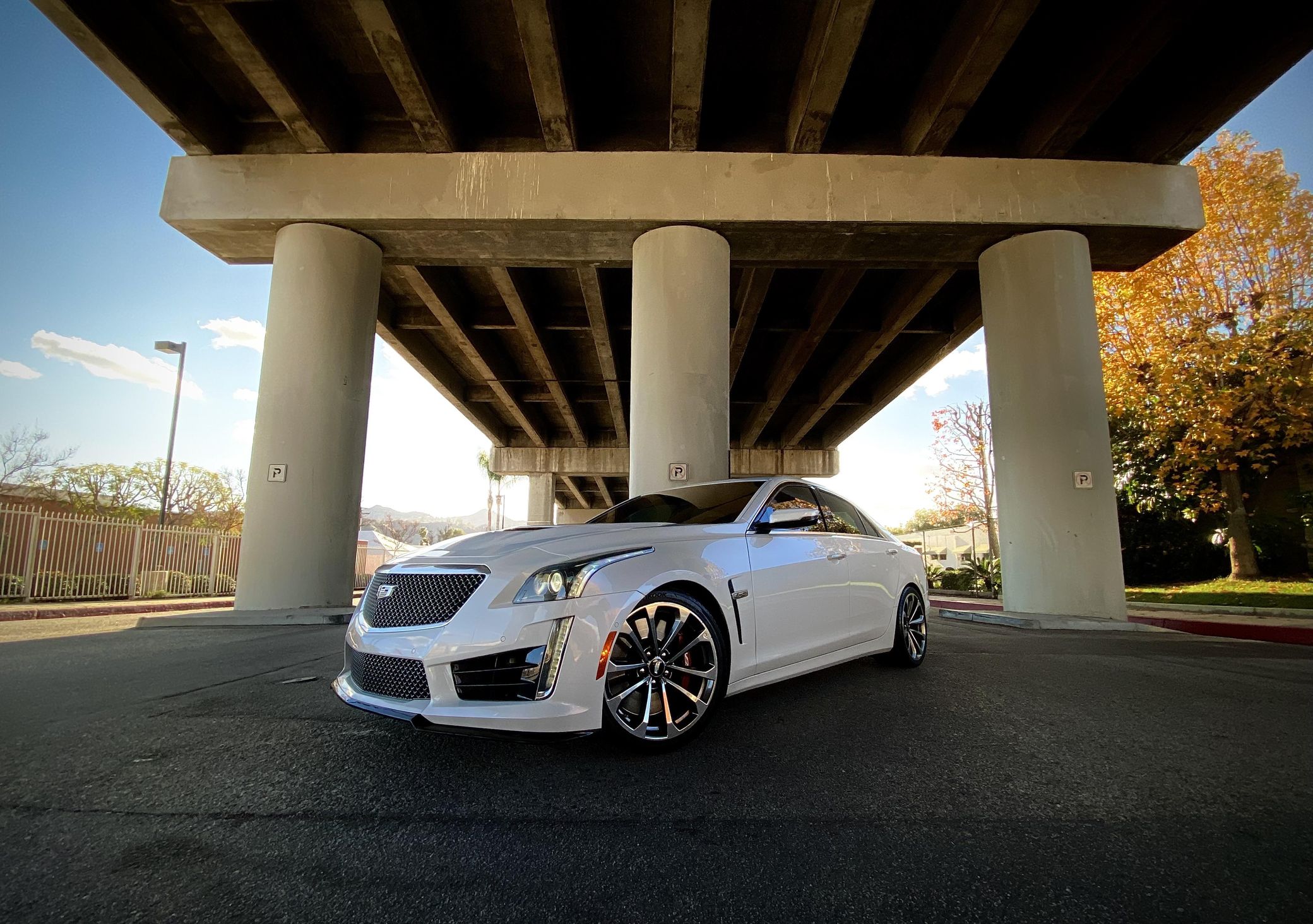 THIS… is a 2016 Cadillac CTS-V, finished in White Frost with a Jet Black and Saffron interior.