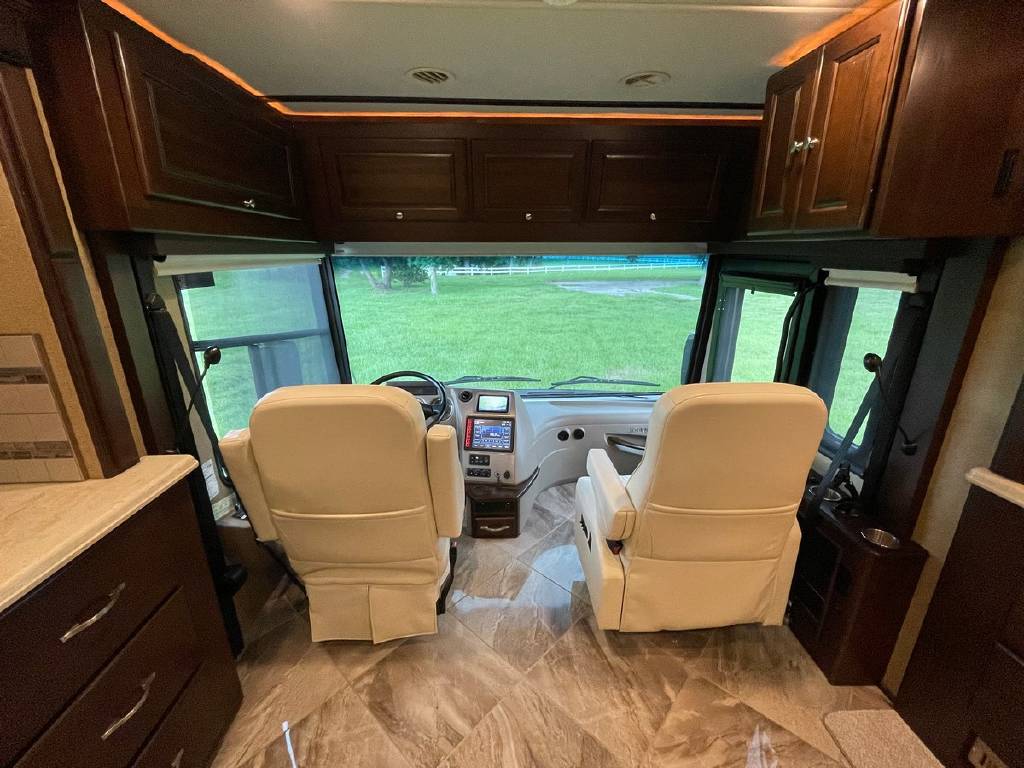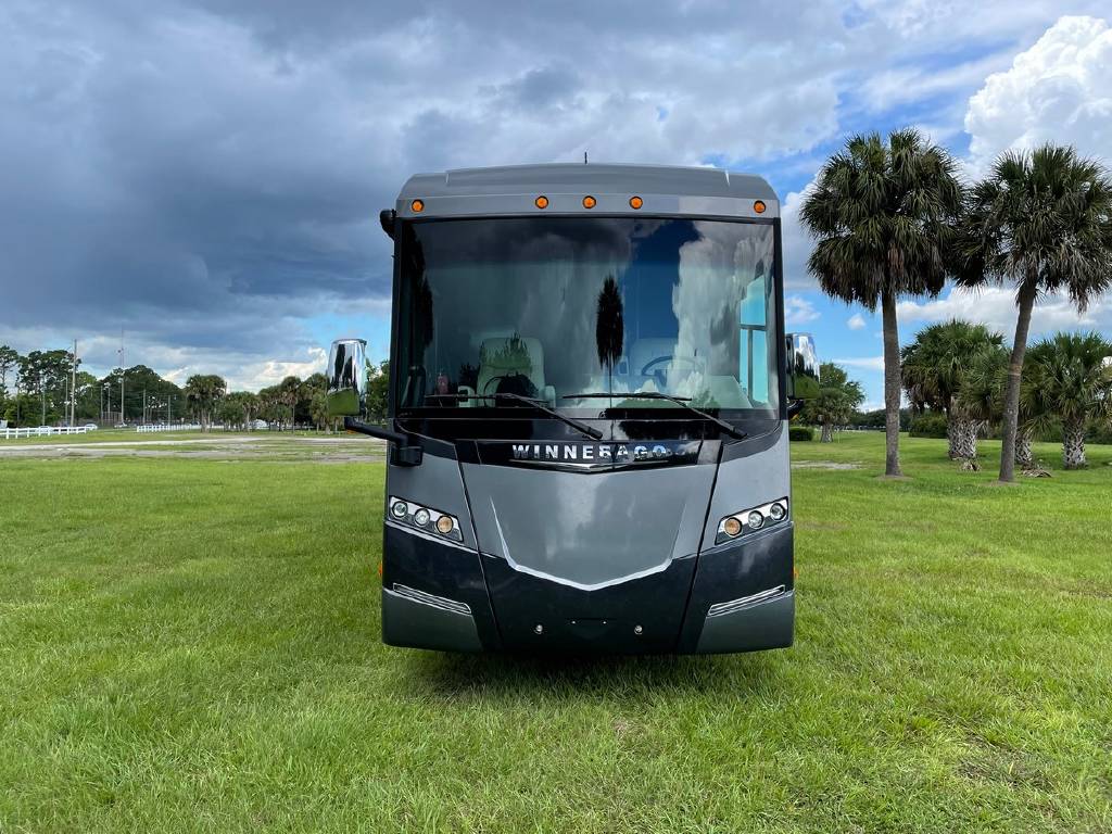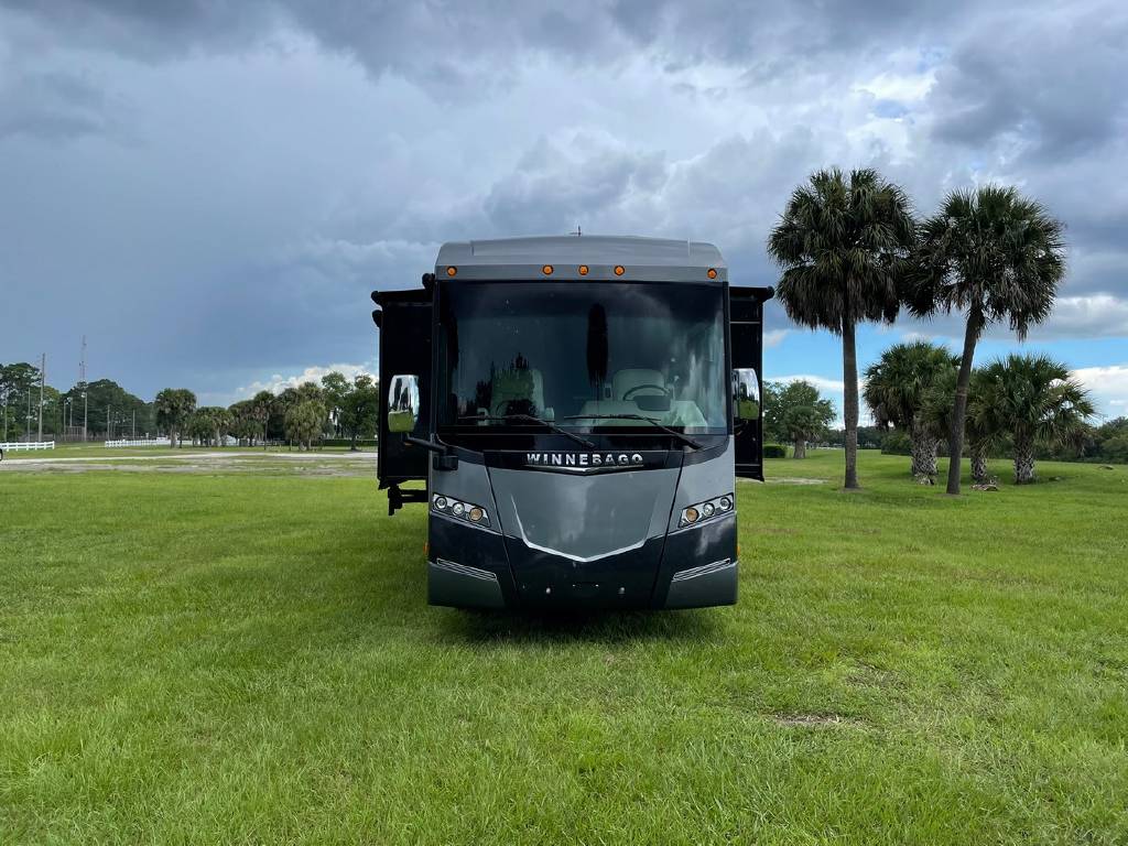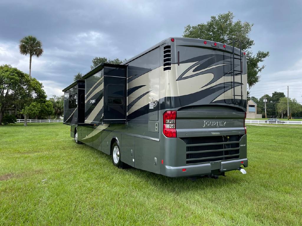 2016 Winnebago Journey 40R 3 slide motorhome with 53,223 miles. This couch is on a Maxum chassis powered by a 400-hp Cummins ISL 8.9L turbocharged diesel engine with Allison transmission. This coach has everything including Ultraleather ‘Rest Easy’ extendable sectional sofa, a massive HDTV with home theater soundbar, Glide & Dine dining table, fireplace, residential stainless steel French door refrigerator, microwave/convection oven, bath and a half, stackable washer/dryer, King size bed comfort control mattress, touch screen navigation and more!!!