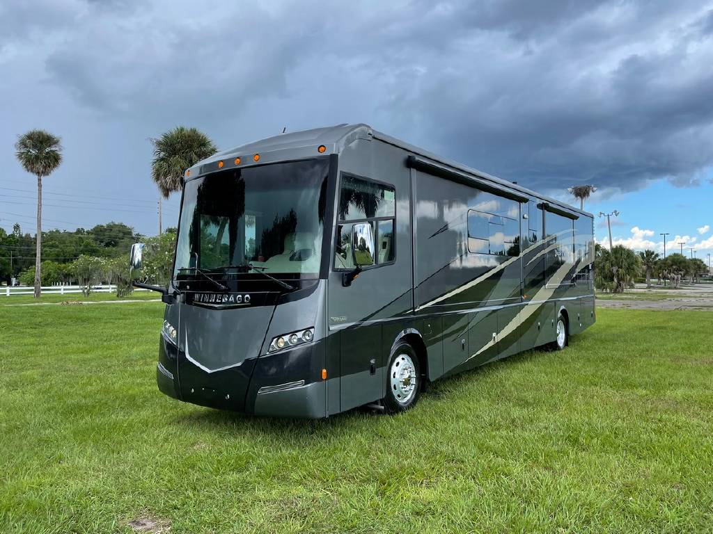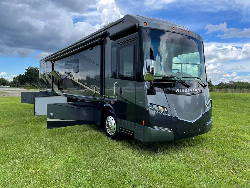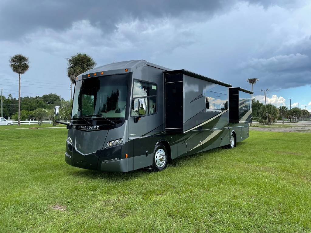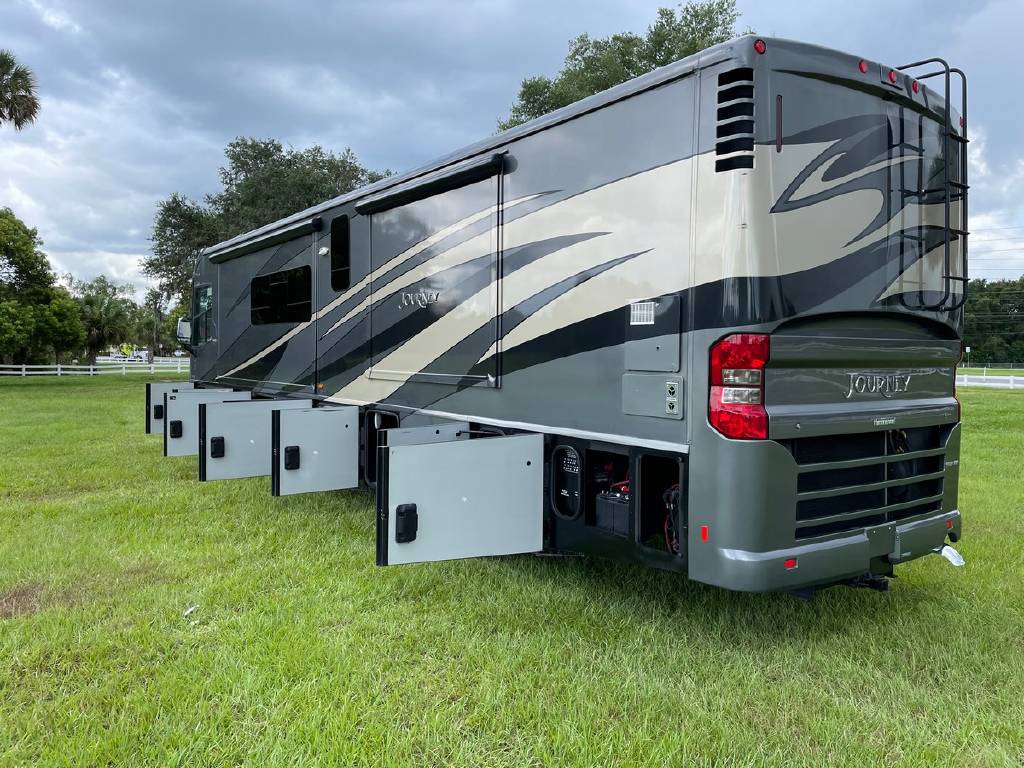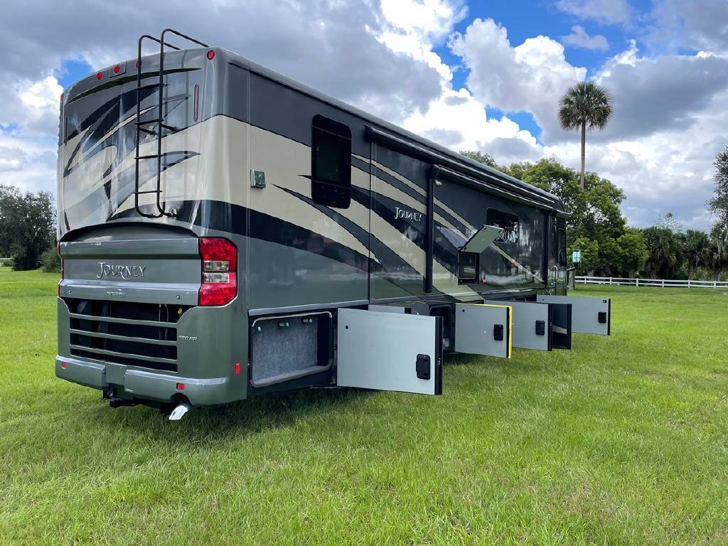 2016 Winnebago Journey 40R 3 slide motorhome with 53,223 miles. This couch is on a Maxum chassis powered by a 400-hp Cummins ISL 8.9L turbocharged diesel engine with Allison transmission. This coach has everything including Ultraleather ‘Rest Easy’ extendable sectional sofa, a massive HDTV with home theater soundbar, Glide & Dine dining table, fireplace, residential stainless steel French door refrigerator, microwave/convection oven, bath and a half, stackable washer/dryer, King size bed comfort control mattress, touch screen navigation and more!!!
