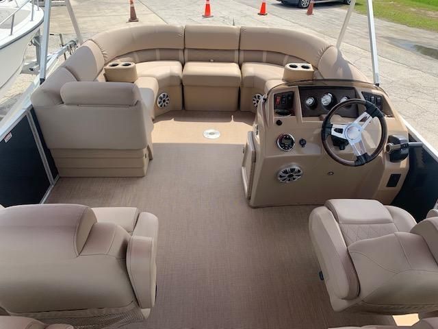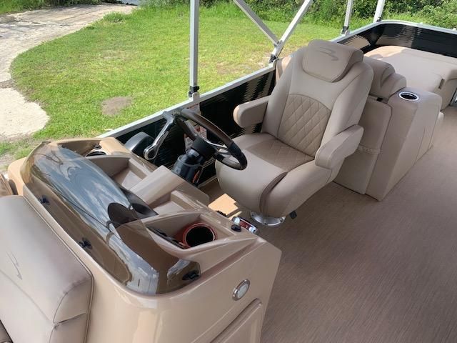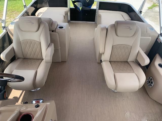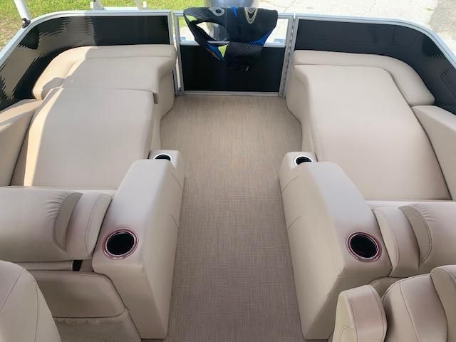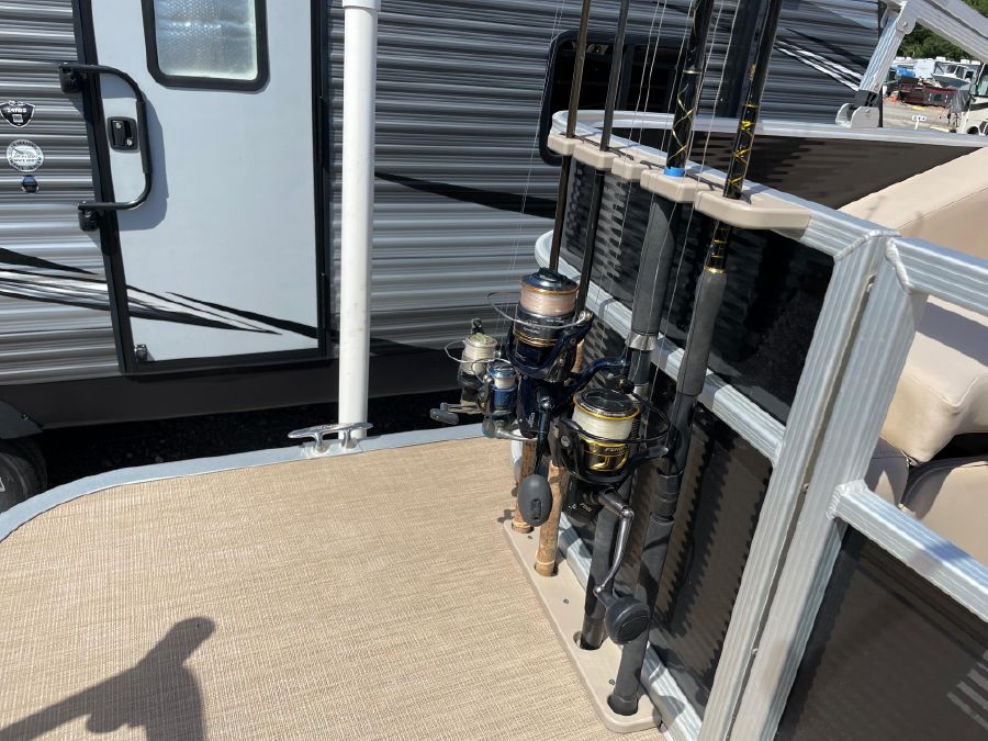 Being a Tritoon (3 hulls) keeps you floating higher in the water, and allows it to handle more horsepower than a typical pontoon, which makes it great for tubing, wake boarding, etc…