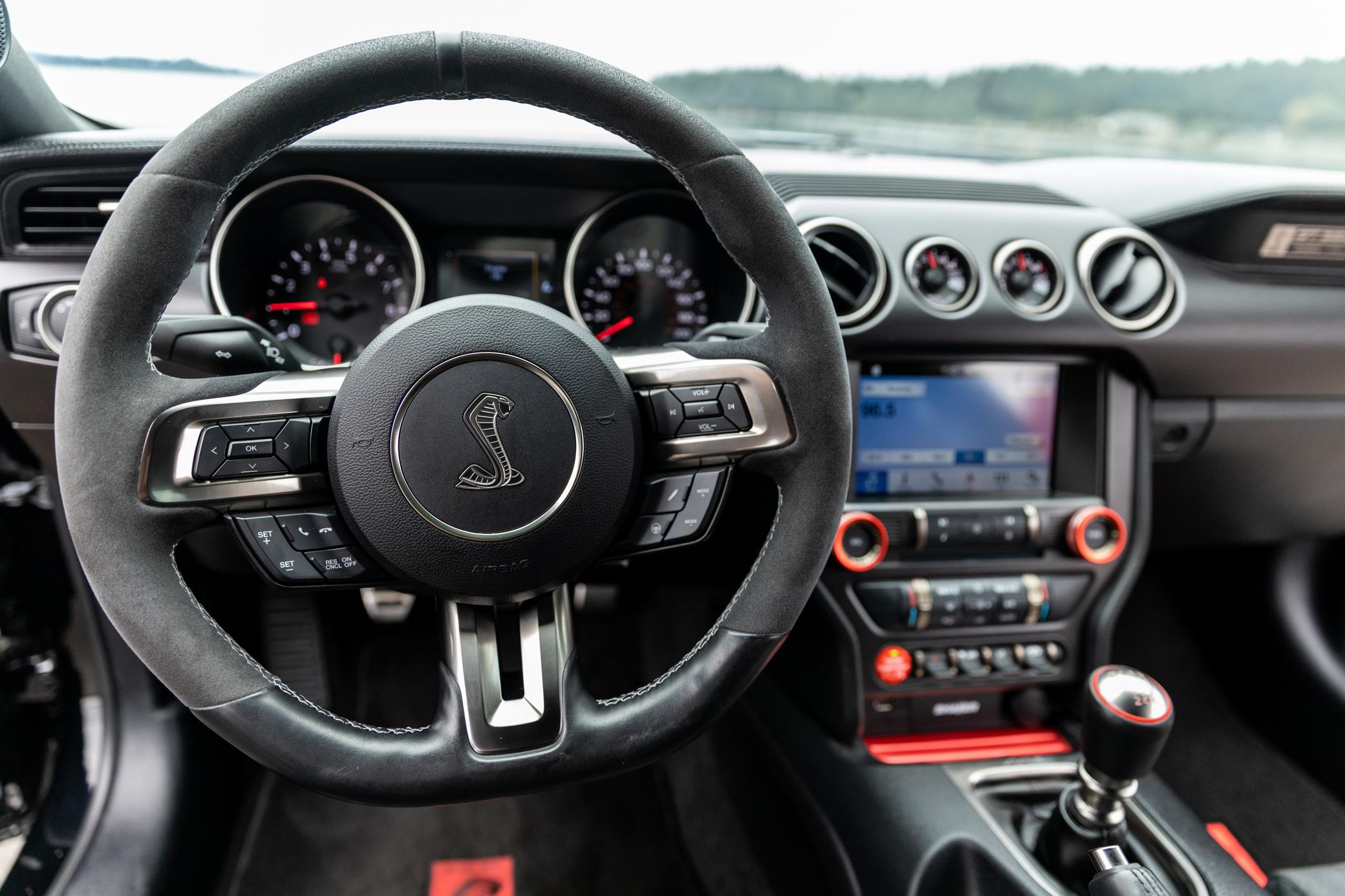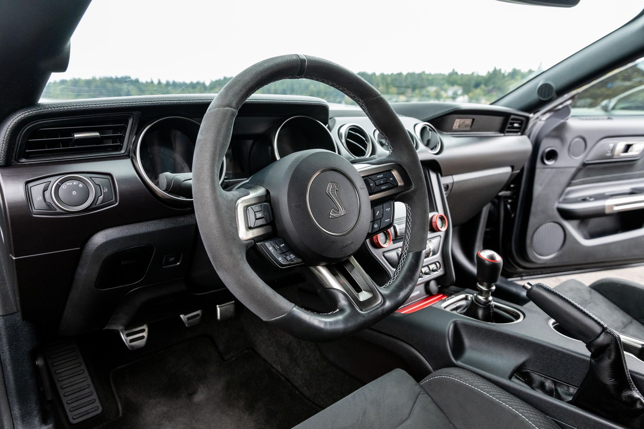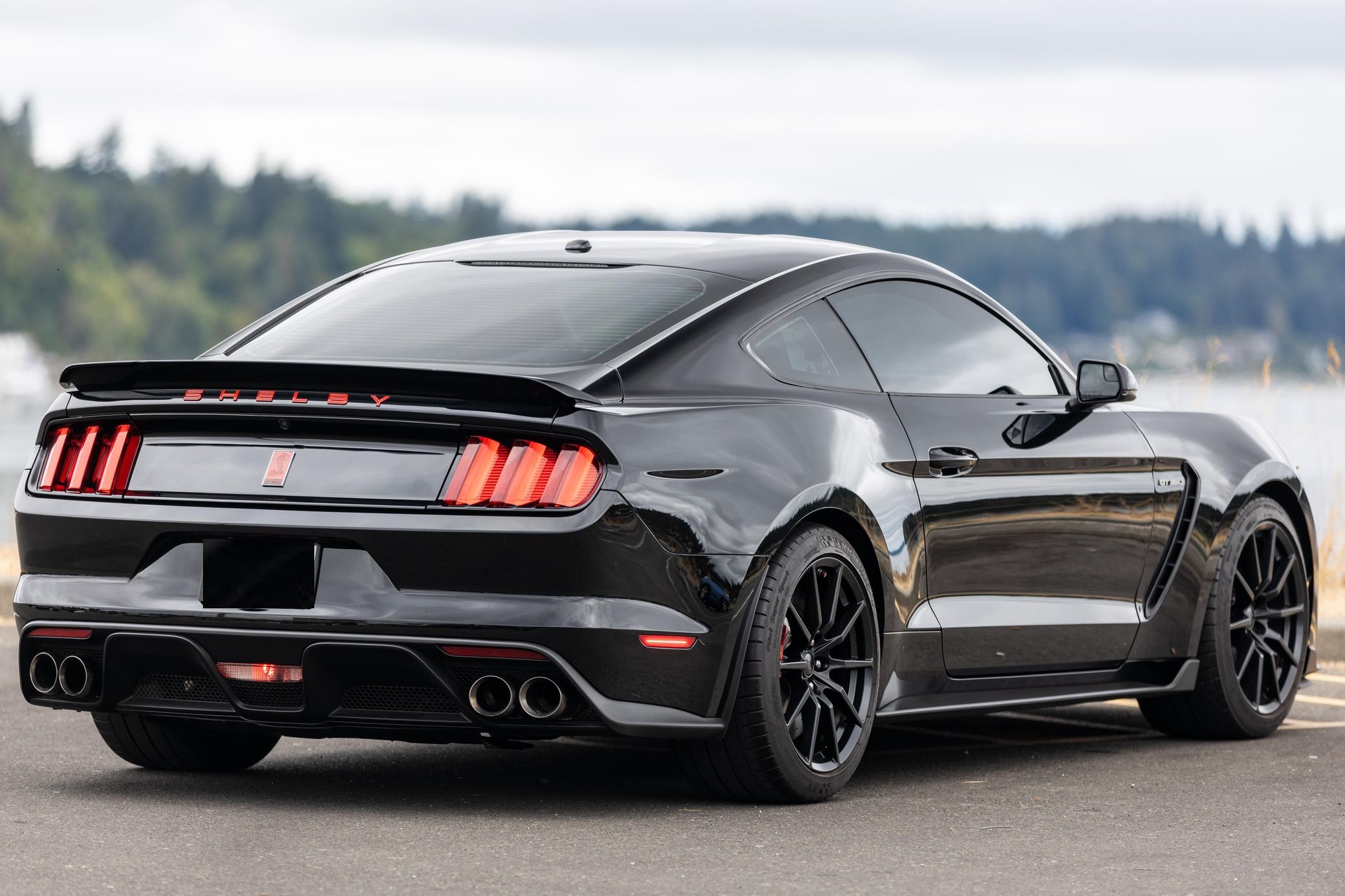THIS… is a 2017 Ford Mustang Shelby GT350, finished in Shadow Black with an Ebony leather and Miko suede interior. No accidents; it also shows that this GT350 has been registered to a single owner in Washington since new. It came equipped with the Electronics Package, as well as 19-inch wheels, vented brake rotors with Brembo calipers, Alcantara-wrapped steering wheel, launch control, Magneride dampers, Recaro sport seats, remote keyless entry, a Torsen differential, and more as detailed below. The seller reports a handful of cosmetic modifications, including red-painted brake calipers, 18% window tint, and an R-spec front grille. The track-oriented Shelby GT350 variant of the “S550” Ford Mustang is notable for its “Voodoo” V8 engine which employs a flat-plane crank and a unique crankpin configuration and firing order. It also has upgraded aerodynamics, a revised suspension, and various lightweight components that result in a highly competent muscle car. Power comes from a 5.2-liter Voodoo V8 engine, which produces 526 horsepower and 429 lb-ft of torque. Output is sent to the rear wheels via a 6-speed manual transmission.
