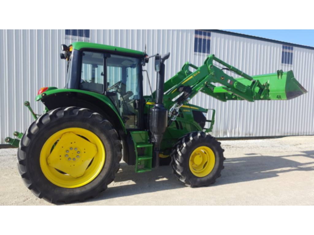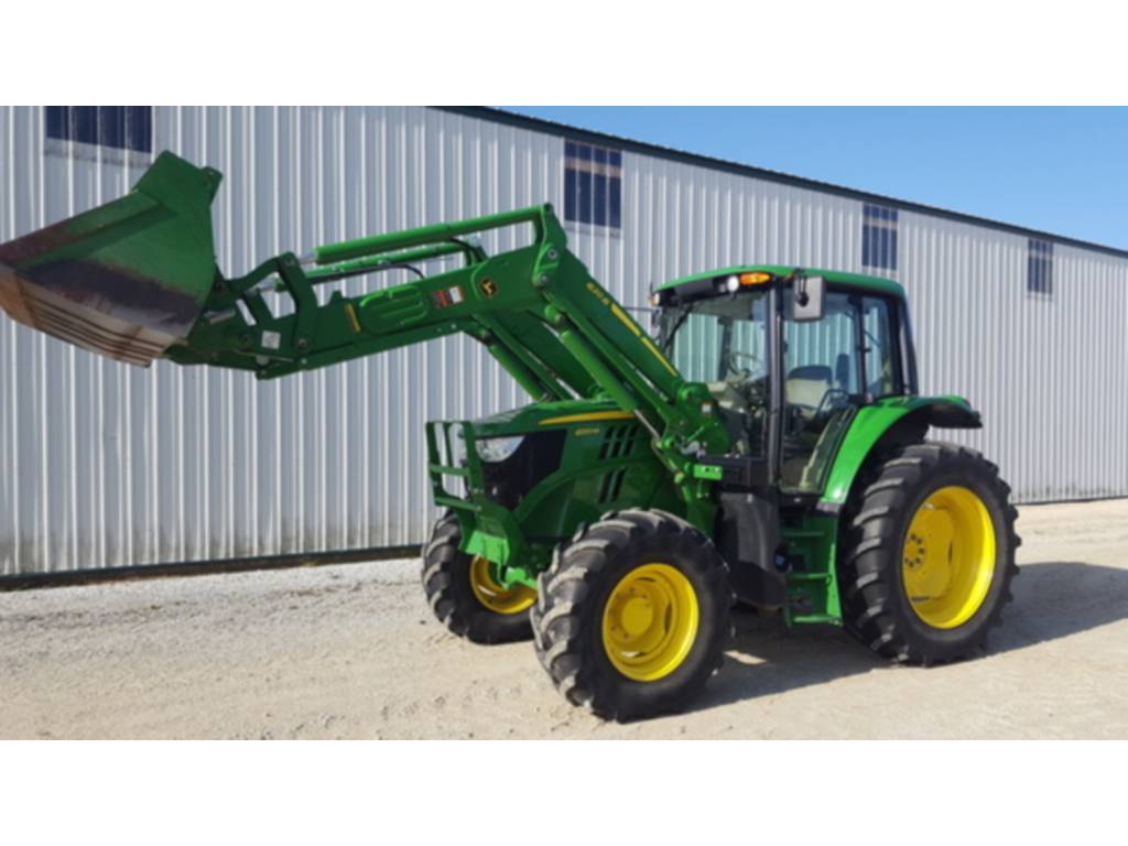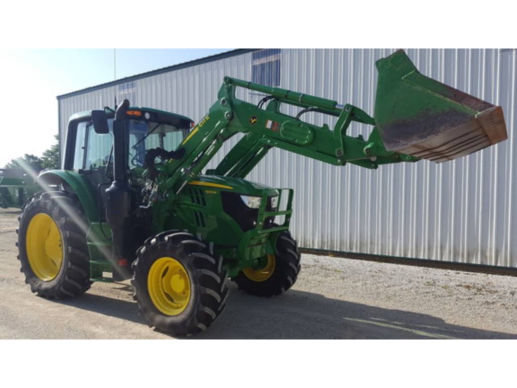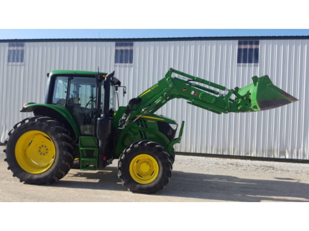 2017 John Deere, 6120M, utility_tractors, Configuration: Standard, Cab: Cab, Transmission: Partial Power Shift, Guidance-ready: No, Front Axle: MFWD, Tire Width: Mid, Loader: Yes, Rear PTO: 540/1000, PowrQuad Plus – 24/24, 40 km/h, Economy Cab, Economy Seat, Mirrors – Left-hand and Right-hand Manual Telescopic, Panorama Front Windshield, Radio (Business Radio Package), Hydraulic Pump – 114 l/min, 2 Mechanical SCVs (2 SCV 450 Series), Rear Independent 540/1000rpm PTO, Draft Links with Telescopic Ball End – Category 3N / Category 3, Center Link with Ball End – Category 3, Sway Control Blocks, Flange-Type Rear Axle, Adjustable Steel Wheels (Steel Disk), Rear Wheels Size 480/70R38, Rear and Front Tire Brand – Firestone, 4WD Front Axle – Unsuspended, Front Wheels Size 420/70R24, Shipment Preparation – by Ship Overseas, Toolbox, Cold Start Package I, PTO Remote Control, Rear Hitch Remote Control, Light Package – Economy, Alternator 14V/200A, Battery 12V/174AH, Powerfill Brake, Loader Ready Package – Mechanical SCV, 2 Functions, , JD 6120M MFWD W/ 620R LOADER.
