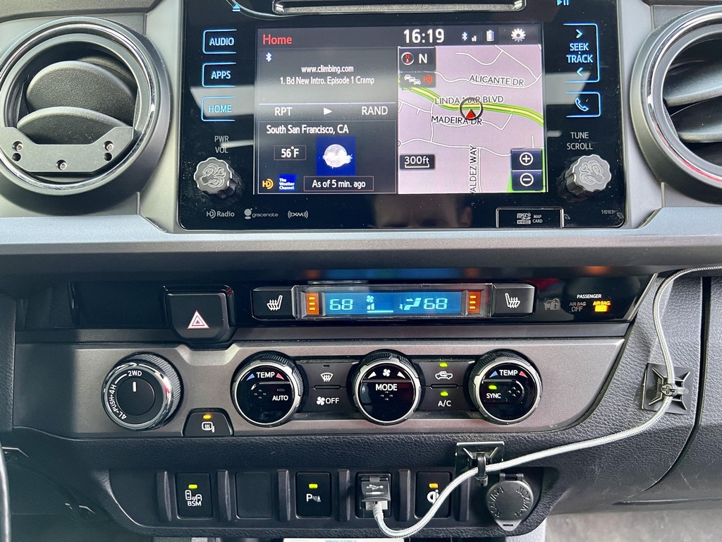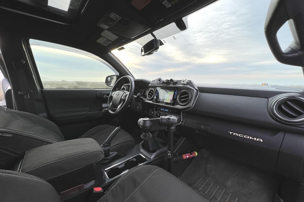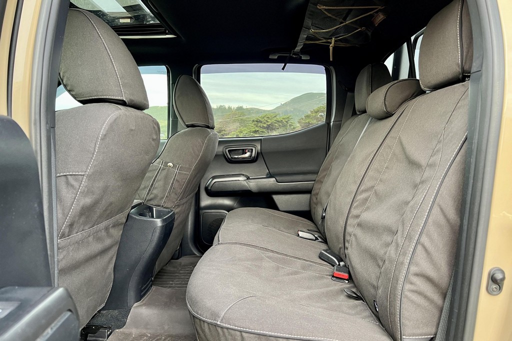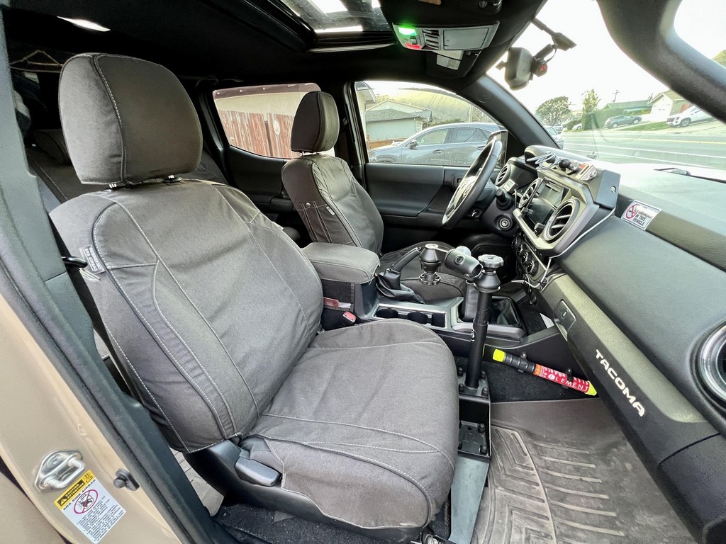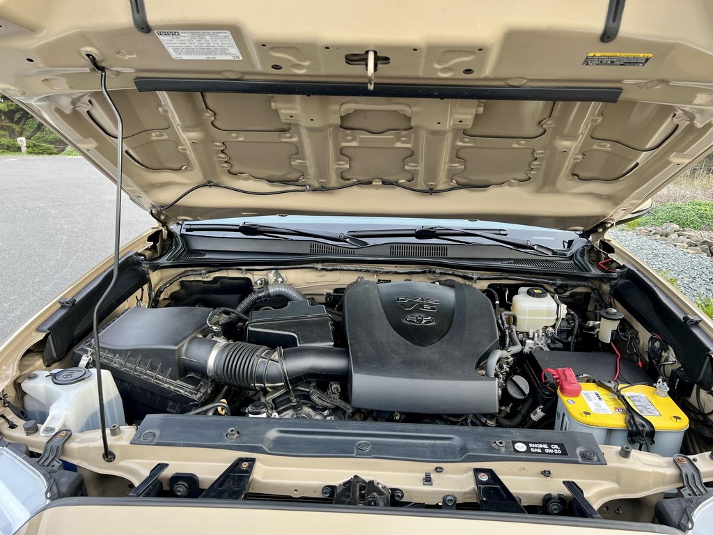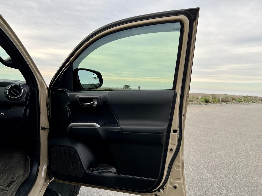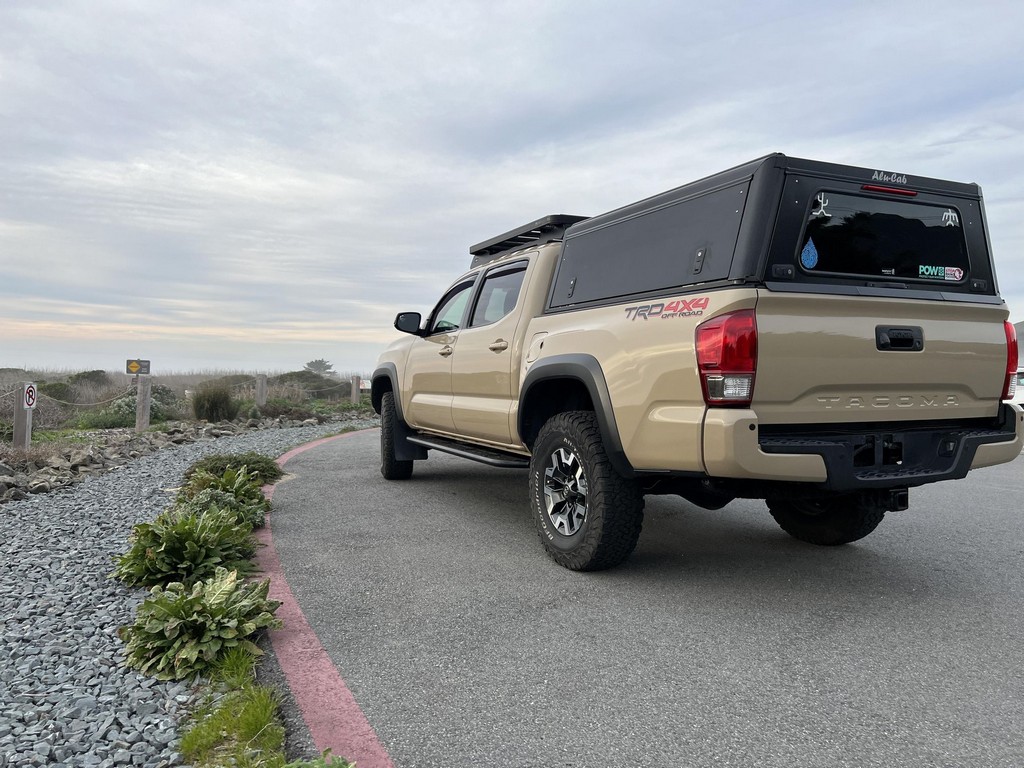 THIS… is a 2017 Toyota Tacoma TRD Off-Road Double Cab, finished in Quicksand with a black interior.The attached Carfax vehicle history report lists no accidents or mileage discrepancies in this Toyota’s past. This Tacoma came equipped with the Premium and Technology package, which adds features such as heated front seats, a wireless smartphone charging station, and a blind-spot monitor. Additional features include a locking rear differential with A-TRAC, off-road-tuned suspension, an Entune premium audio/navigation system, and more as detailed below. Some highlights include an Alu-Cab Explorer III bed canopy, Toytec Lift rear add-a-leaf kit, Timbren active off-road bump stops, Total Chaos bedside reinforcement braces, and an OVTune 91 octane ECU tune. Introduced in 2015, the third-generation Tacoma came equipped with an optional Atkinson cycle V6 engine utilizing Variable Valve Timing with intelligence (VVT-i), which replaced Toyota’s previous VVT system. The third-generation “Taco” also featured updated styling, a more comfortable interior, and a more rigid high strength steel frame. Power for this Tacoma comes from a “2GR-FKS” 3.5-liter V6 engine, rated at 278 horsepower and 265 lb-ft of torque. Due to the tune added to this Taco, it may produce more power, but a dyno sheet was not provided to confirm. Output is sent to all four wheels via a 6-speed manual transmission.