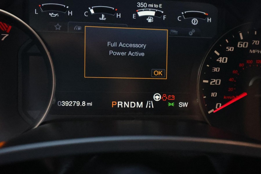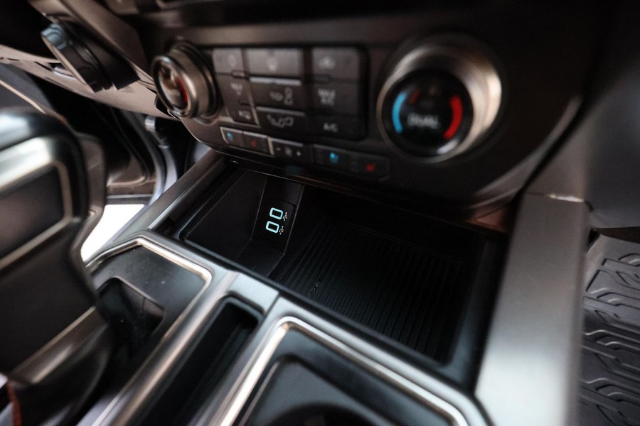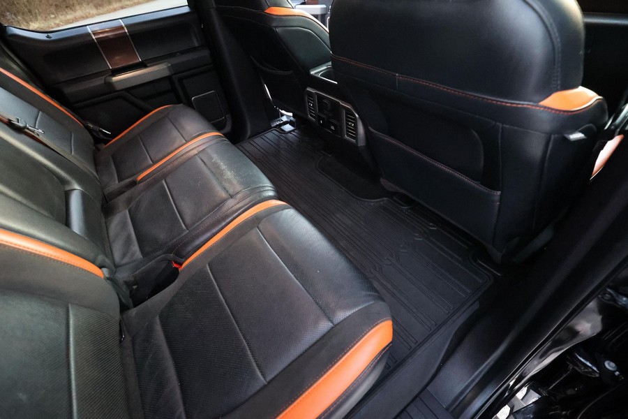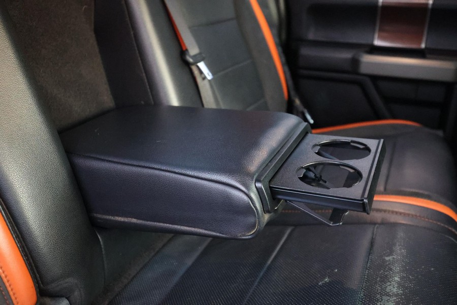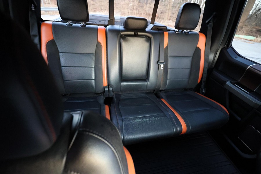 Equipment Group 802A (4.10 front axle with Torsen differential, LED lighting in the cargo box, LED spotlights integrated into the mirrors, remote engine starter, heated steering wheel, power-sliding rear window, automatic climate control, inflatable rear seat belts, B&O Play sound system, Sync 3 infotainment system, navigation system, 360-degree camera, pro trailer back-up assist, and blind-spot information system with trailer tow monitoring)