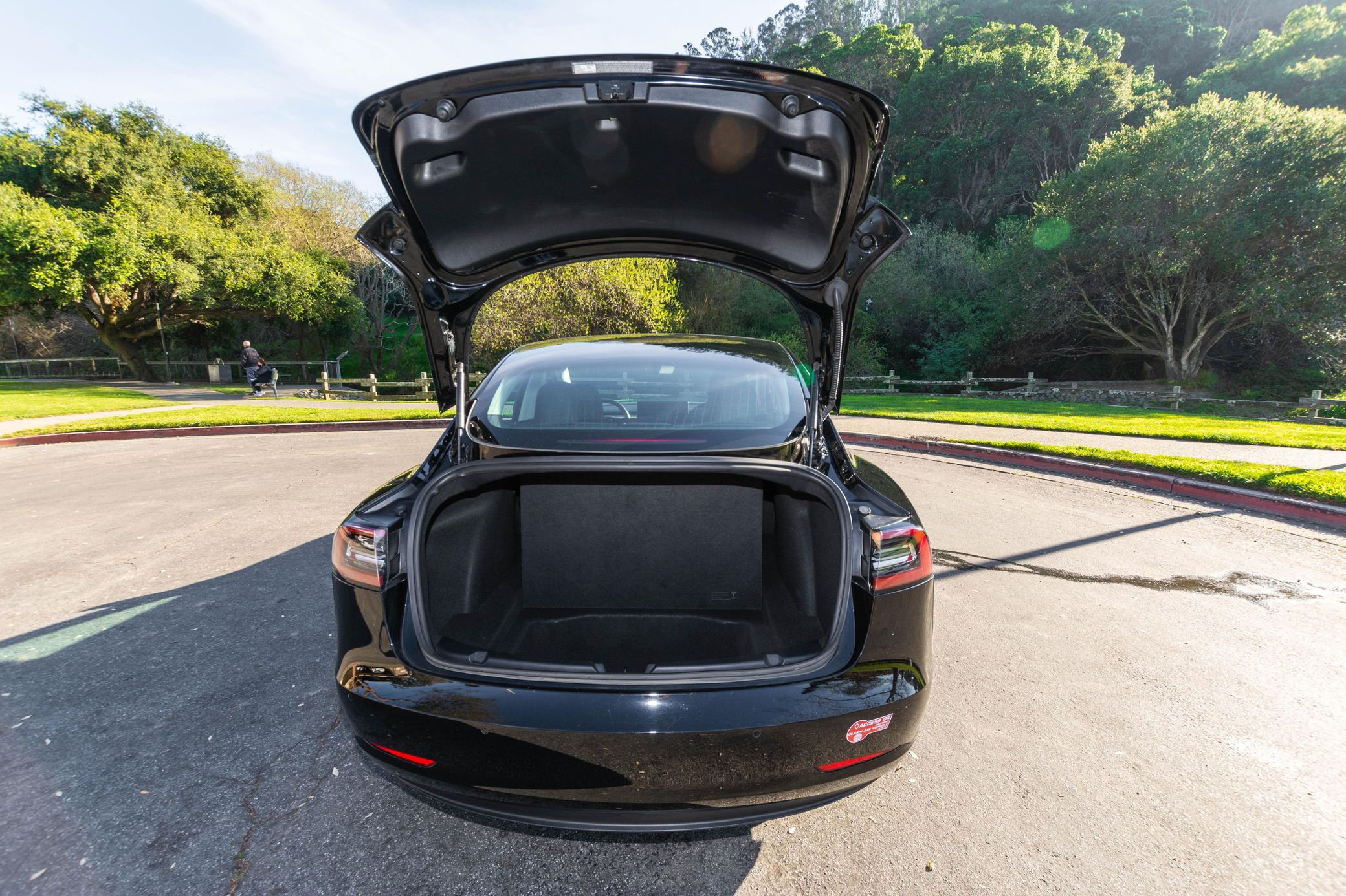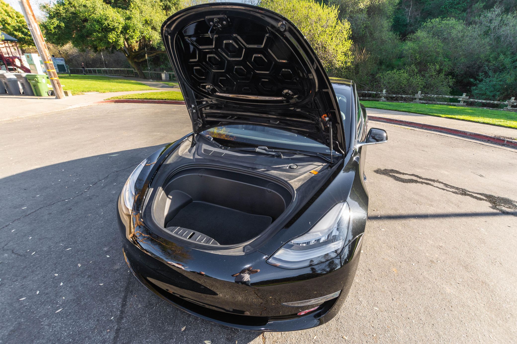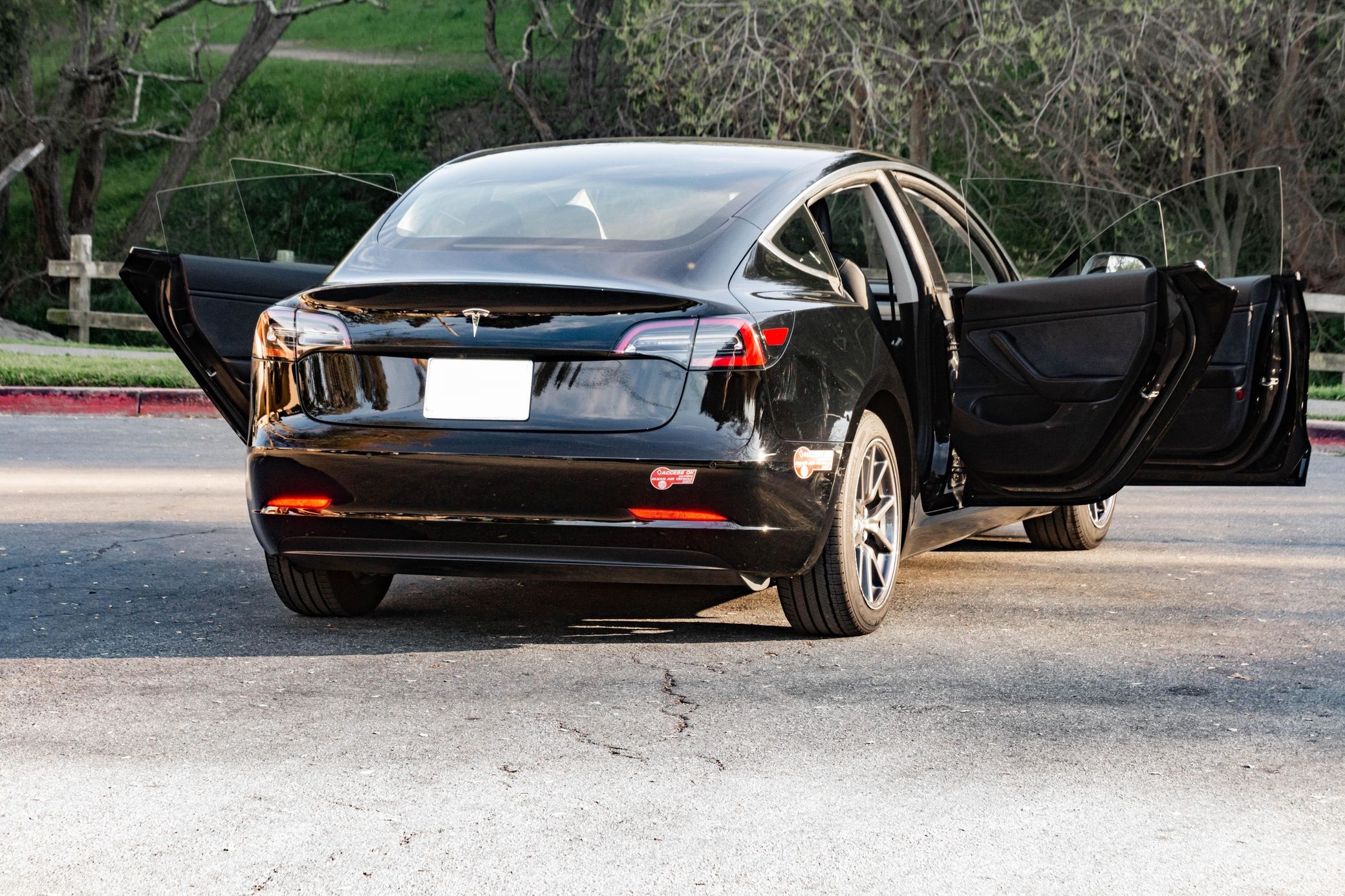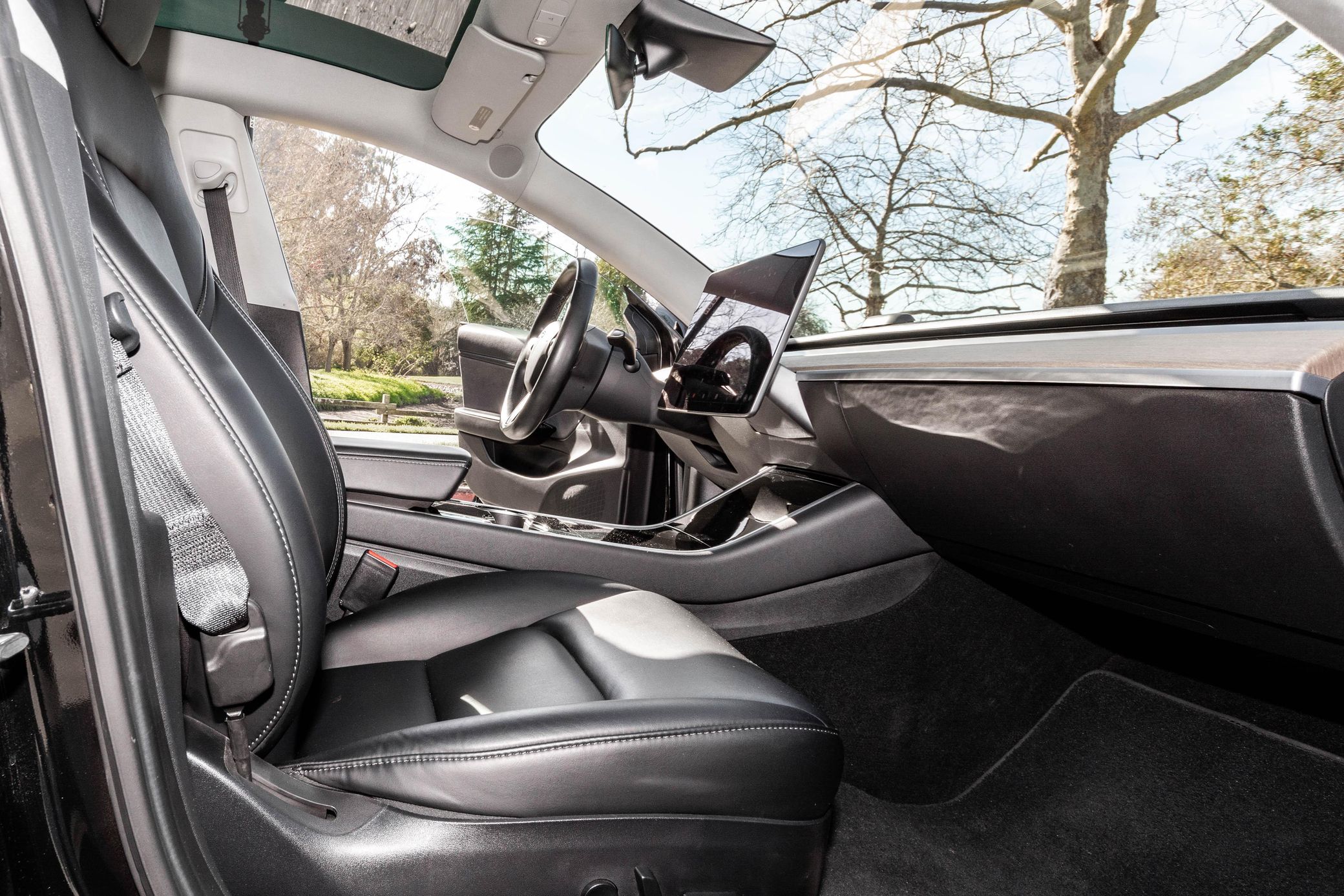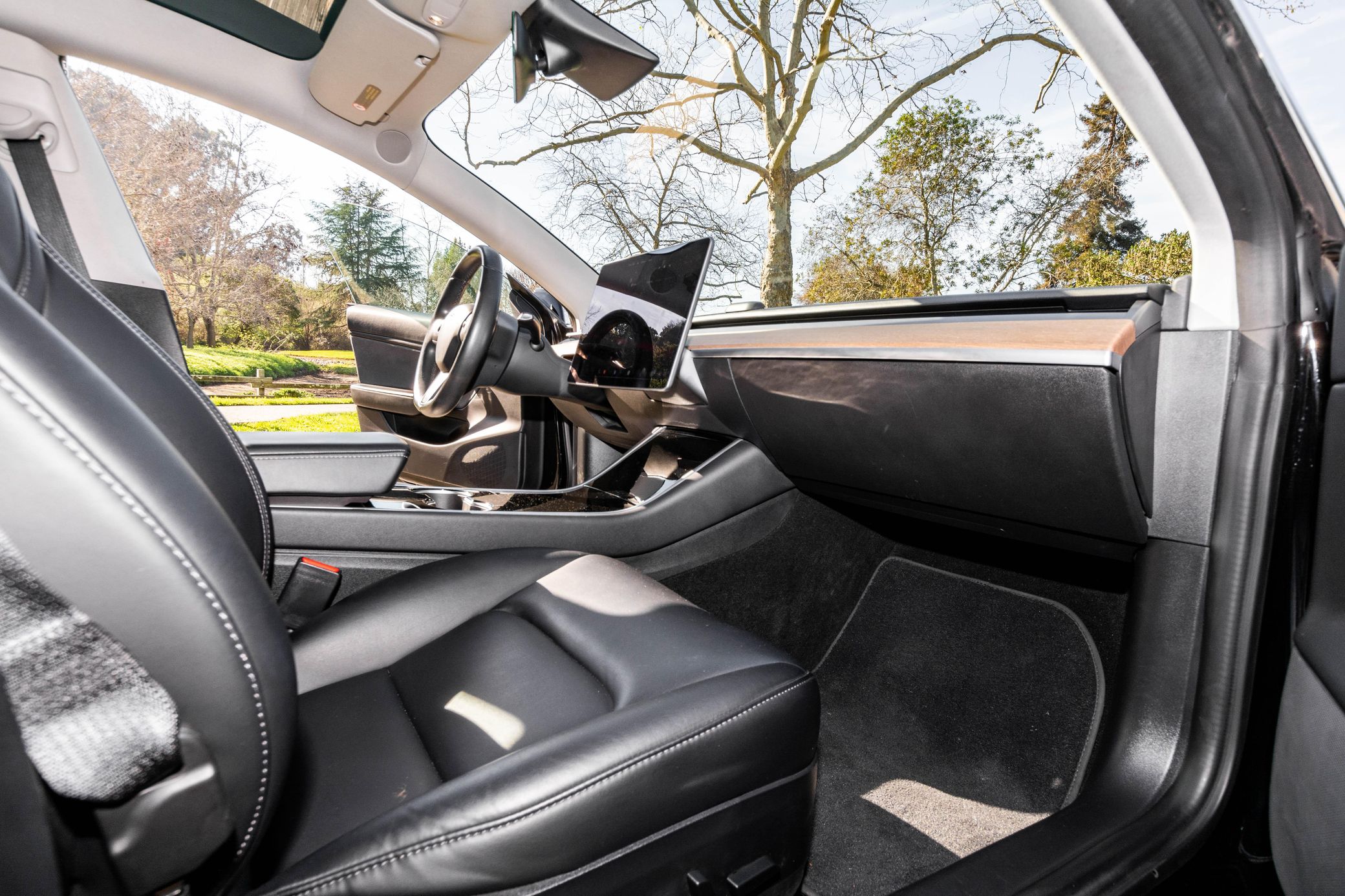 THIS… is a 2018 Tesla Model 3 Long Range, finished in Solid Black with a black interior. The attached Carfax history report lists no accidents in this EV’s past. It also shows that this is a one-owner car that has been California-owned since it was new. It’s equipped with 18-inch wheels, a Premium interior, power-adjustable front seats, a 15-inch touchscreen, and Autopilot technology, among other features. SunTek clear paint protection film on the front end and an Ottosteer magnetic front license plate bracket are the only modifications reported by the seller.