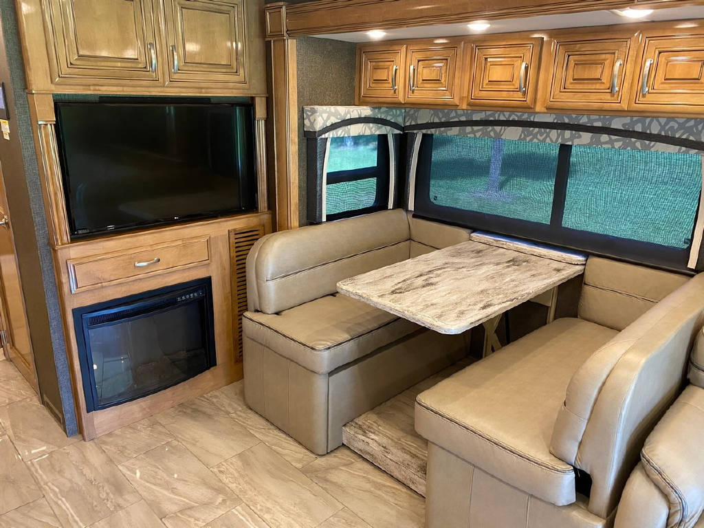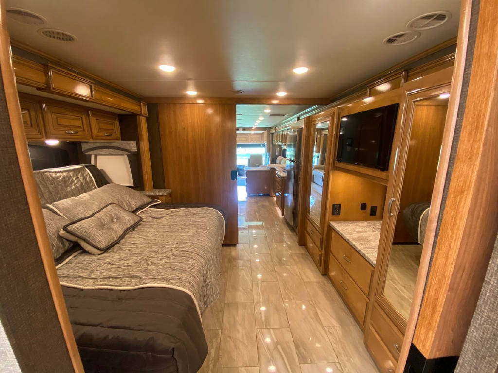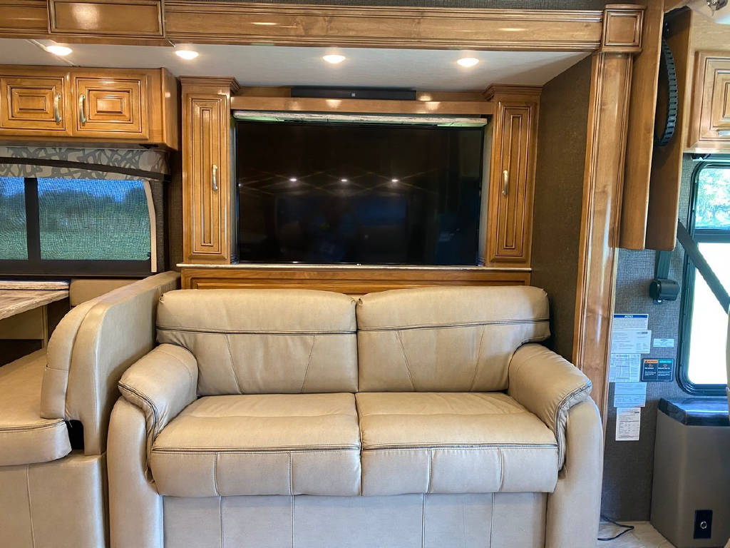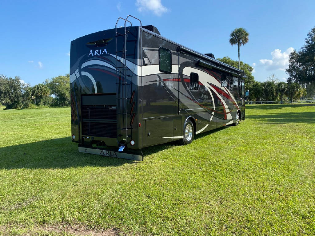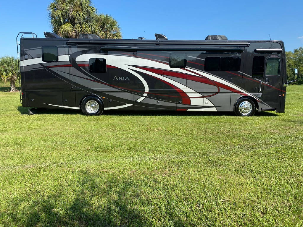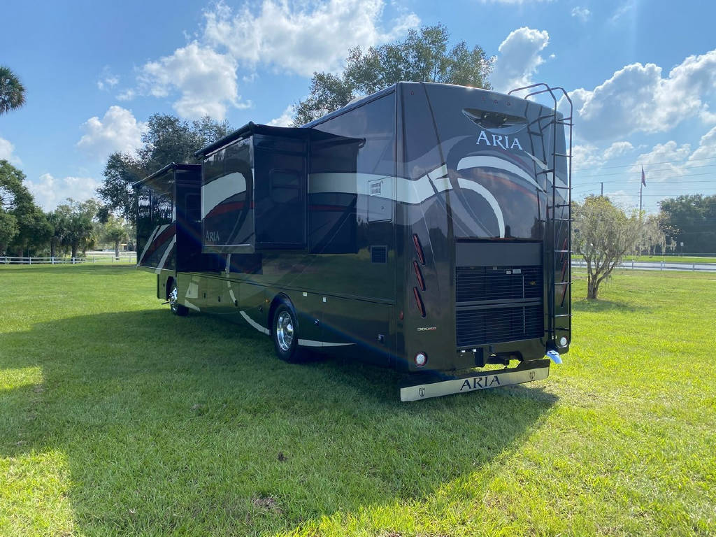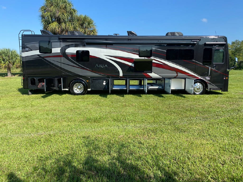 2018 Thor Aria 3901 3 slide motorhome with only 13001 miles. This coach is on a Freightliner chassis powered by a 360HP Cummins Diesel with Allison Transmission. This coach is brand new!! & includes a retractable HDTV, dream dinette table, reclining theater seating, pull out cabinet, fireplace, residential fridge, more HD TVs, Tilt-a-view inclining king bed, drop-down overhead bunk, stacked washer/dryer, outdoor entertainment & more !!!!!