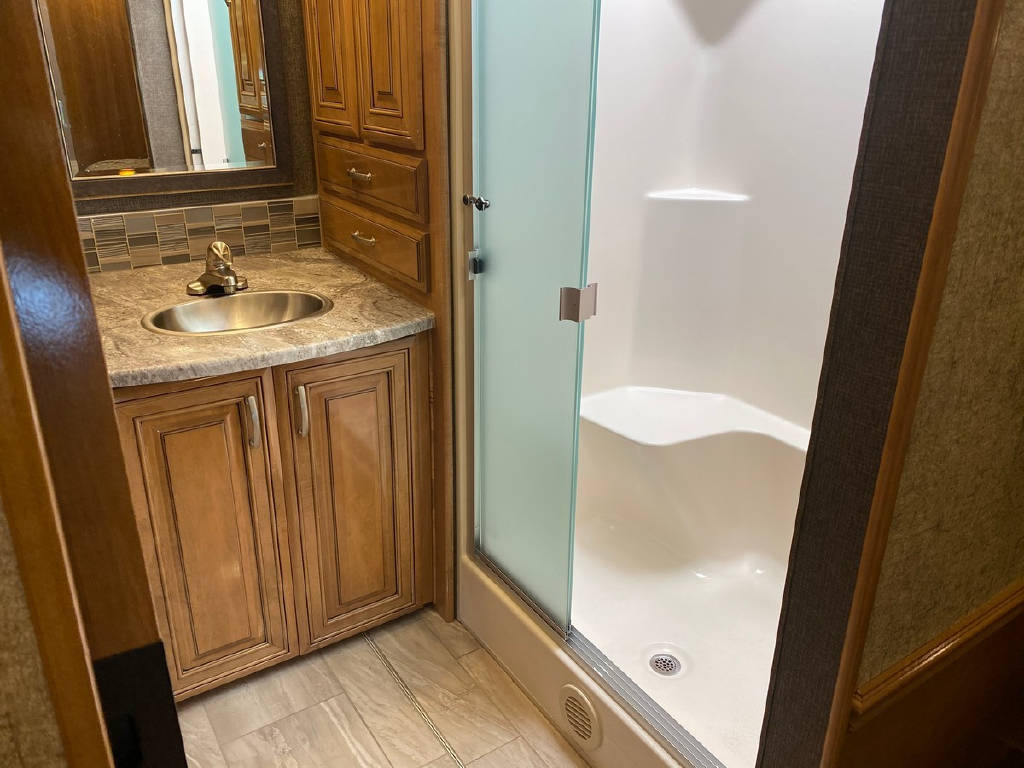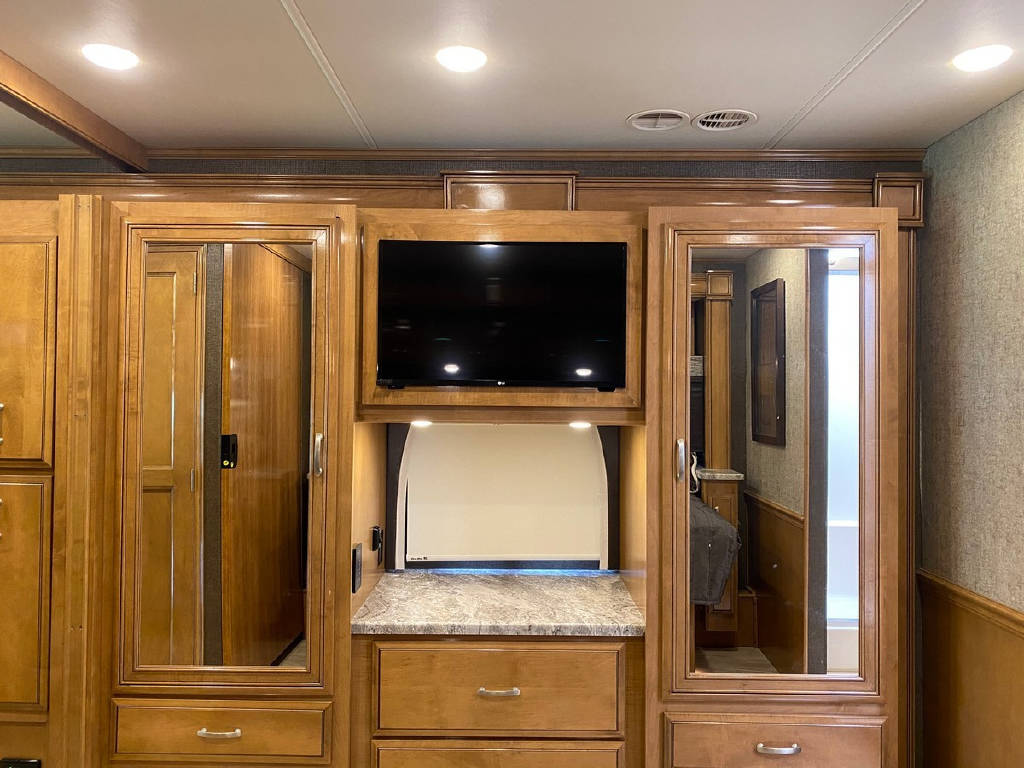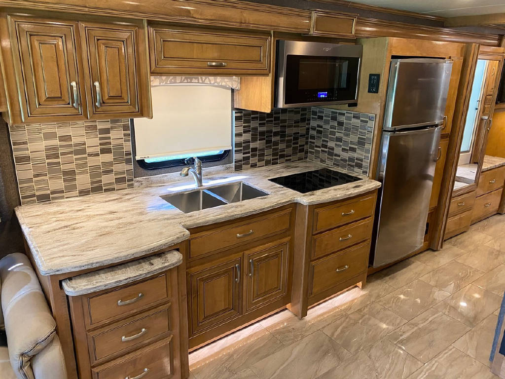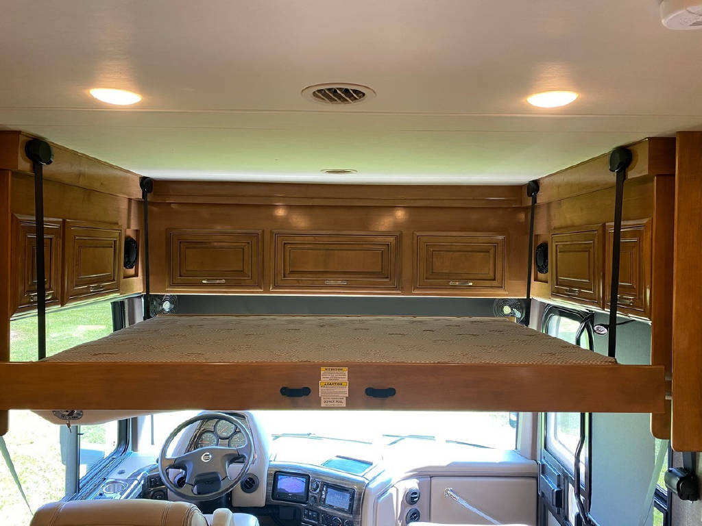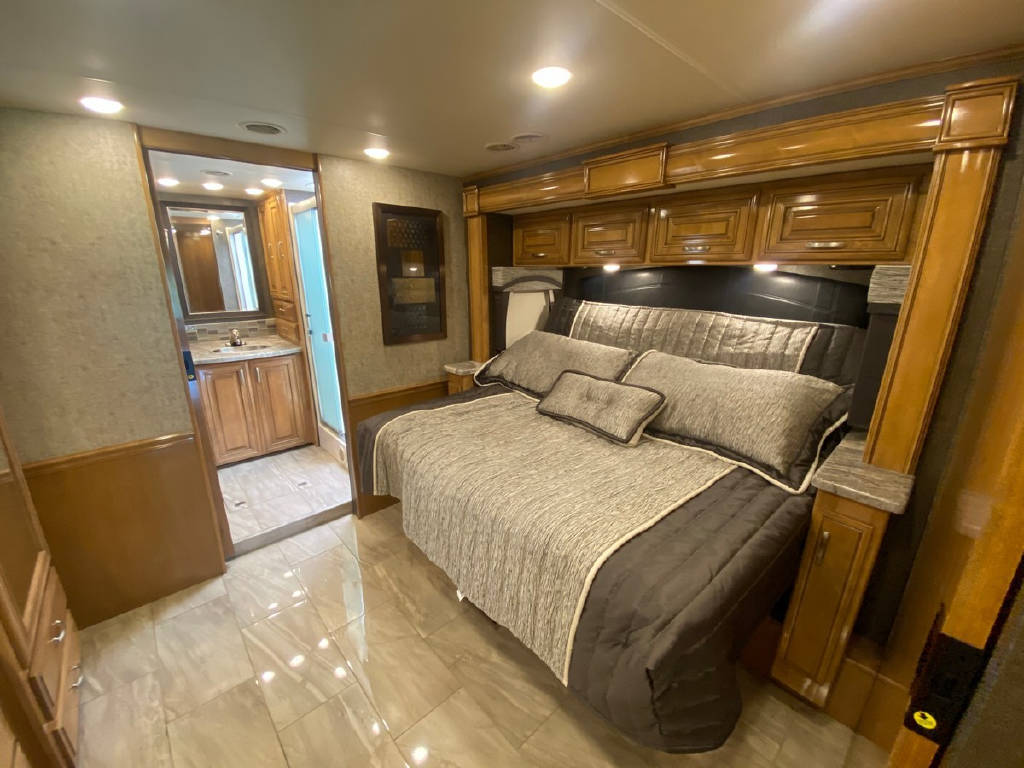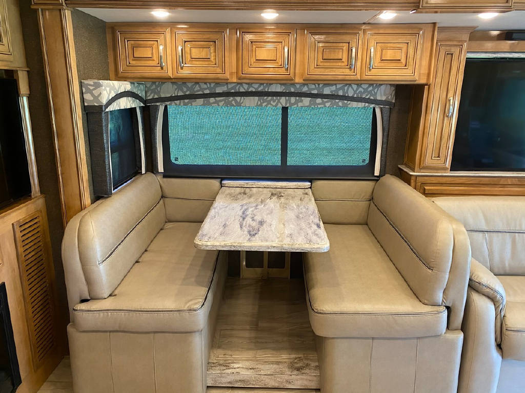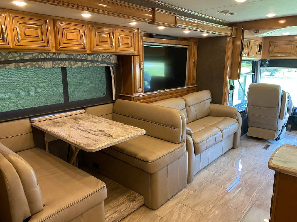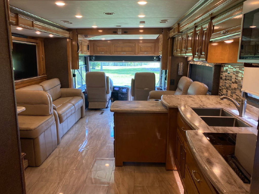 2018 Thor Aria 3901 3 slide motorhome with only 13001 miles. This coach is on a Freightliner chassis powered by a 360HP Cummins Diesel with Allison Transmission. This coach is brand new!! & includes a retractable HDTV, dream dinette table, reclining theater seating, pull out cabinet, fireplace, residential fridge, more HD TVs, Tilt-a-view inclining king bed, drop-down overhead bunk, stacked washer/dryer, outdoor entertainment & more !!!!!