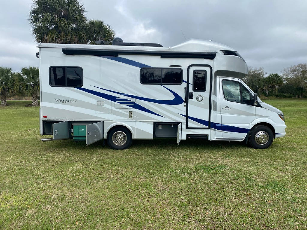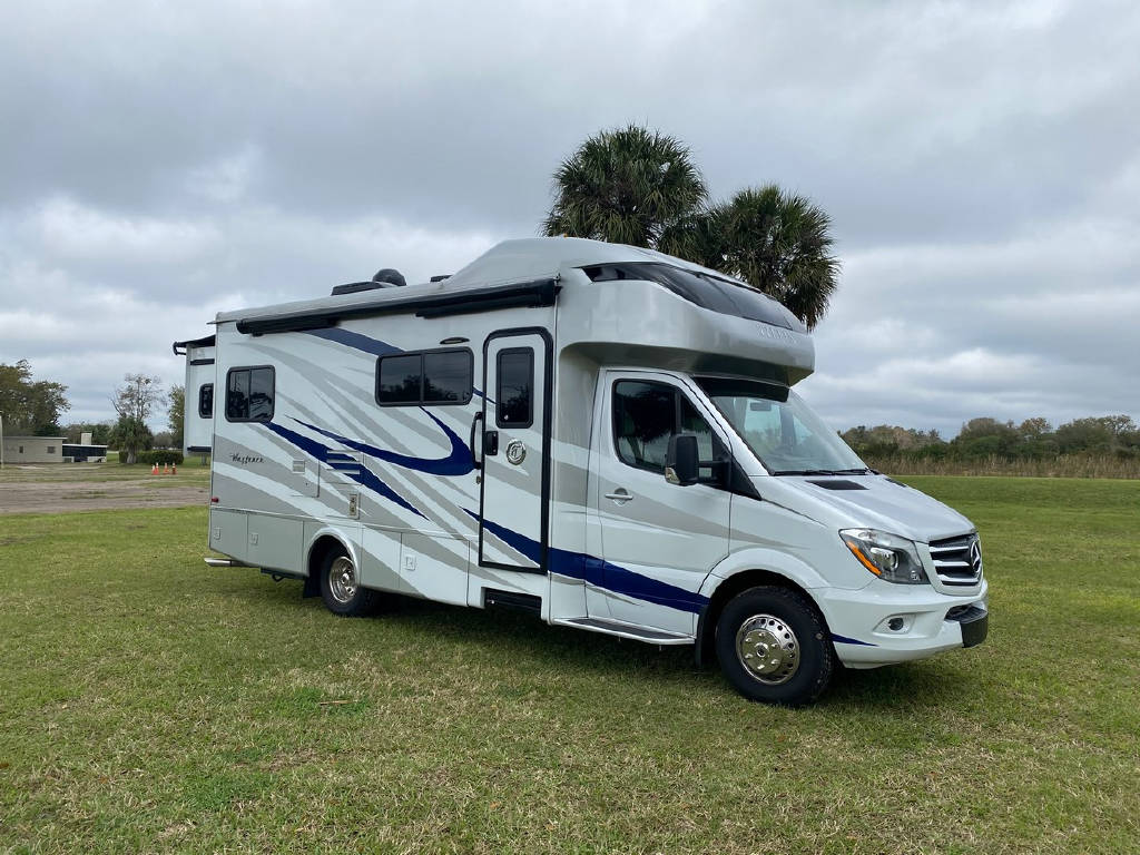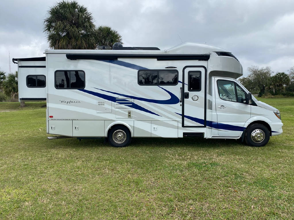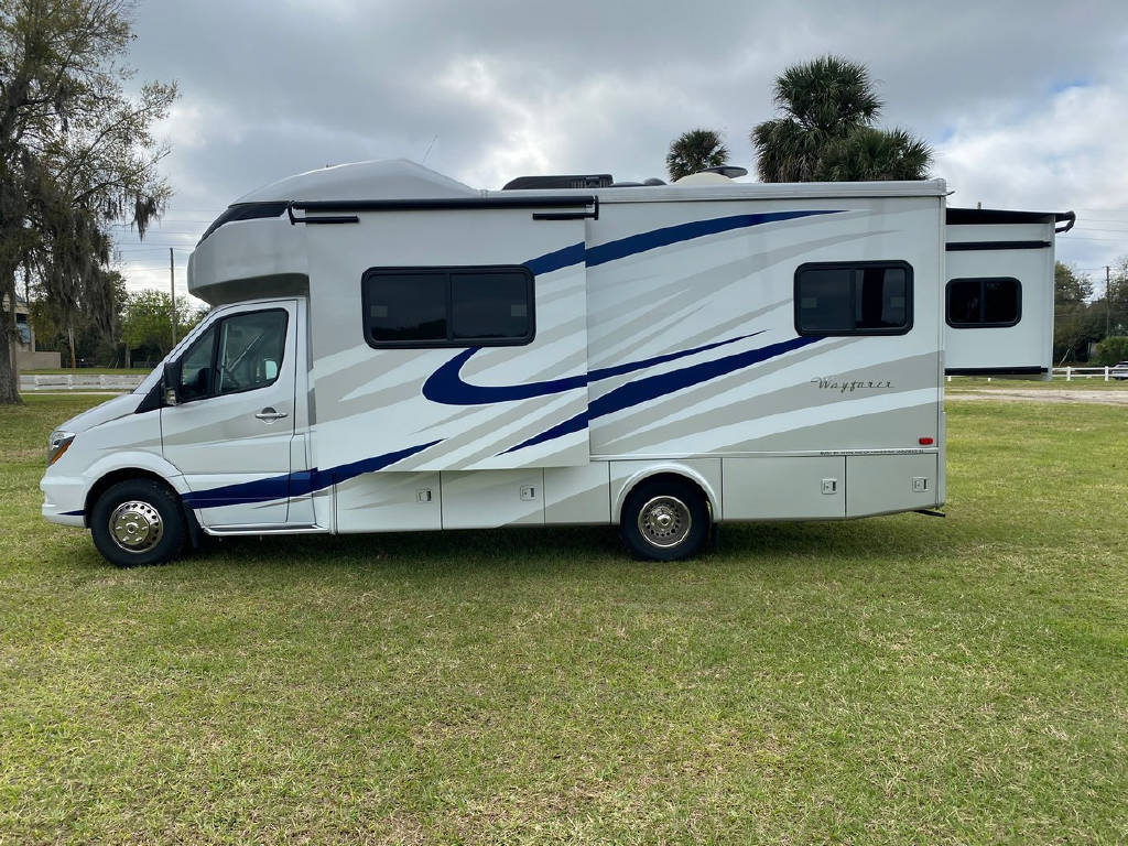 2018 Tiffin Wayfarer 24QW 2 slide motorhome with 4513 miles. This coach is on a Mercedes Benz Sprinter Chassis powered by a 188HP Turbo Diesel Engine. This coach includes Entertainment Center with HD TV, Tri-Fold Sofa Bed, Queen Bed & more !!!