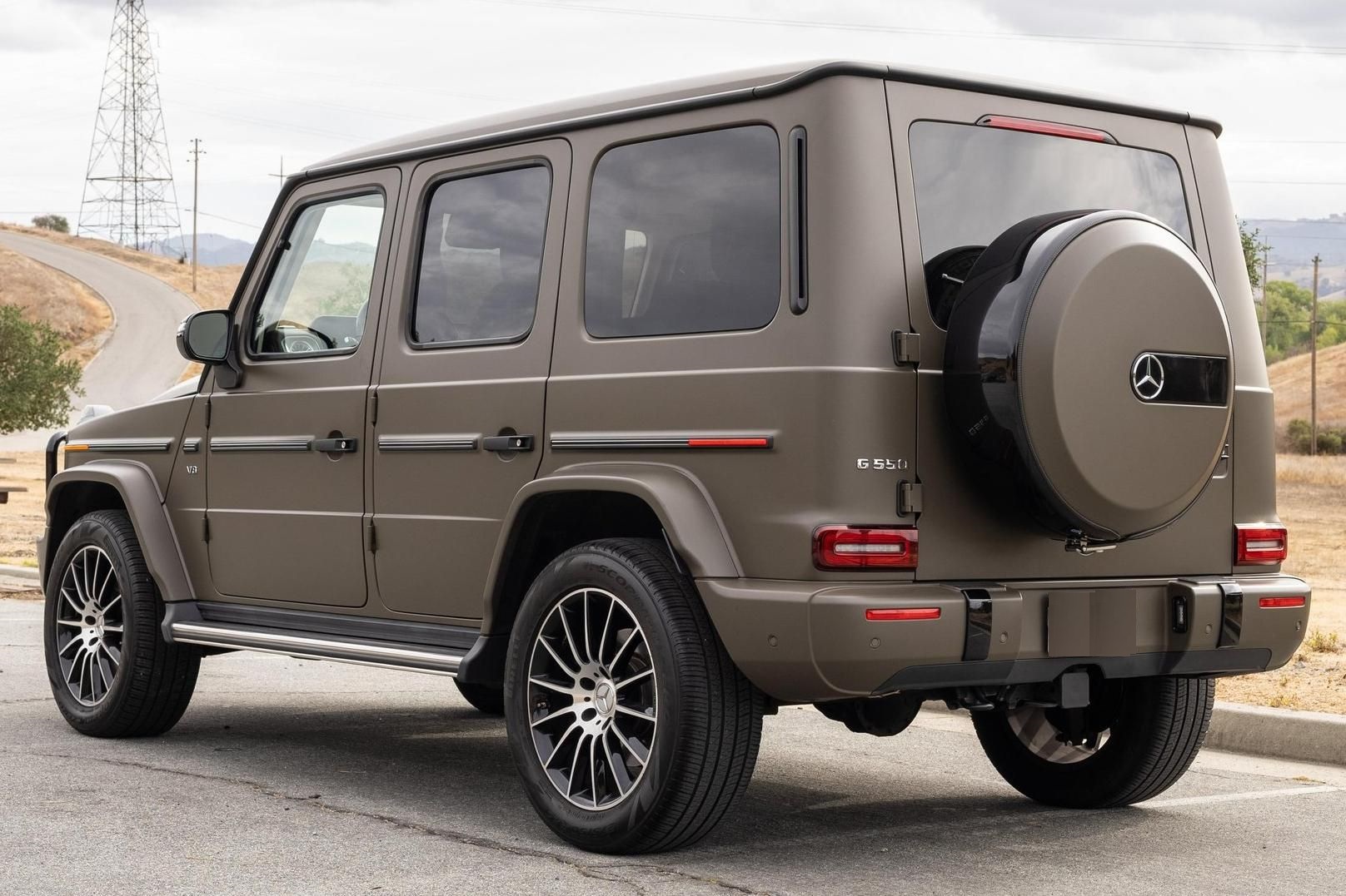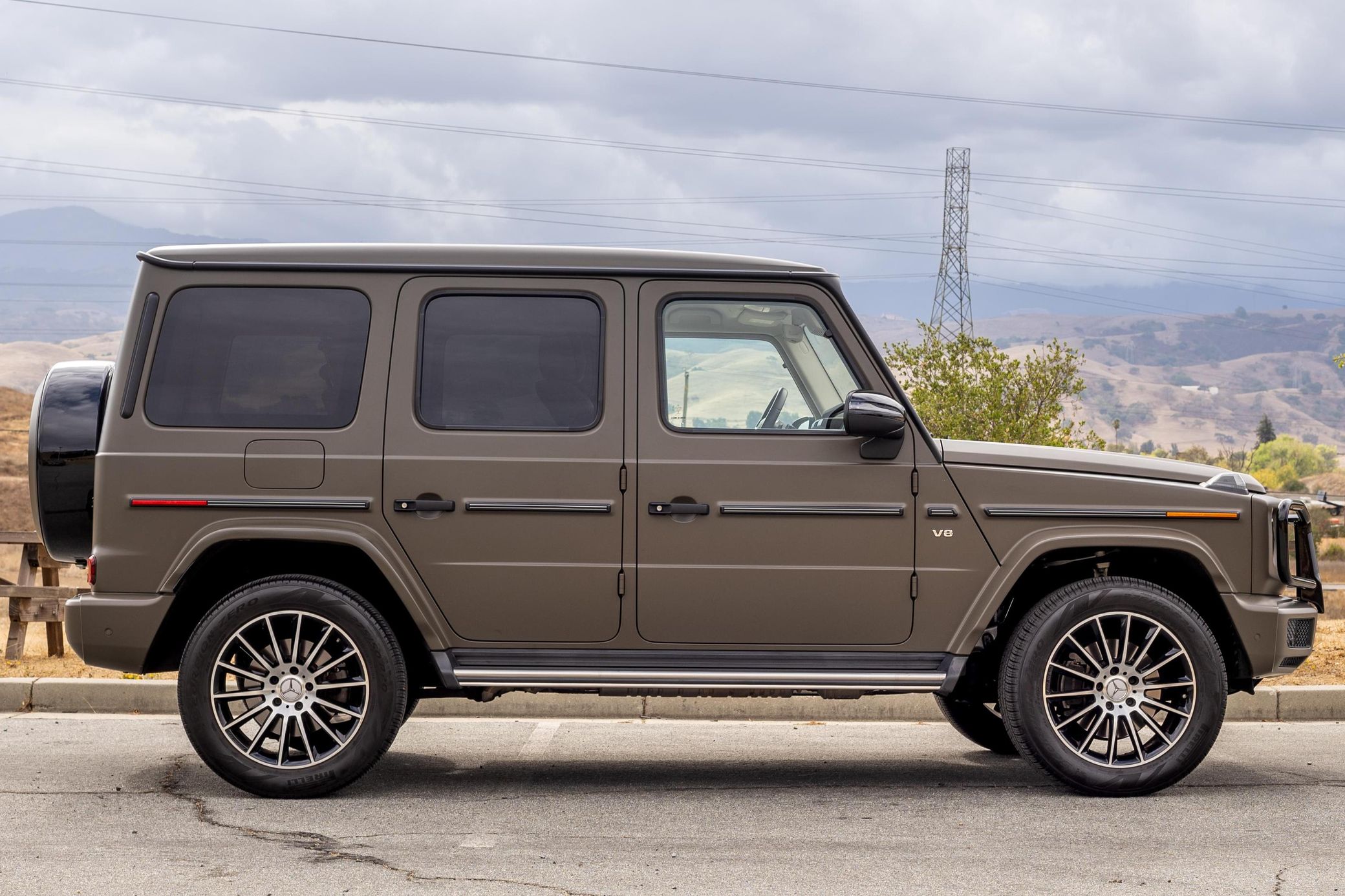 THIS… is a 2019 Mercedes-Benz G550, finished in Designo Olive Magno with a Macchiato Beige interior with Espresso Brown accents. No accidents or mileage discrepancies in this Mercedes-Benz’s past. Factory equipment on this highly-optioned G550 includes the AMG Line, Night, and Exclusive Interior Plus packages, a Burmester surround sound system, and more as detailed below. The seller reports no modifications. Mercedes-Benz gave the emblematic G-Class its first complete overhaul for the 2019 model year. Still built in Graz, Austria, the off-roader wore an evolutionary exterior design but it was entirely new beneath the sheet metal; the exterior door handles were one of the three components carried over from the old to the new G. Mercedes-Benz notably redesigned the frame and the steering system, and it stuffed more tech features into the cabin, but it kept the three locking differentials. Production continues in 2021. Power comes from a 4.0-liter twin-turbocharged V8, rated at 416 horsepower and 450 lb-ft of torque. It spins the four wheels via a 9-speed automatic transmission and a 2-speed transfer case.