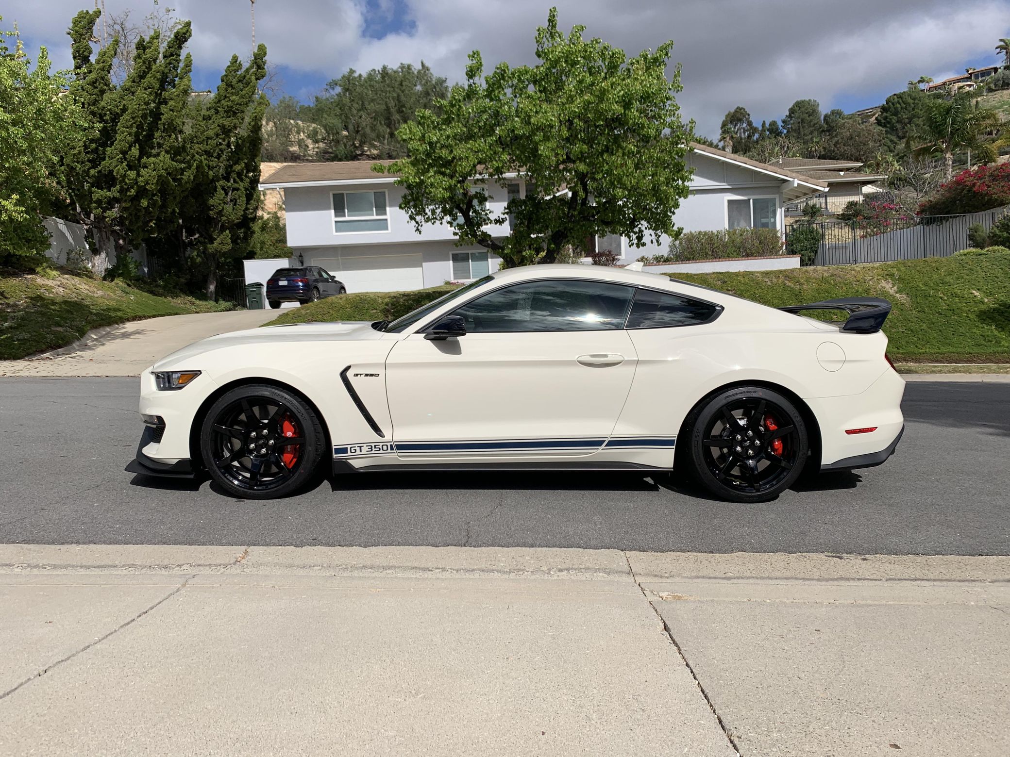 THIS… is a 2020 Ford Mustang Shelby GT350R, finished in Wimbledon White with a black interior. This Shelby features a desirable 6-speed manual transmission and the Heritage Edition Package of which only 280 units were produced. The attached Carfax history report indicates no accidents or mileage discrepancies. It also shows that this GT350R has been exclusively registered in California under a single owner. According to the window sticker provided in the photo gallery, a partial list of features includes the equipment group 920A, the GT350 Heritage Package, Technology Package, Magneride damping system, a 3.73 rear differential, independent rear suspension, launch control and “Line Lock,” and more as detailed below. Modifications reported by the seller include Ford Performance oil separators, paint protection film, Steeda rock guards, Steeda jack rails, and SLiPLo front spoiler protection. The Shelby GT350R variant of the “S550” Ford Mustang is a track-focused performance car benchmarked against competitors like the Chevrolet Camaro Z/28 and the Porsche 911 GT3. Compared to the standard GT350, it has improved grip, less weight, a more aggressive aerodynamic body kit, and it’s the first mass-produced road car to come stock with carbon fiber wheels, resulting in a highly competent muscle car for the track. Power for the Shelby GT350R comes from a flat-plane-crank “Voodoo” 5.2-liter V8 engine, rated at 526 horsepower and 429 lb-ft of torque. Output is sent to the rear wheels via a 6-speed manual transmission.