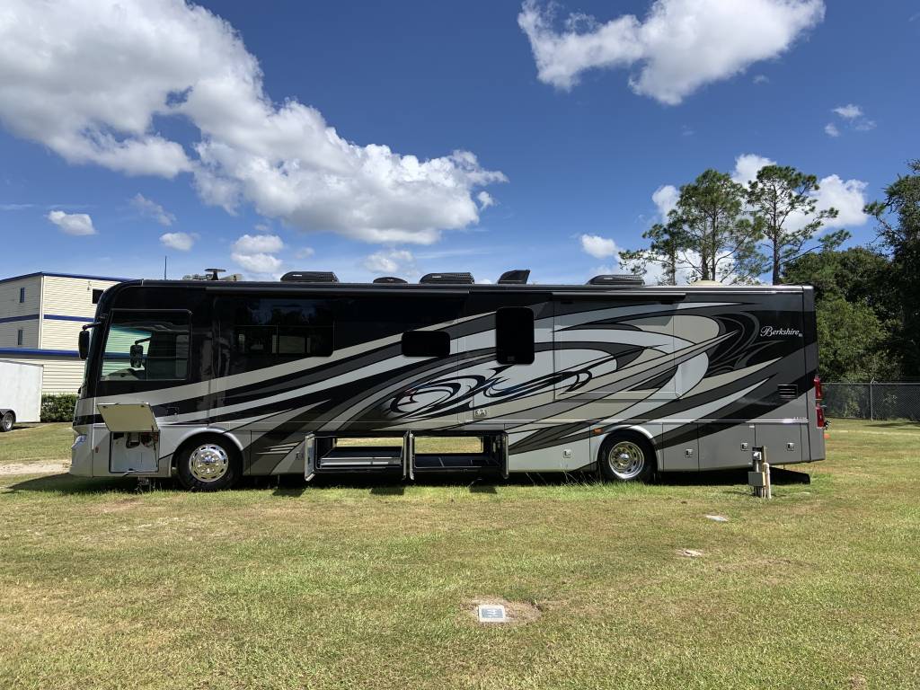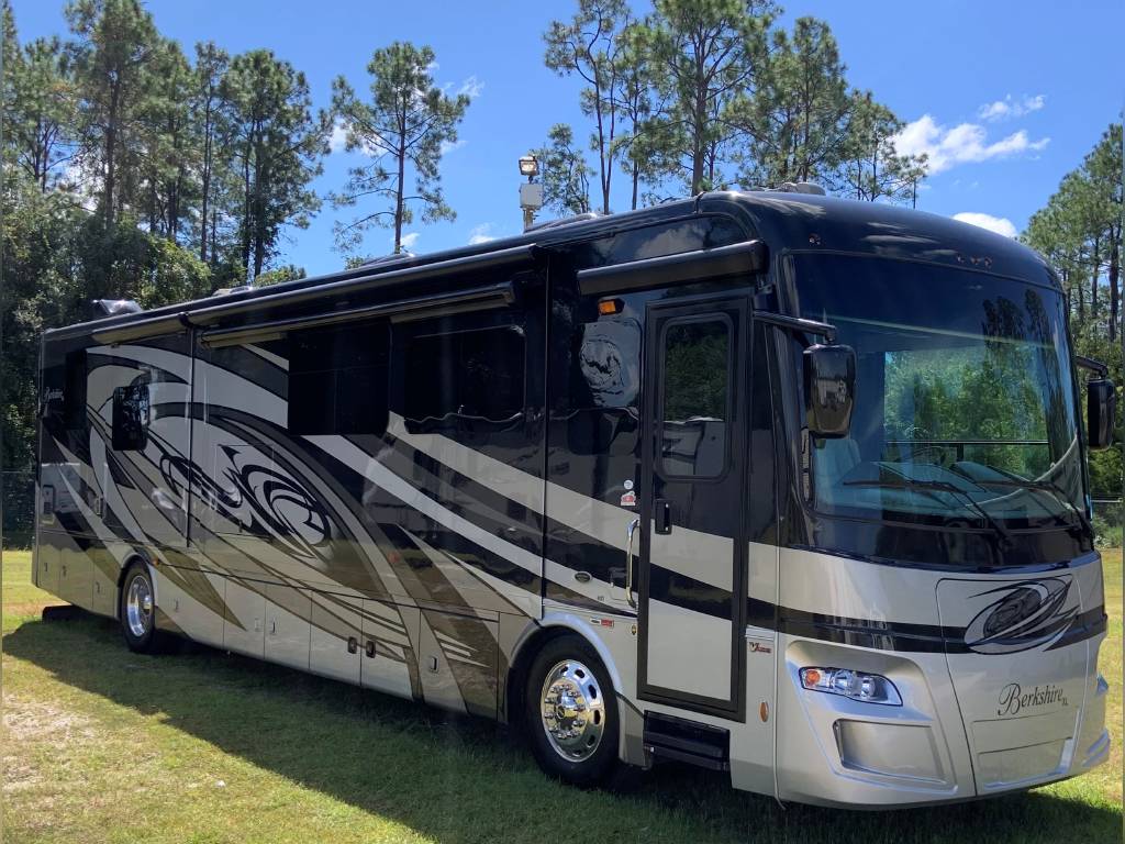 Under Warranty 13,314 Miles. Traveling in a Berkshire XL is truly a living experience without equal. 3 year Extended Warranty is included.The Sophisticated décor, sumptuous hardwoods and unsurpassed attention to detail are all Berkshire XL Class A Motorhome hallmarks. The Standard Size Stainless Steel Refrigerator, Stainless Steel Drawer Dishwasher, and Washer and Dryer bring all the conveniences of home on the road with you. The Tankless Hot Water Heater provides you with Unlimited Hot water.The Rear Engine Cummins 380 HP Diesel matched with the 6 Speed Allison Automatic Transmission makes this motor home easy to drive, convenient to park, and relatively easy on fuel.