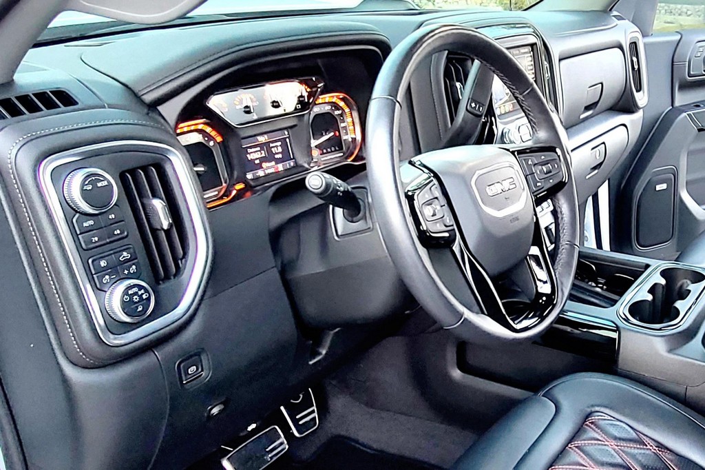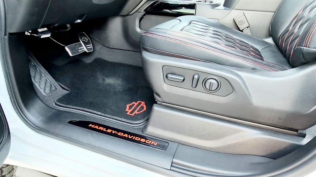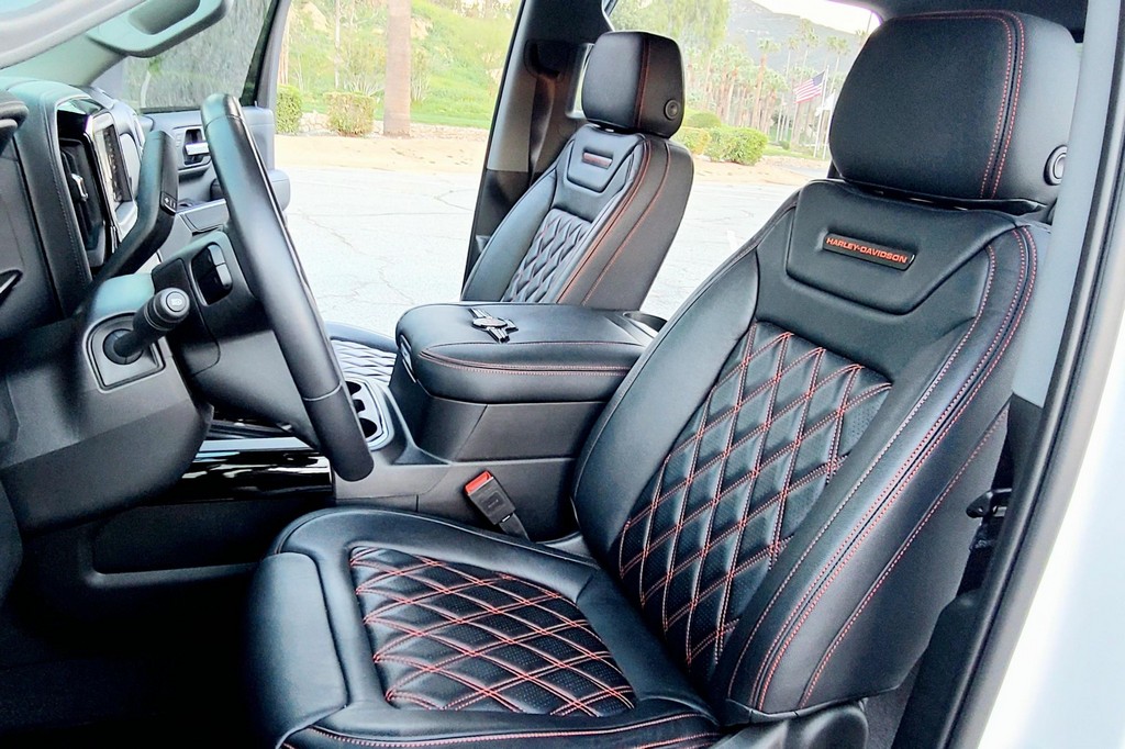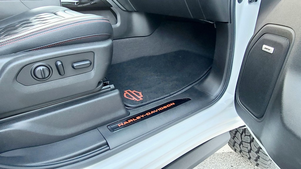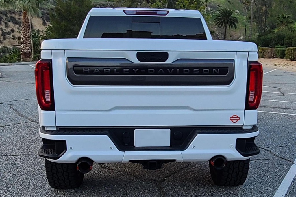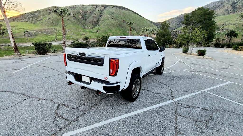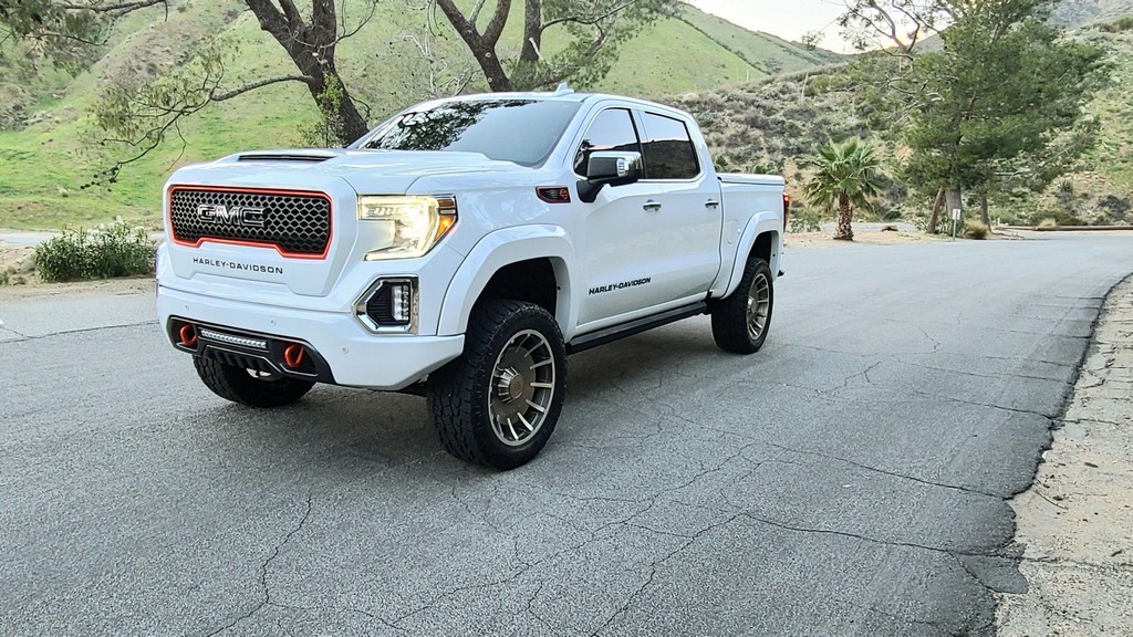 THIS… is a 2020 GMC Sierra 1500 Harley-Davidson Edition 4×4, finished in Summit White with a Jet Black interior. The attached Carfax history report lists no accidents in this GMC’s past. It also shows that this is a one-owner car that has been California-owned since it was new. Special vehicles manufacturer Tuscany fitted this Sierra with the Harley-Davidson Package, which adds 22-inch wheels, 35-inch all-terrain tires, a BDS Suspension lift kit with FOX Performance shocks, edition-specific exterior trim and emblems, power-operated running boards, plus orange interior trim and diamond stitching, among other modifications. 250 units were sold for 2020, and this truck is number 172 according to a plaque on the center armrest. Its certificate of authenticity is shown in the gallery. Factory equipment includes the SLT Premium Plus and X31 Off-Road packages, an automatic locking rear differential, a MultiPro tailgate, a trailer hitch, and leather upholstery. GMC launched the current-generation Sierra for 2019. The truck was again related to the Chevrolet Silverado under the sheet metal but designers went to great lengths to differentiate the two models; they notably gave the front end a new look. GMC also offered some features that were not available to Chevrolet buyers at launch, like the clever MultiPro tailgate. Sierra production continues in 2022. Power comes from a 6.2-liter “EcoTec3” V8, rated at 420 horsepower and 460 lb-ft of torque. It spins the rear or all four wheels via a 10-speed automatic transmission.