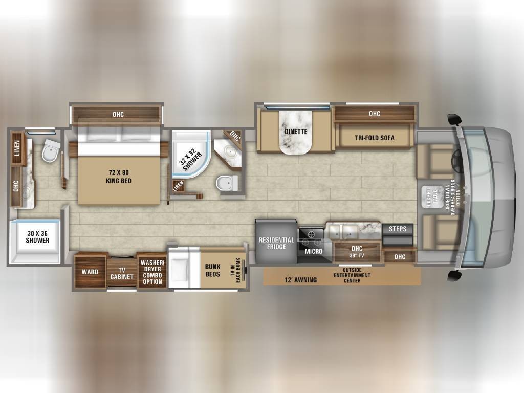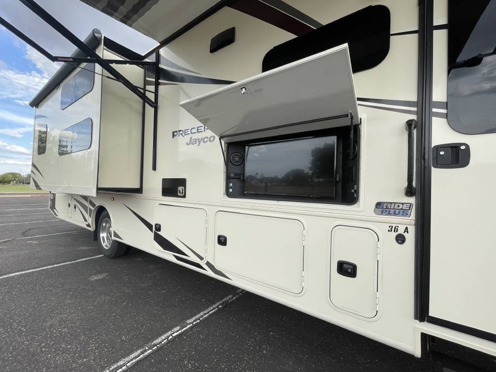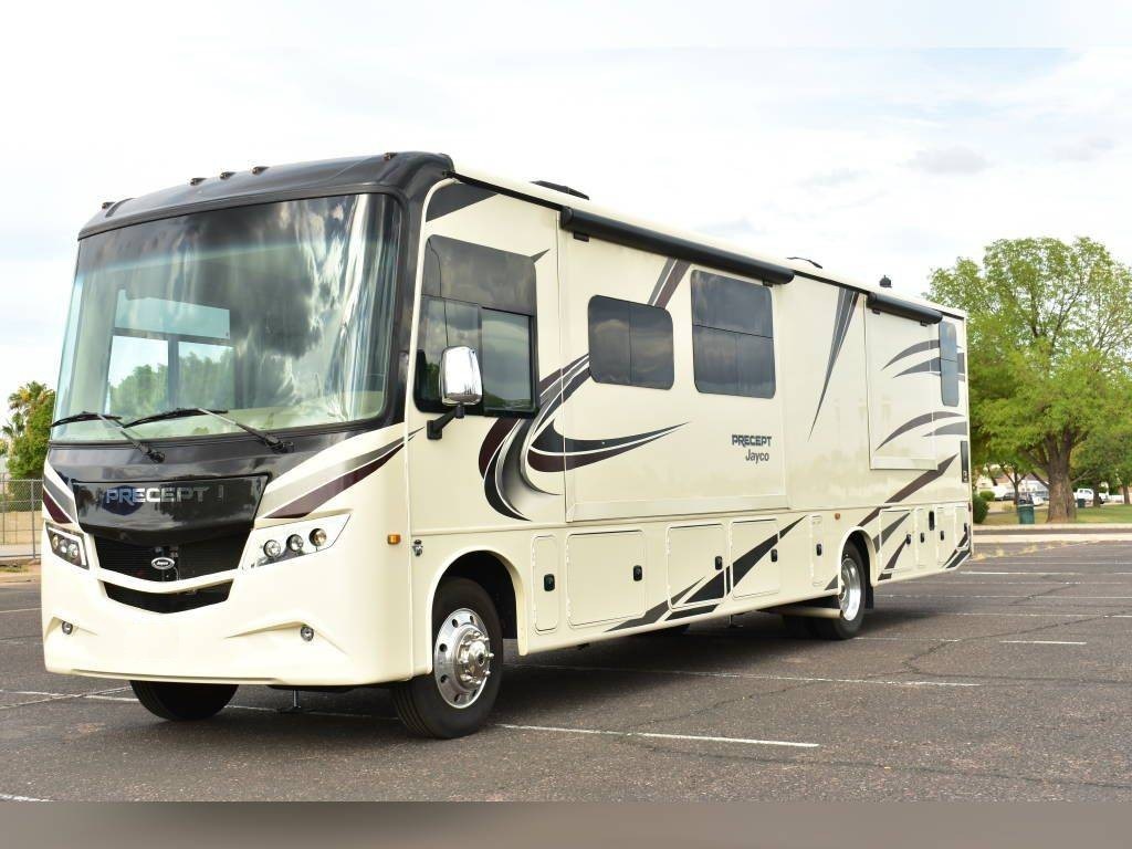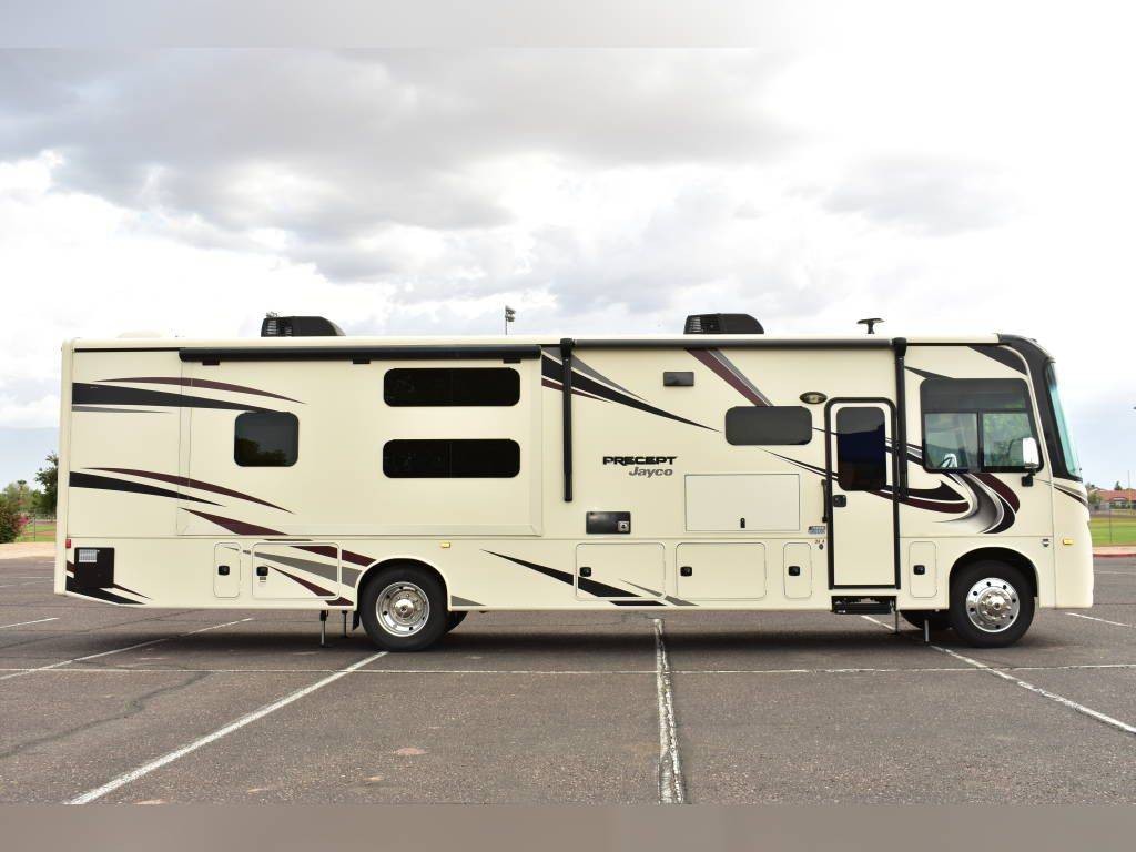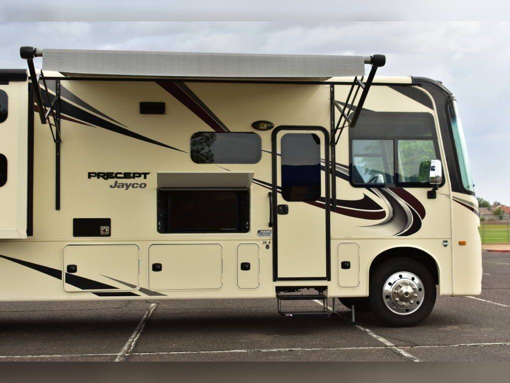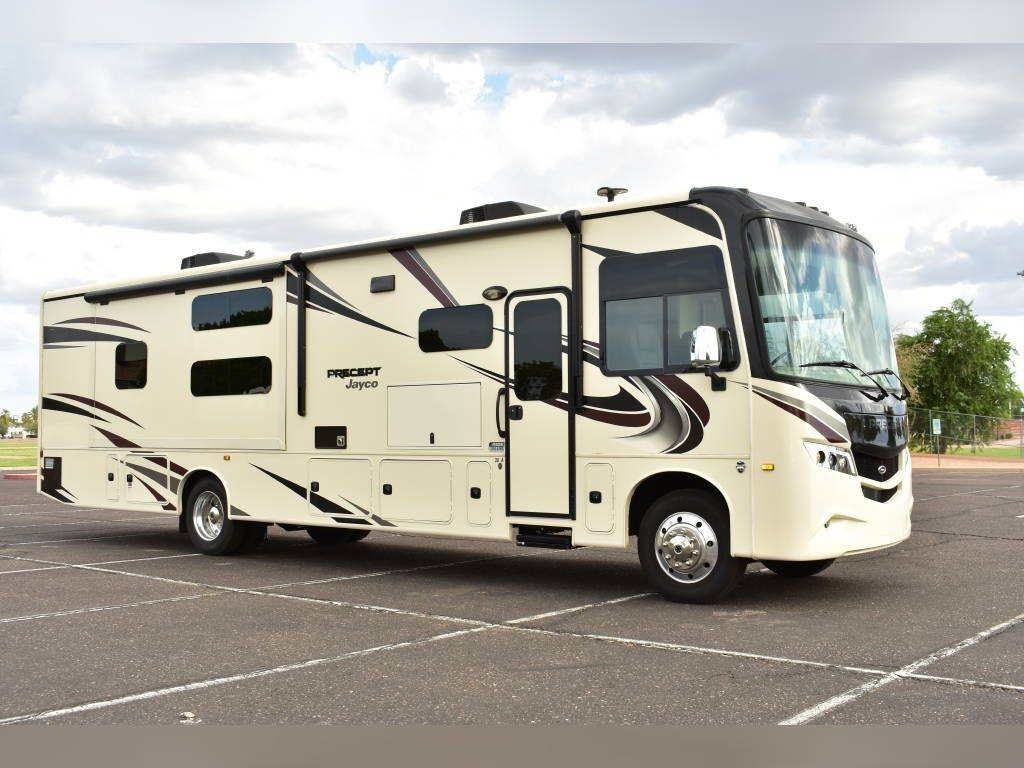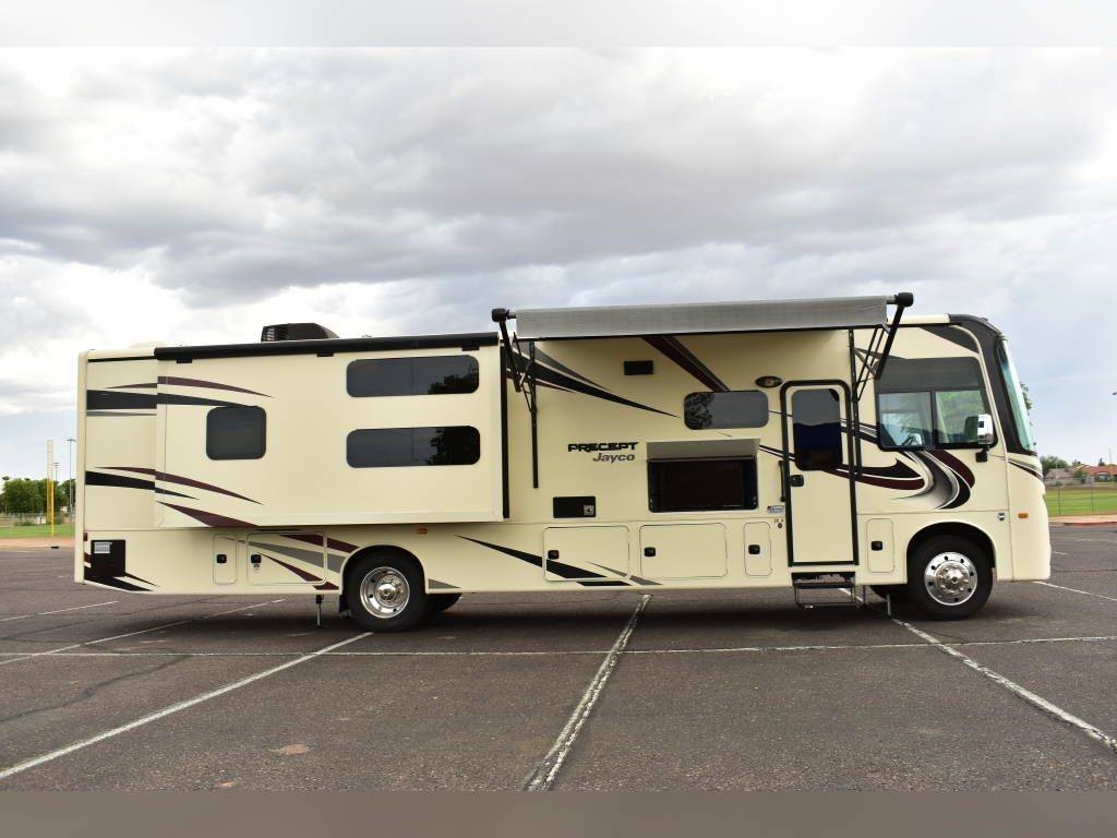 2020 Jayco Precept 36A, 2020 Jayco Precept 36A 38′ Class A Motorhome. Ford V10 6.8L Gasoline Engine, 3 Slide Outs, 22′ Electric Awning with Lights, Sleeps 10, Triple A/C Units, Automatic Leveling Jacks with Bluetooth Enabled, Bunk Model, 2 Full Bathrooms.