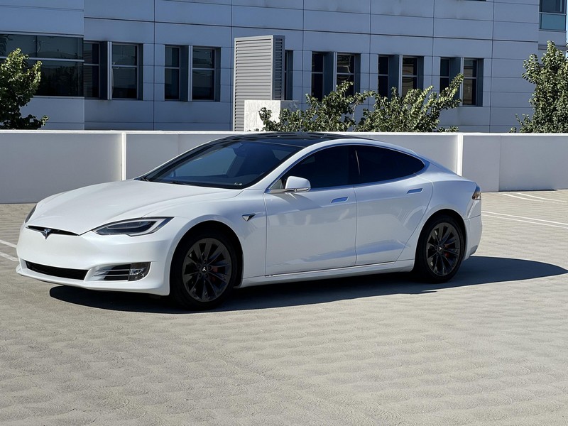 THIS… is a 2020 Tesla Model S Long Range Plus, finished in Pearl White with a black interior. It also confirms that it’s been registered in California from new. Factory equipment includes 19-inch wheels, a glass roof panel, power-adjustable heated front seats, heated rear seats, a 17-inch touchscreen display, a navigation system, and Full Self-Driving capability (subscription required). Modifications reported by the selling dealer are limited to tinted windows.