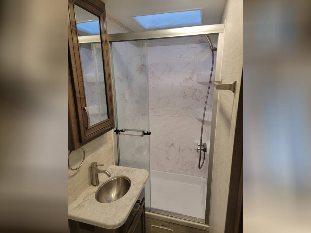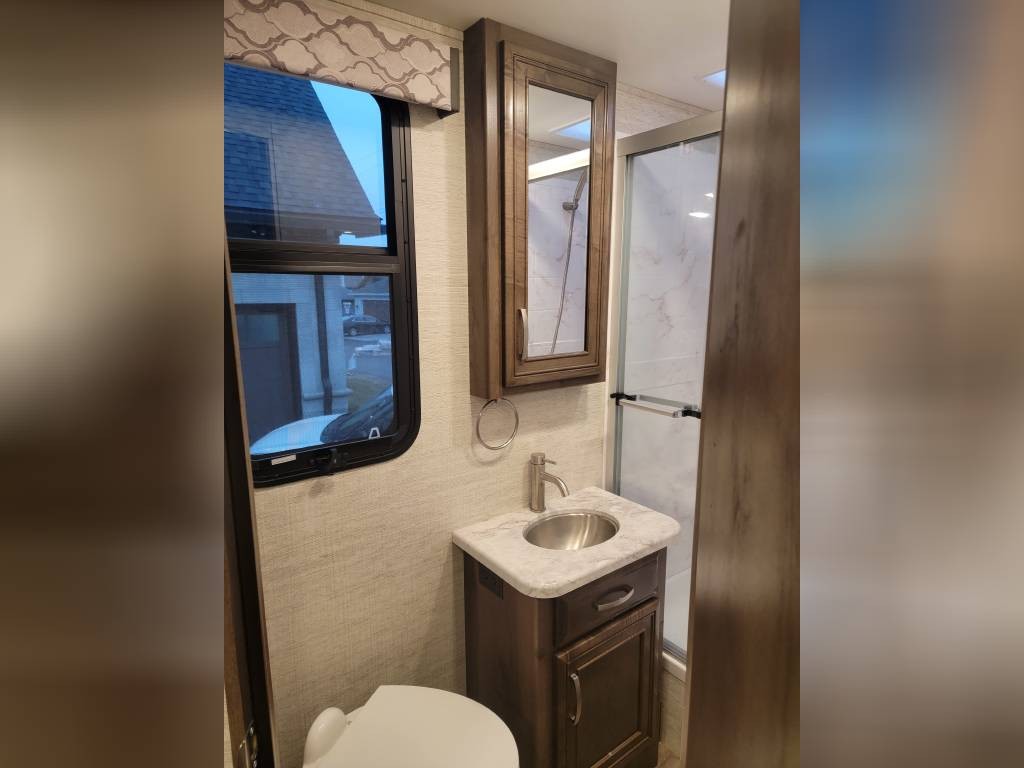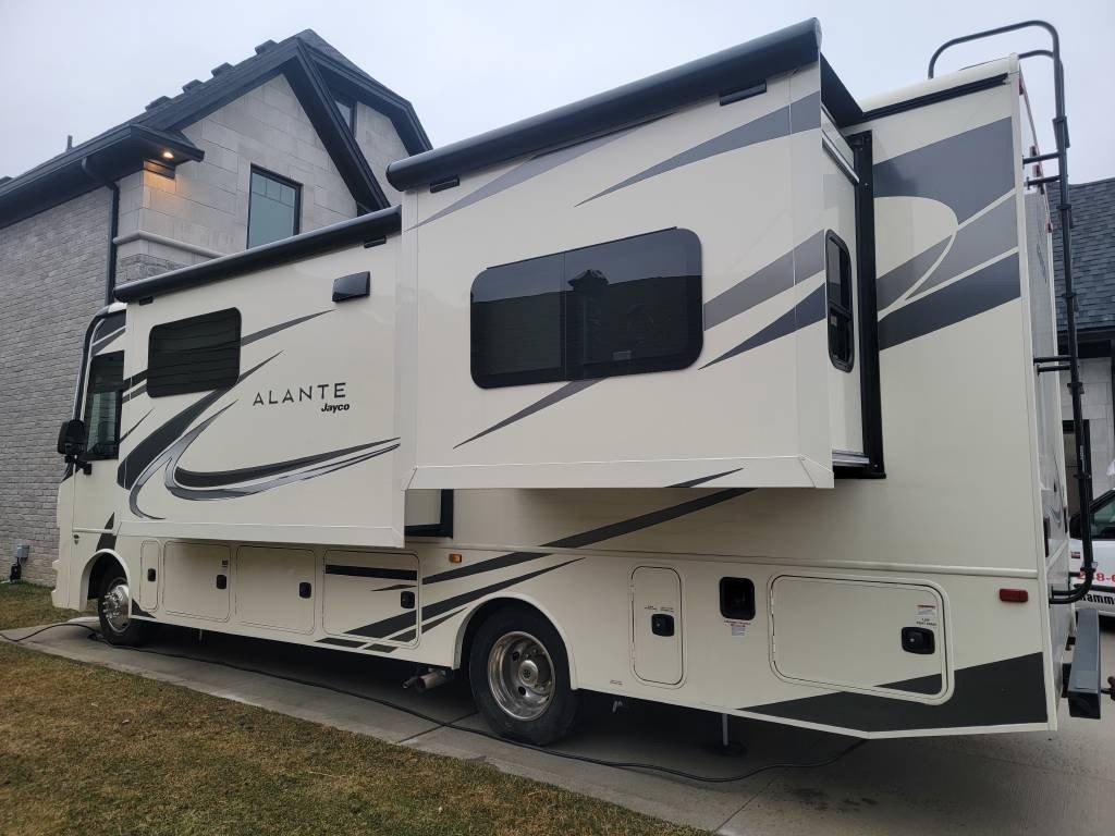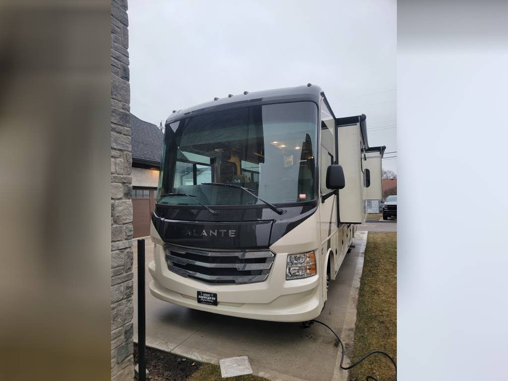 2021 Jayco Alante 27A.Only 11 hrs on generator Excellent condition, no issues. Added above and beyond factory standard: – Safe-T-Plus steering stabilizer – Electronic brake controller – Safe – Maxx-Air Bath Van Cover All warranty/maintenance done by General RV in Clarkston. All oil changes done at Suburban Ford of Waterford (has just had 2nd oil change). Highlights: – King bed in bedroom – Drop down overhead bunk – Sofa unfolds into bed – Dinette drops down into bed – TV at dinette is motorized to raise/lower – Oven & 3 burner cooktop – Full size microwave – Outdoor TV – Tons of storage inside & out – Sleeps 8 – Seatbelts for 8 – Has new 7.3L V8 Godzilla motor by Ford